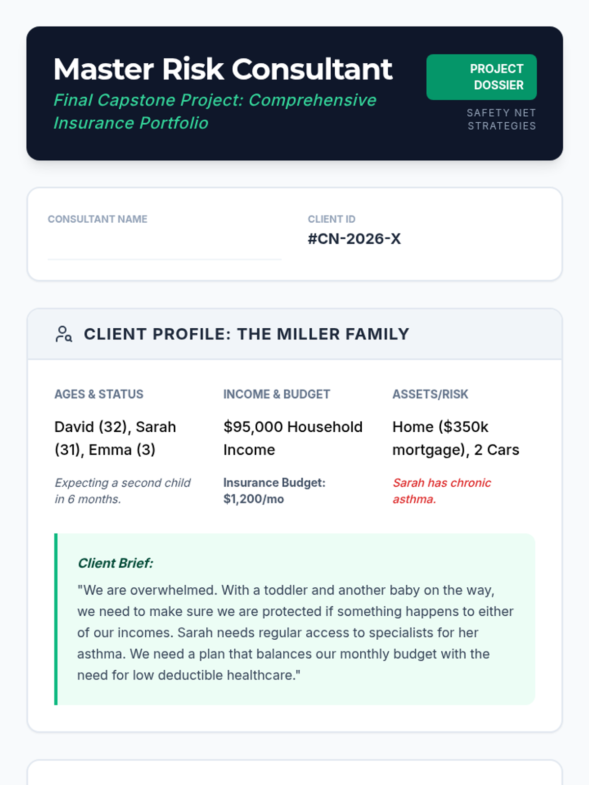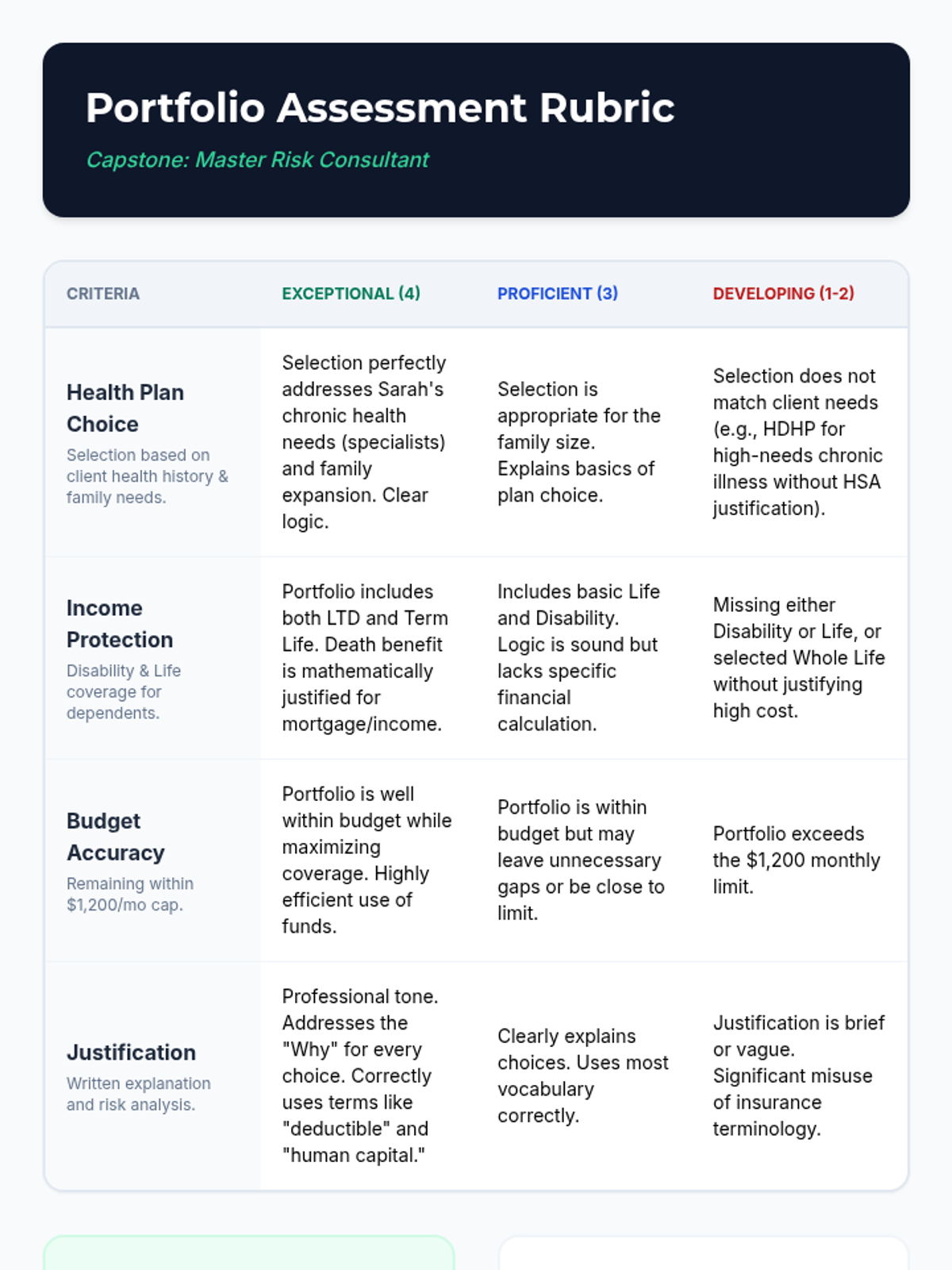 This sequence guides 11th-grade students through the complexities of health, life, and disability insurance. Students progress from mastering technical terminology and calculating medical costs to analyzing life-stage risks and building a comprehensive insurance portfolio for real-world scenarios.