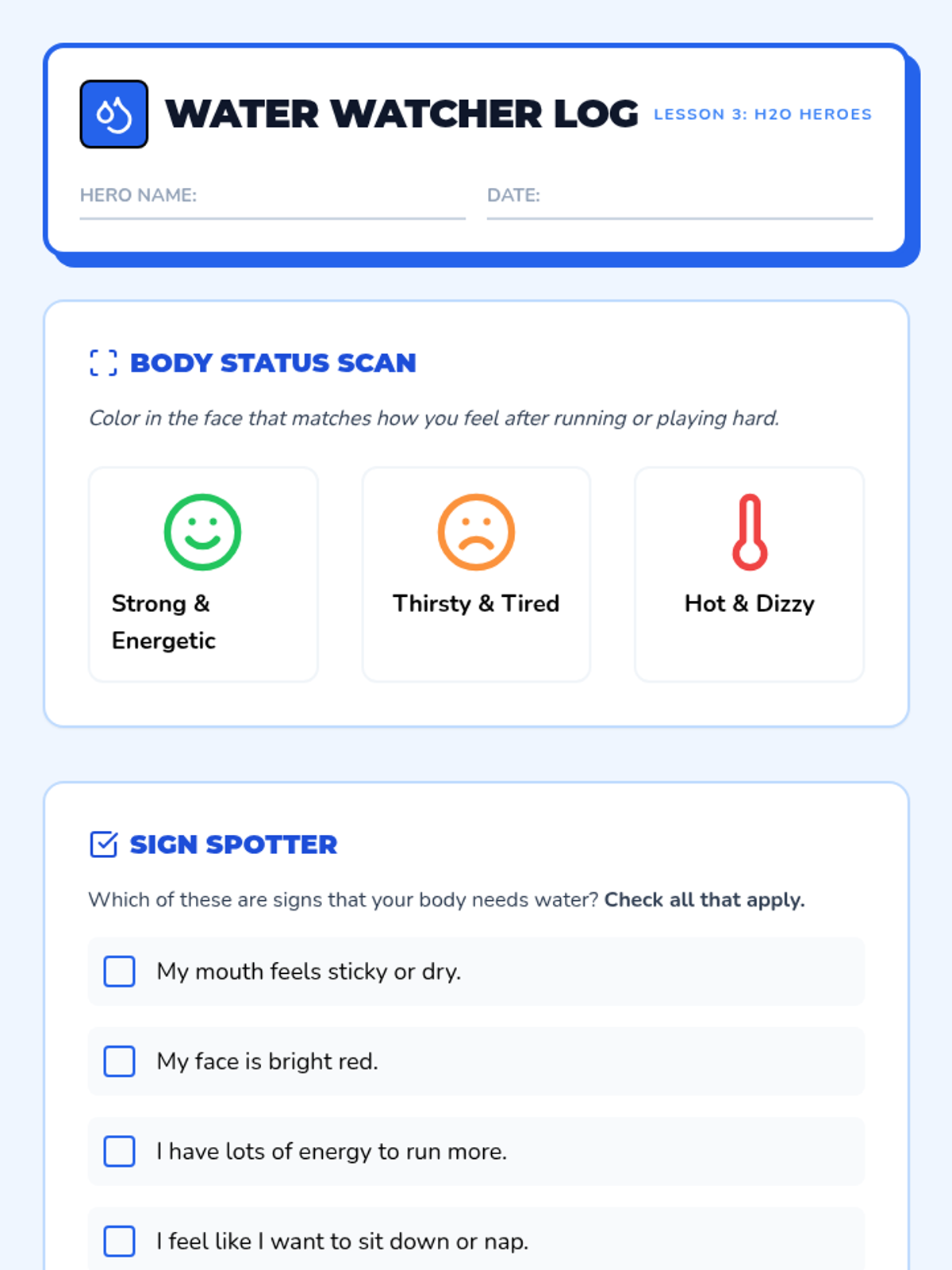 A 2nd-grade sequence focused on active injury prevention through simulations, games, and skill-building. Students learn to interpret safety signals, handle equipment correctly, recognize hydration needs, and navigate playground traffic safely.