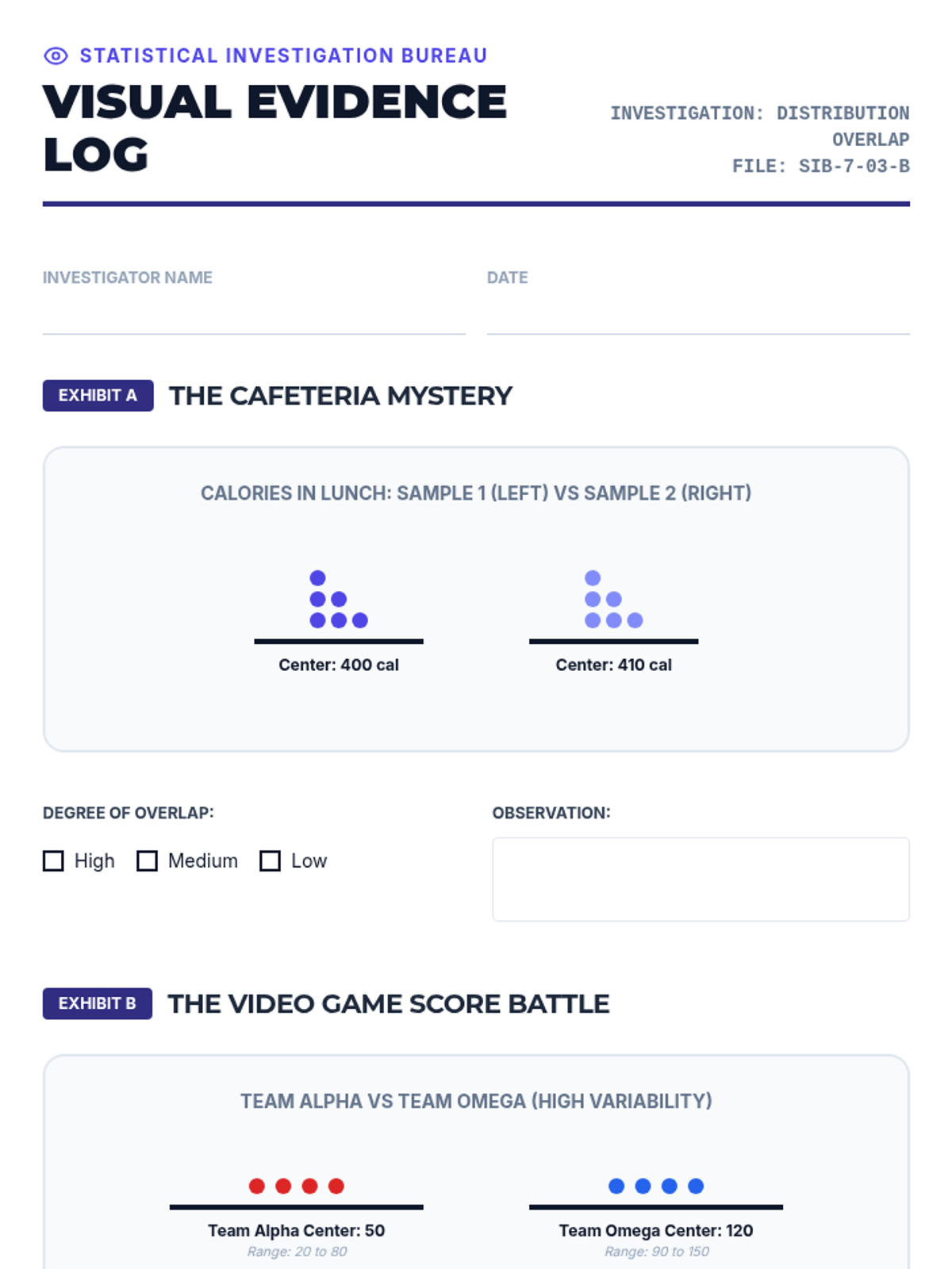 A targeted intervention sequence focused on helping students use measures of center and variability to compare two different populations from sample data. Students engage in scaffolded calculations and collaborative projects to build statistical reasoning.