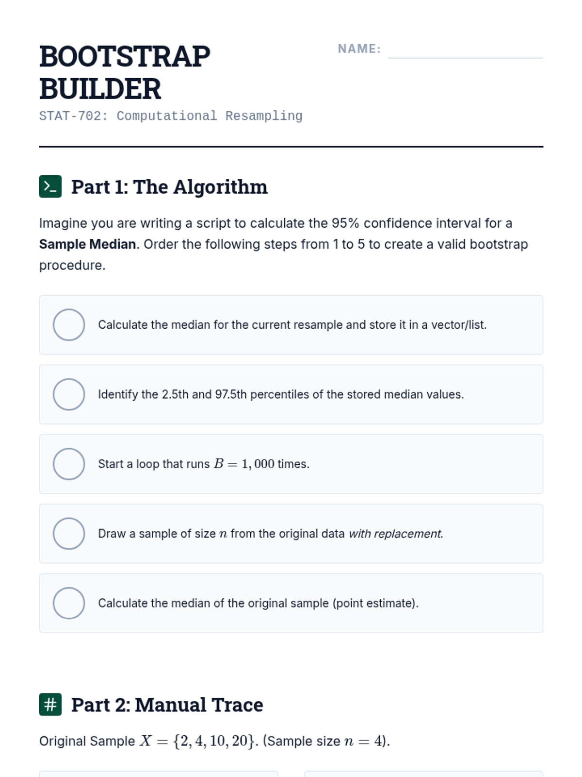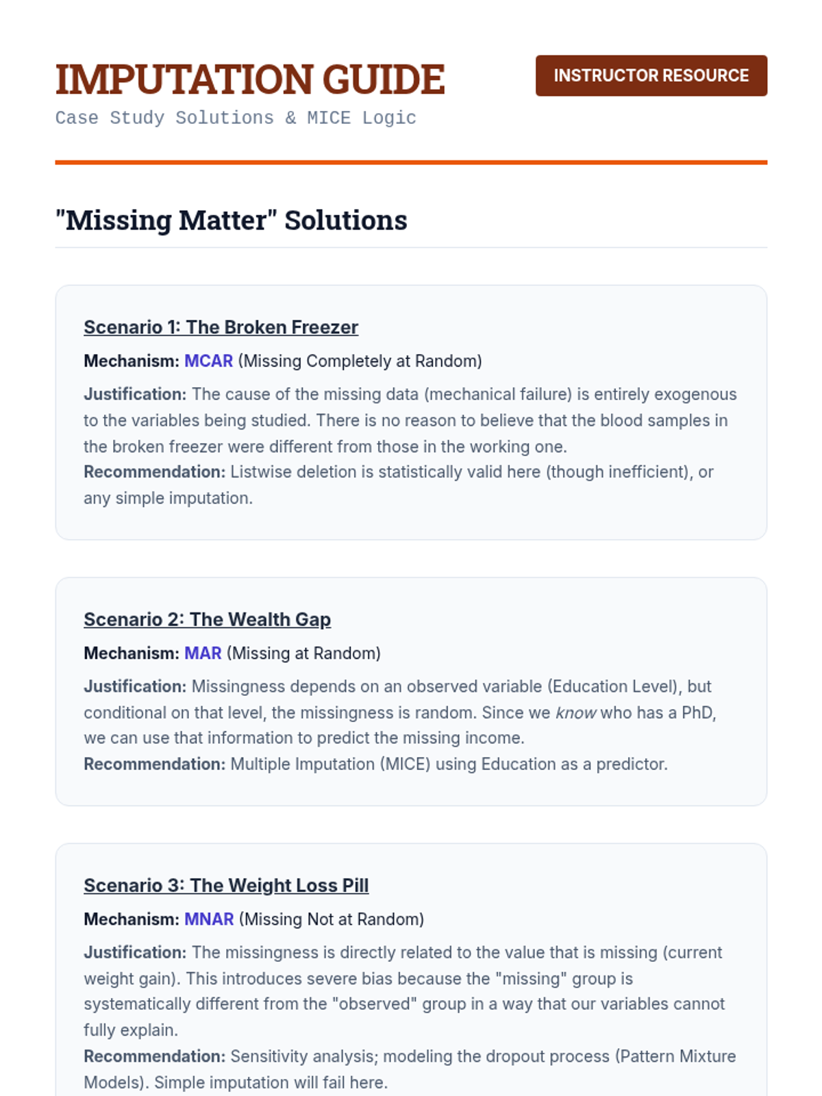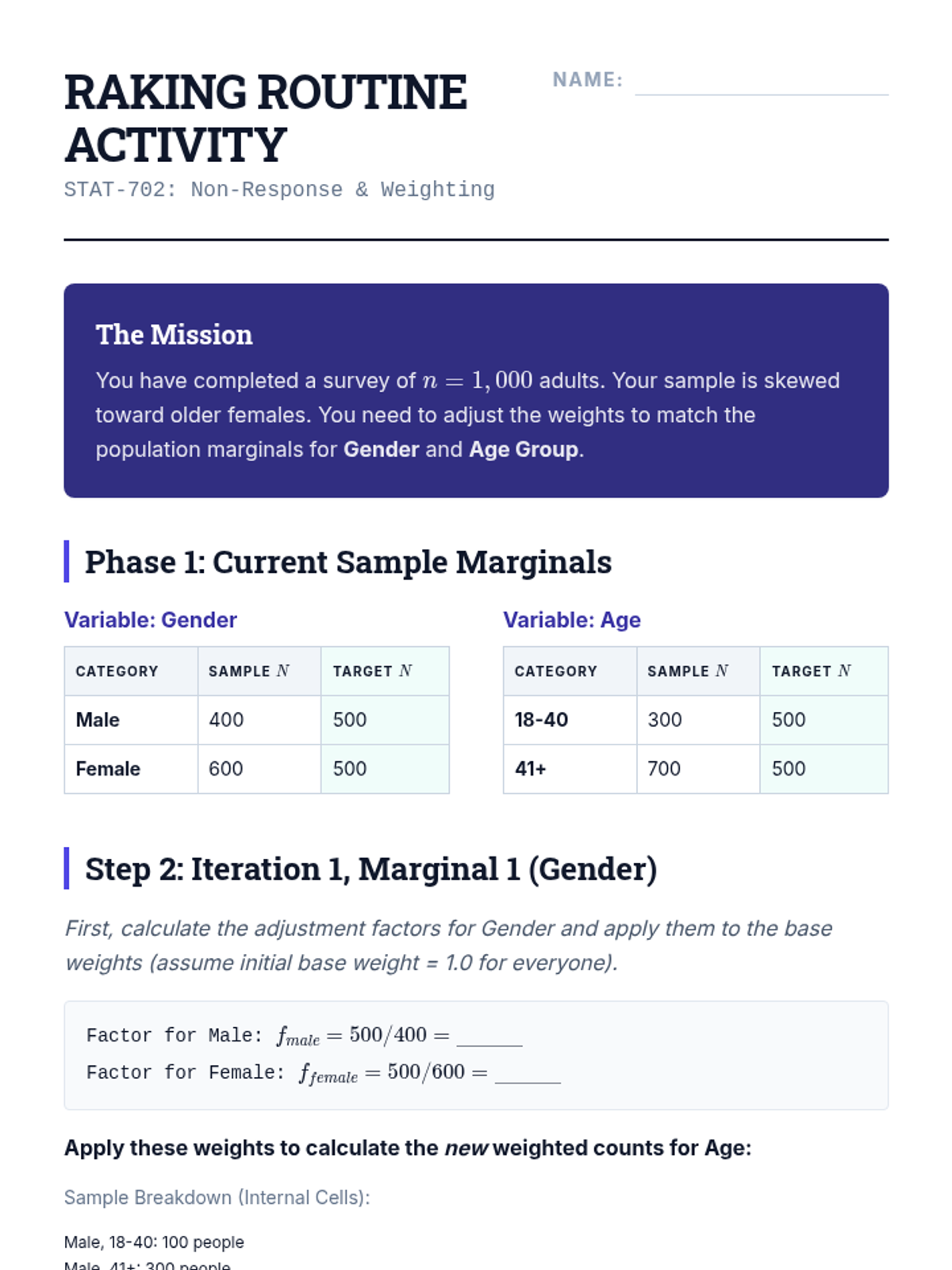 An advanced graduate-level module on statistical sampling techniques focusing on the mathematical correction of data after collection. Topics include probability weights, non-response adjustment through raking, imputation of missing values, and computational variance estimation via Bootstrap and Jackknife methods.