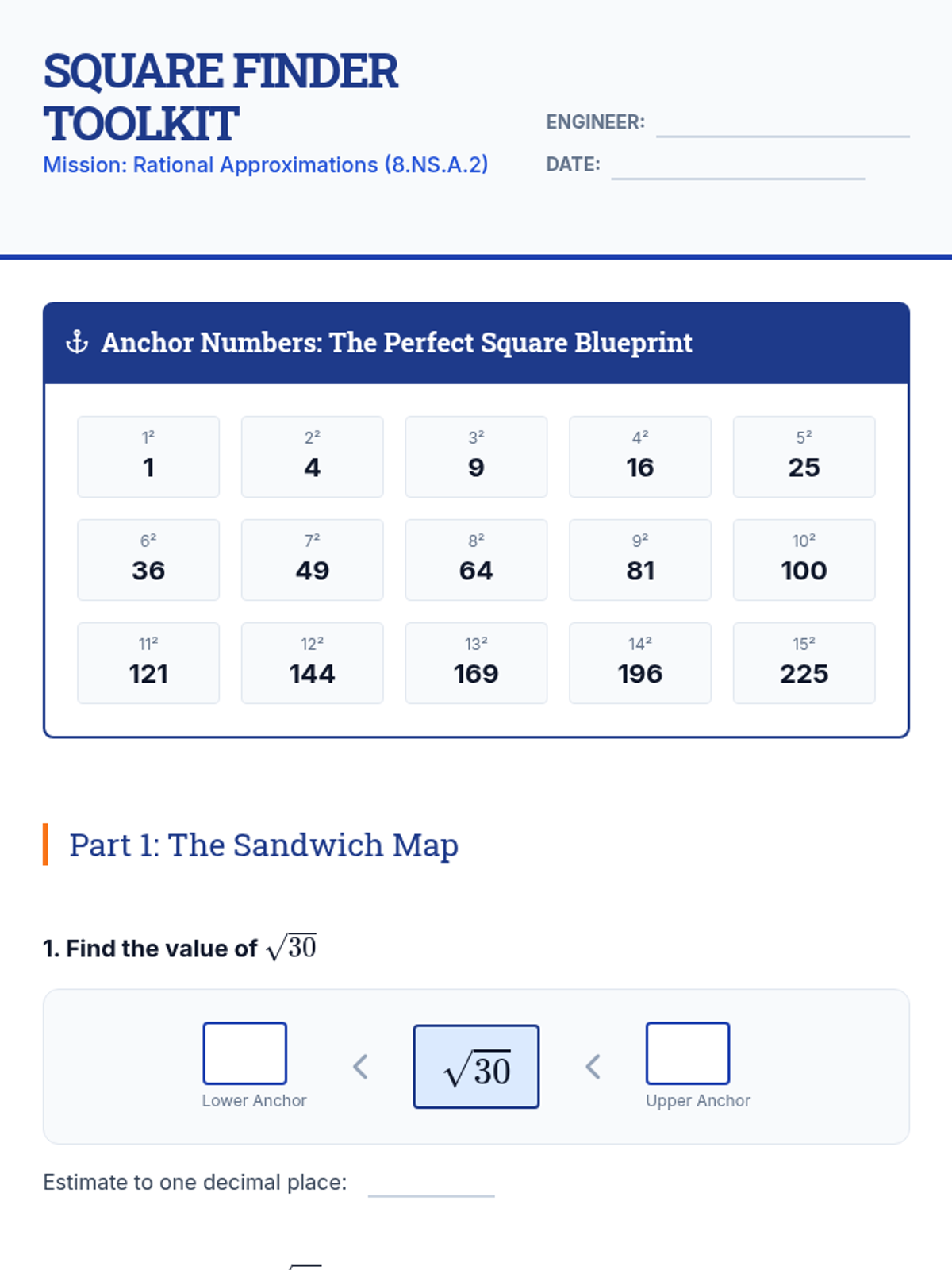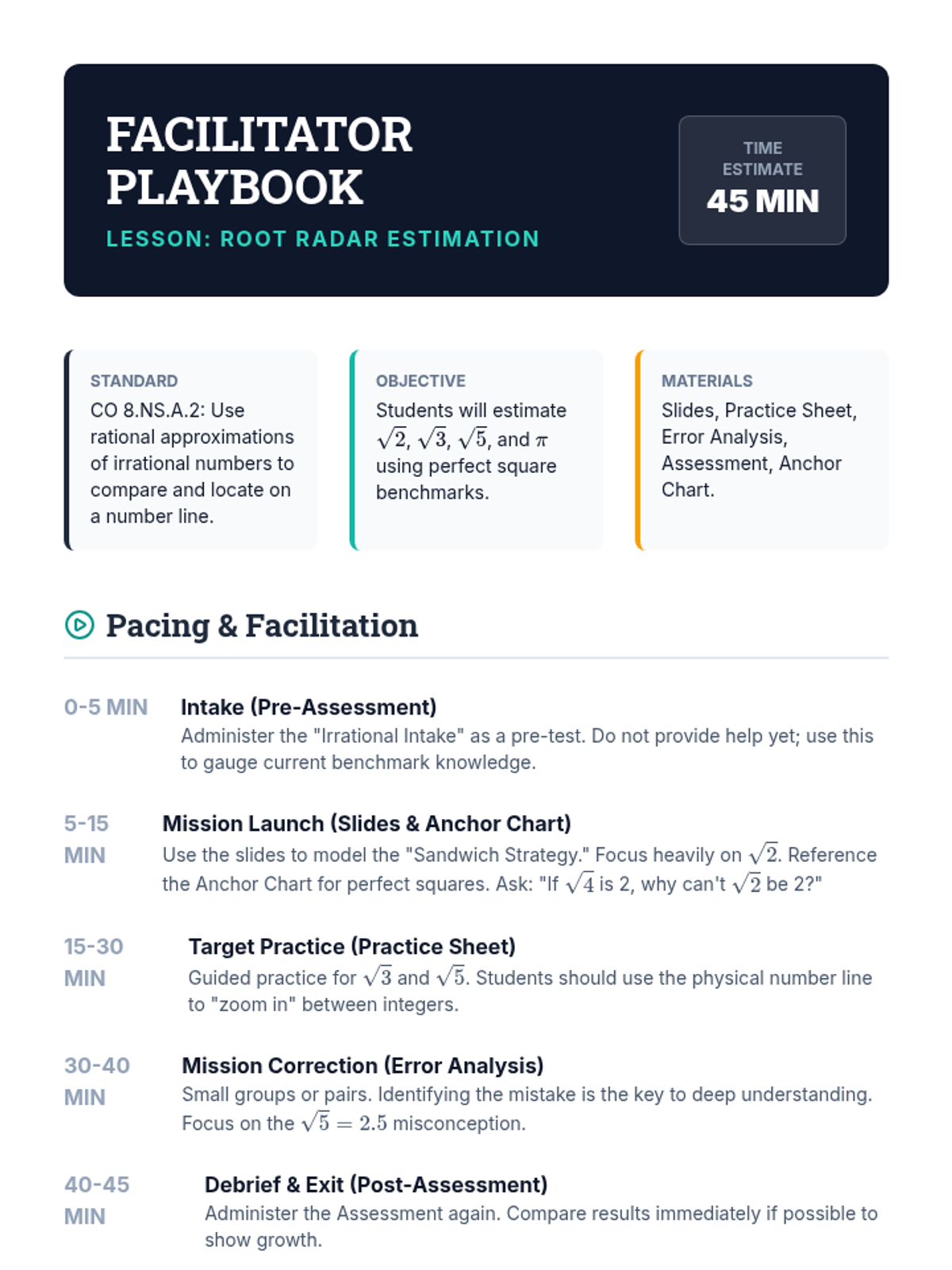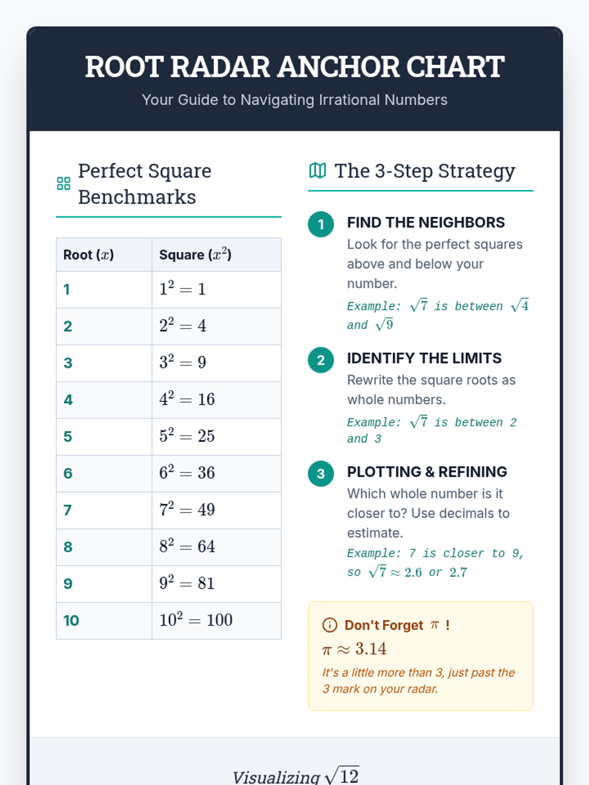 A targeted intervention sequence for Grade 8 students to master estimating irrational numbers like square roots and pi, placing them accurately on number lines between rational benchmarks.