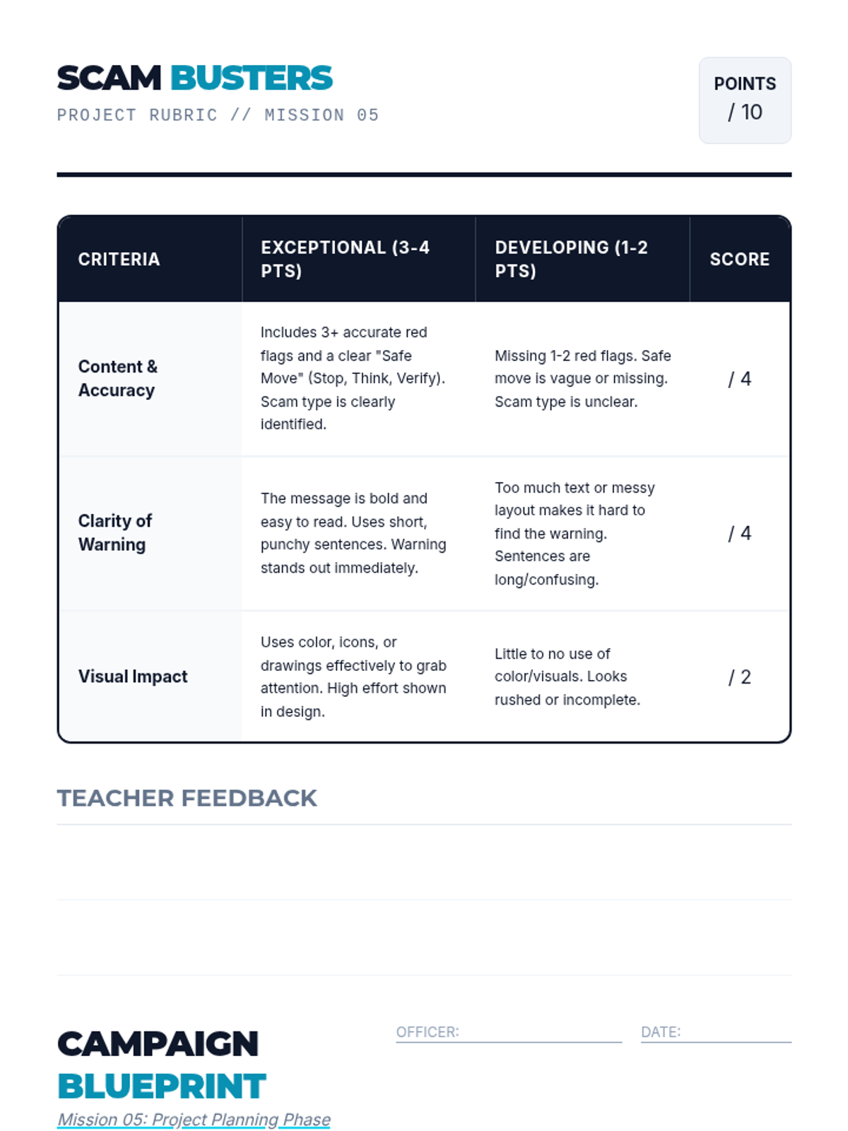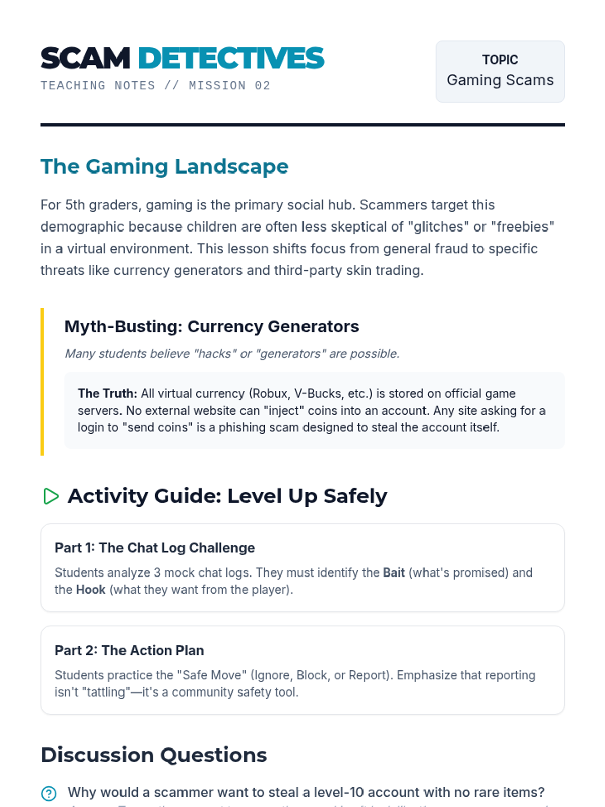 A comprehensive 5th-grade financial literacy unit focused on identifying and preventing fraud. Students learn to recognize red flags in 'too good to be true' offers, gaming scams, phishing attempts, and high-pressure tactics through interactive simulations and project-based learning.