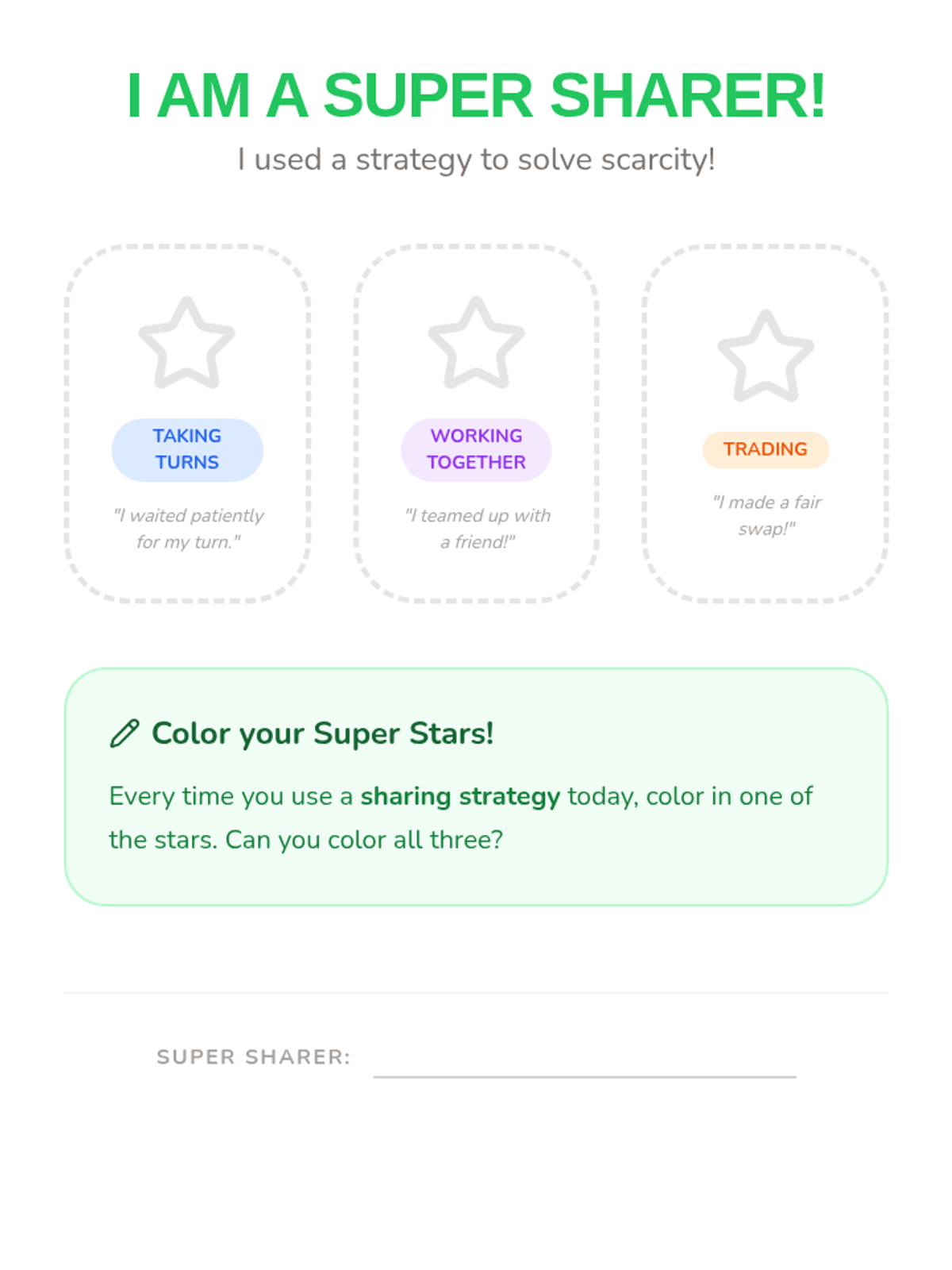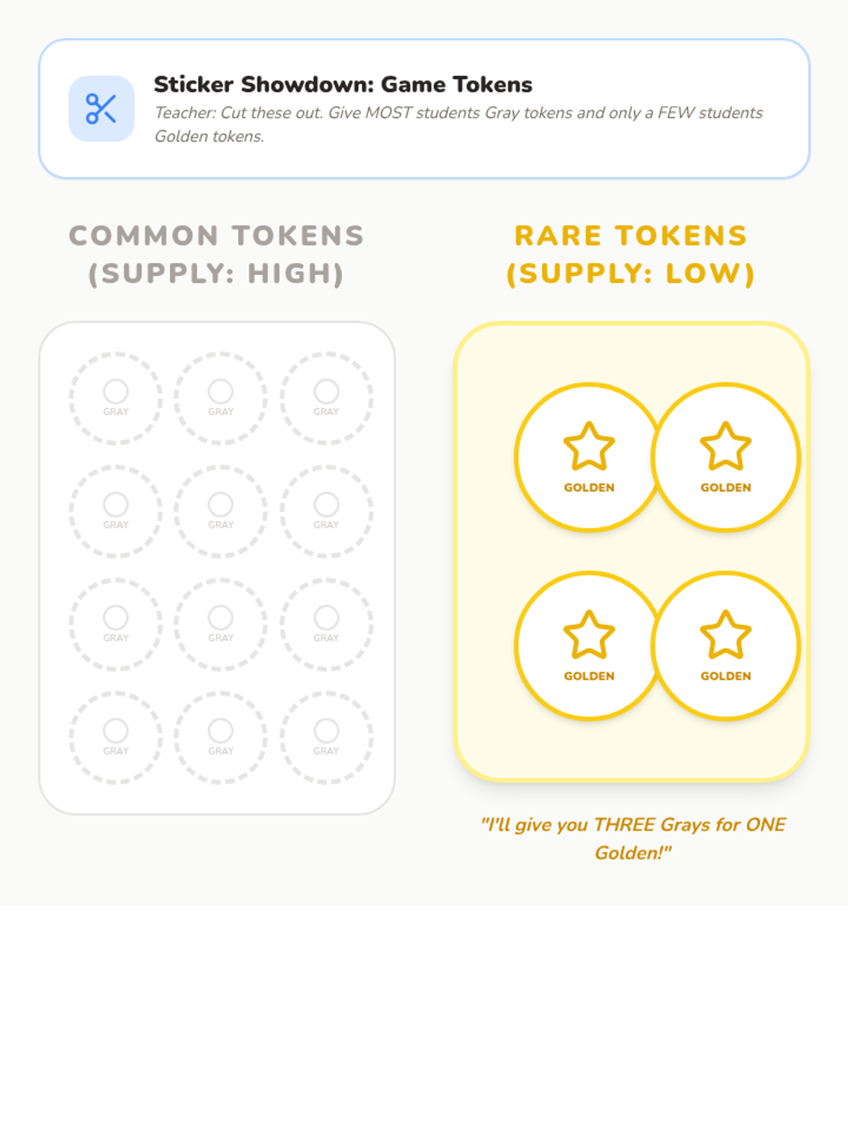 This sequence introduces Kindergarten students to foundational economic concepts through concrete experiences. Students explore the difference between needs and wants, encounter scarcity through a limited resource simulation, practice decision-making with trade-offs, and participate in a classroom market using earned tokens.