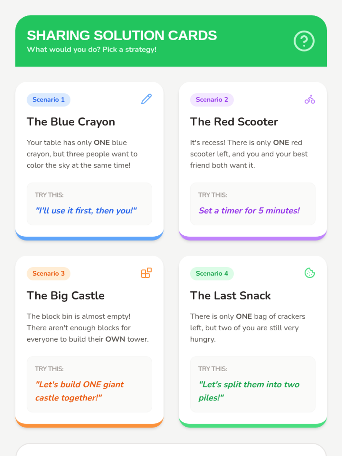 A foundational sequence for Kindergarten students exploring needs versus wants, scarcity, and decision-making through interactive games and hands-on simulations. Students learn that resources are limited and making a choice involves giving something else up, building early financial literacy.
