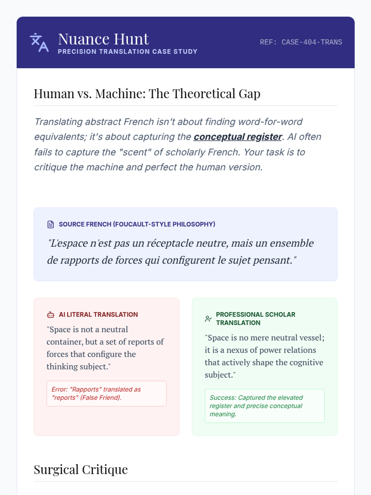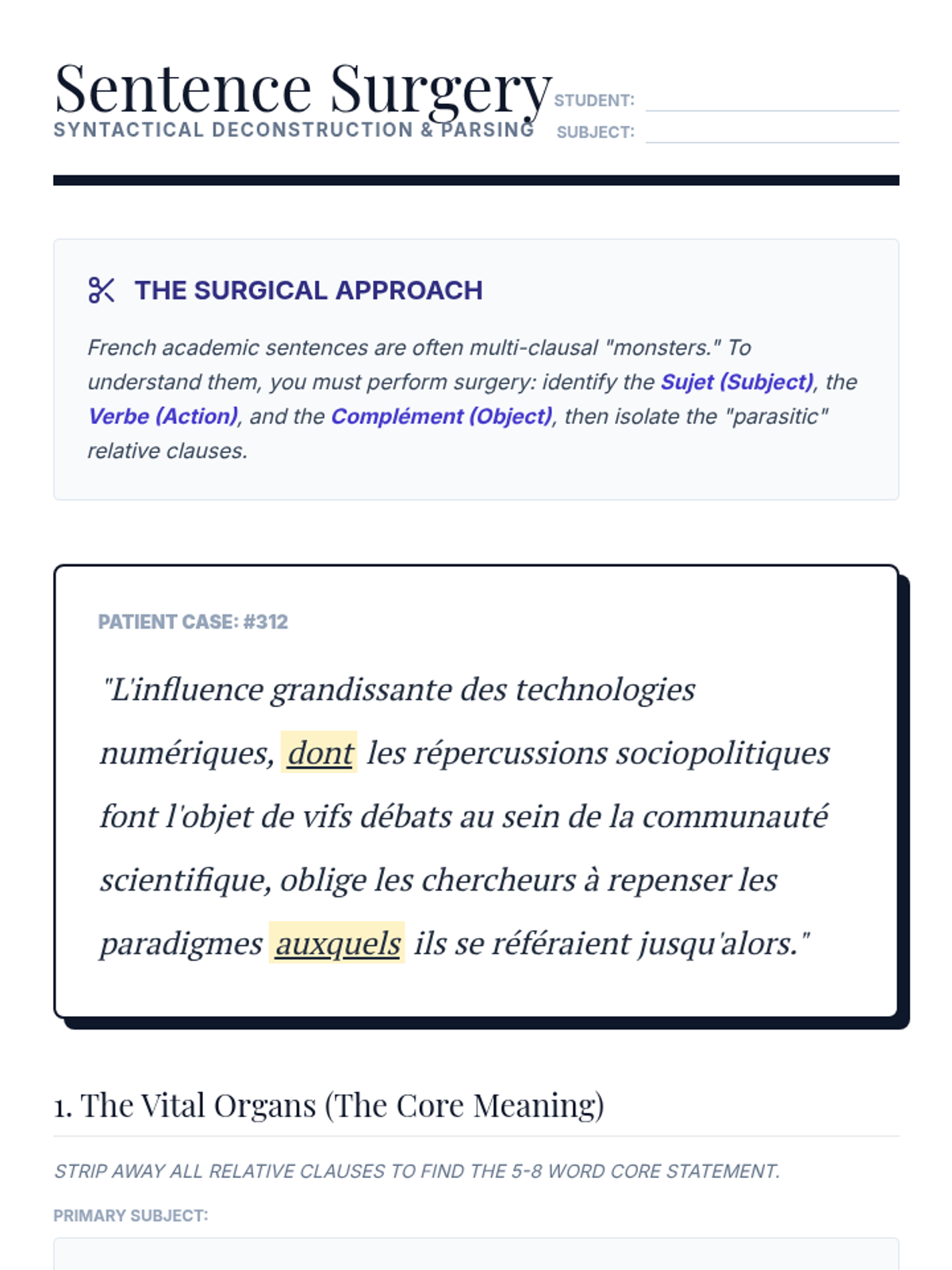 This sequence equips graduate students with high-efficiency strategies for reading and synthesizing academic French research. Students progress from rapid scanning techniques to deep syntactical analysis and precise translation of abstract theoretical concepts.