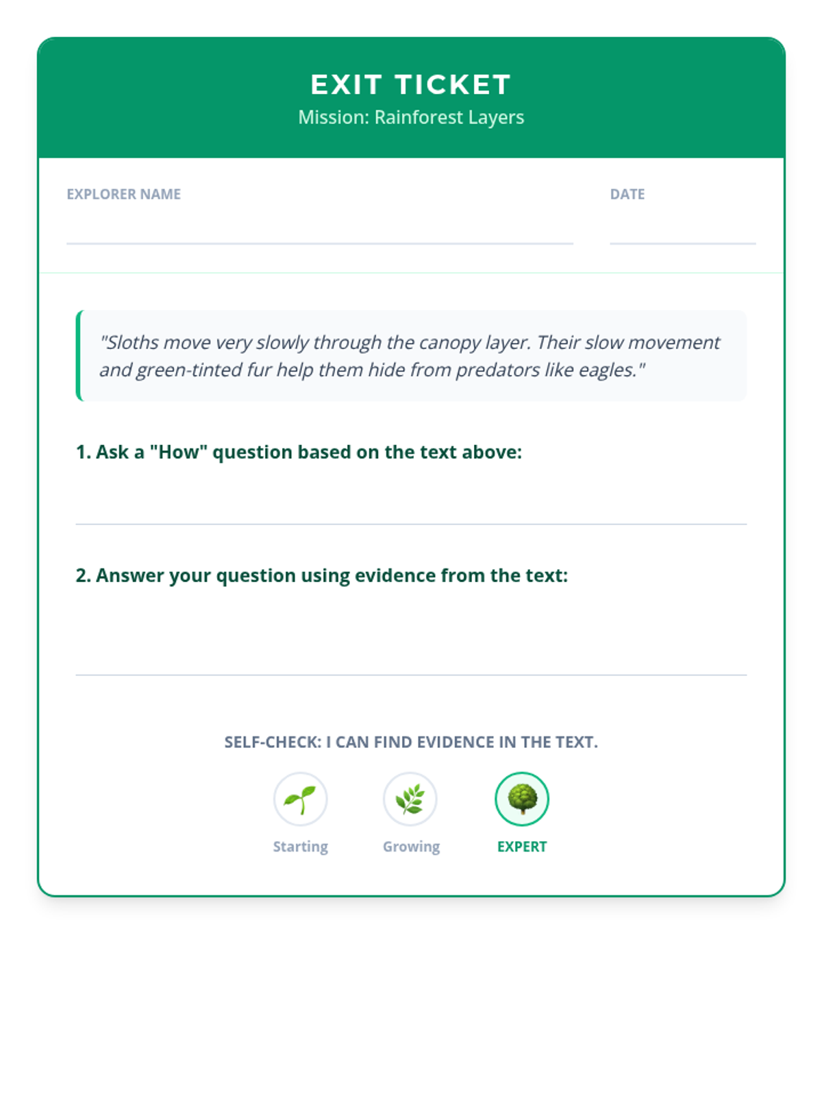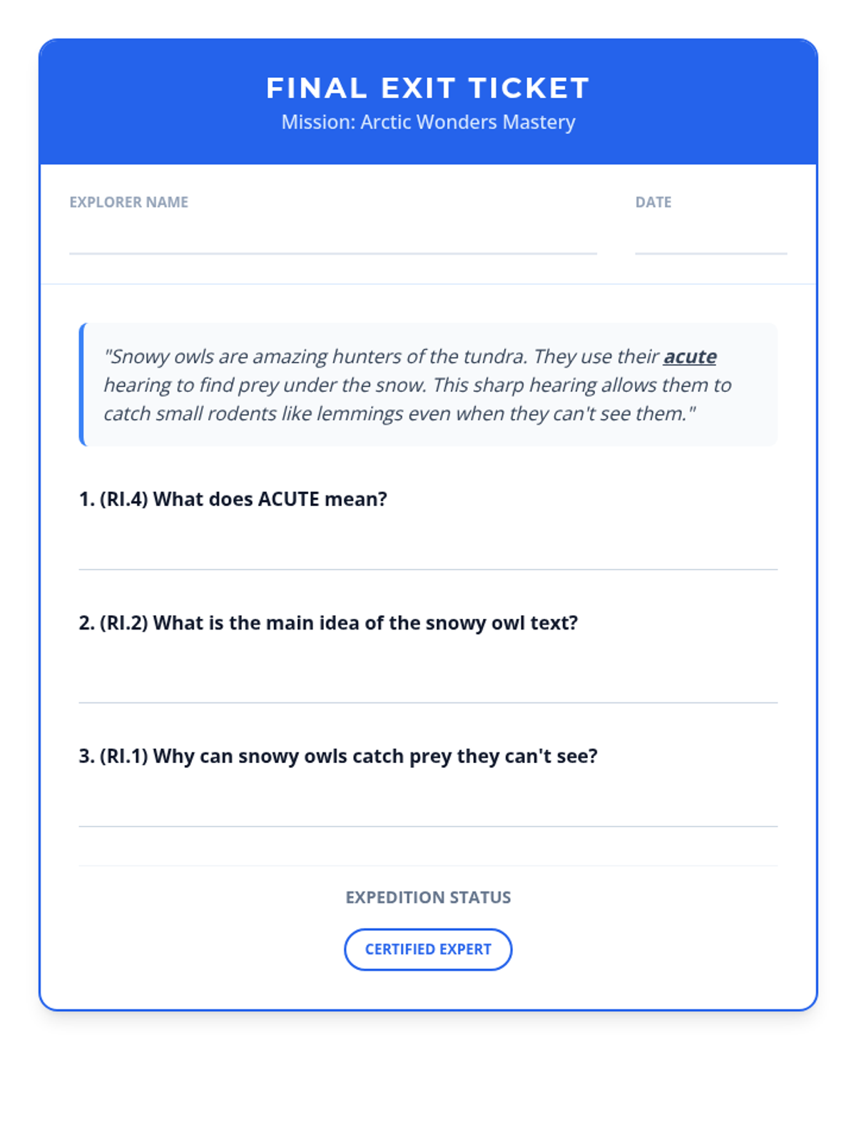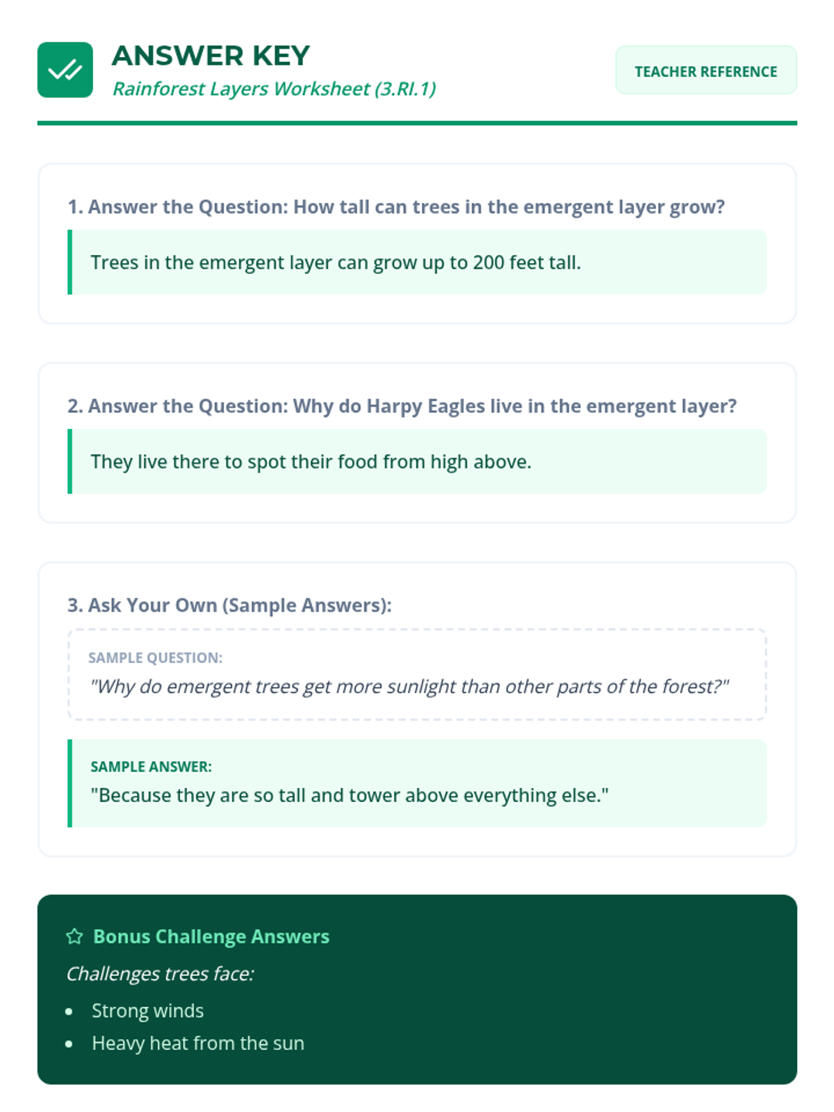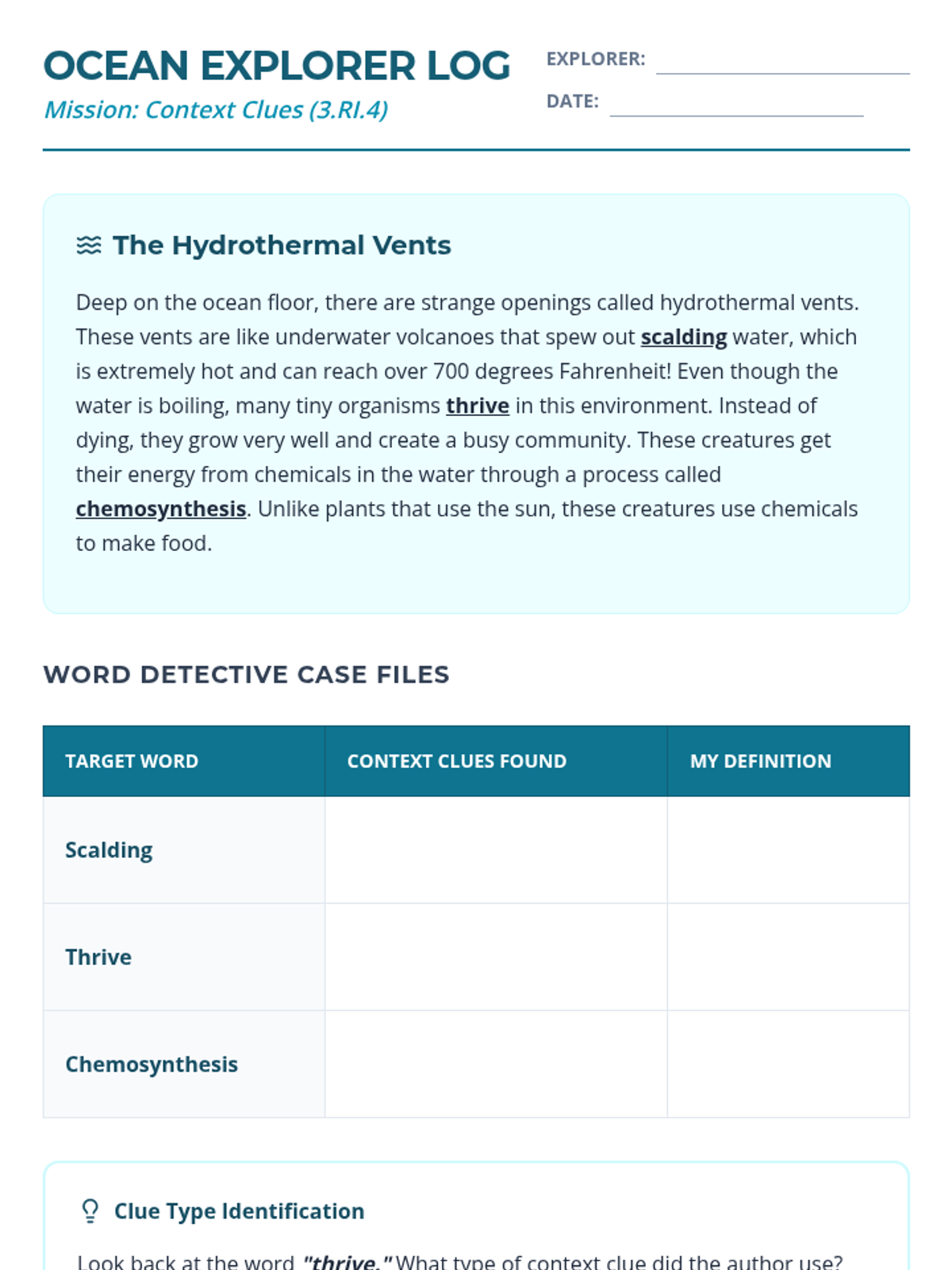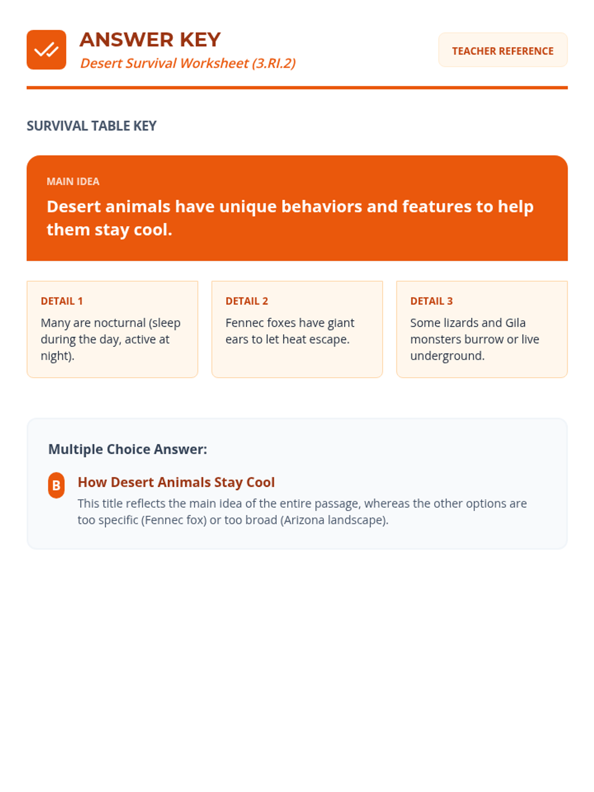 A 4-day science-themed reading sequence focusing on Arizona standards for informational text: asking and answering questions (3.RI.1), determining main ideas and key details (3.RI.2), and using context clues for vocabulary (3.RI.4). Students explore different global habitats while mastering reading comprehension skills.