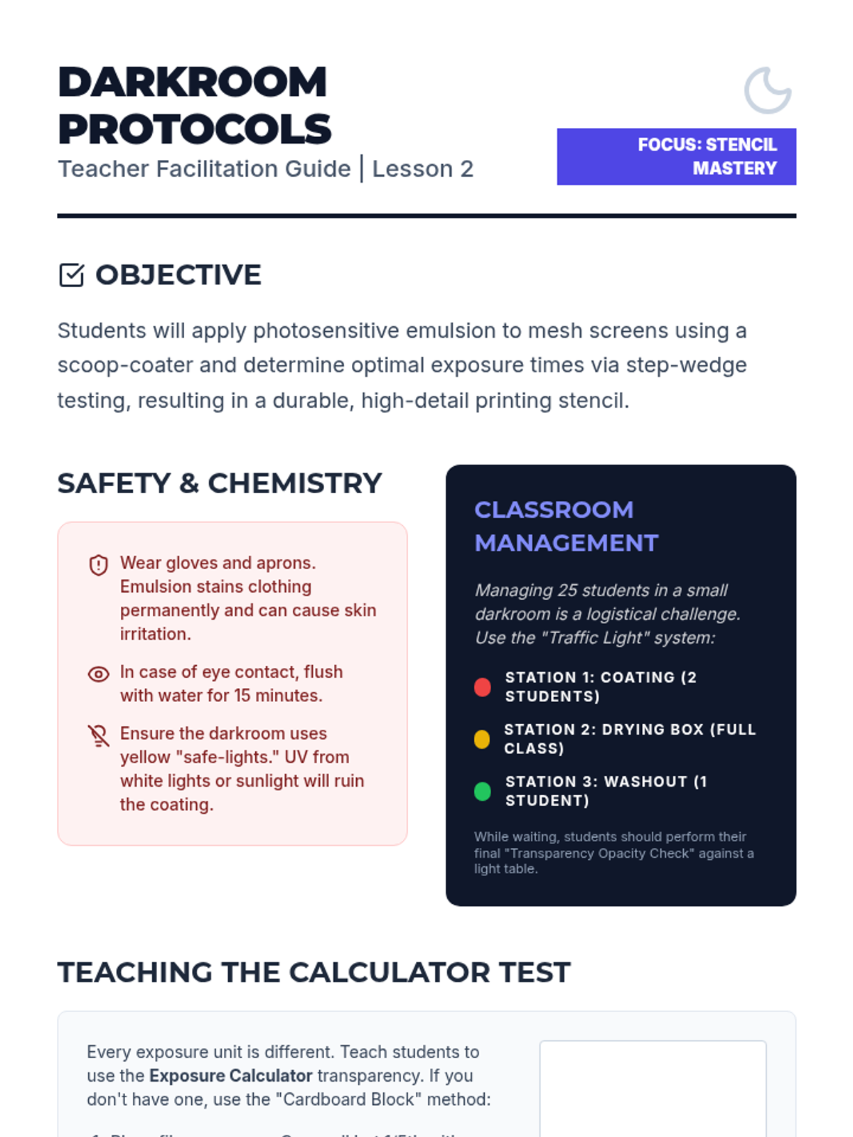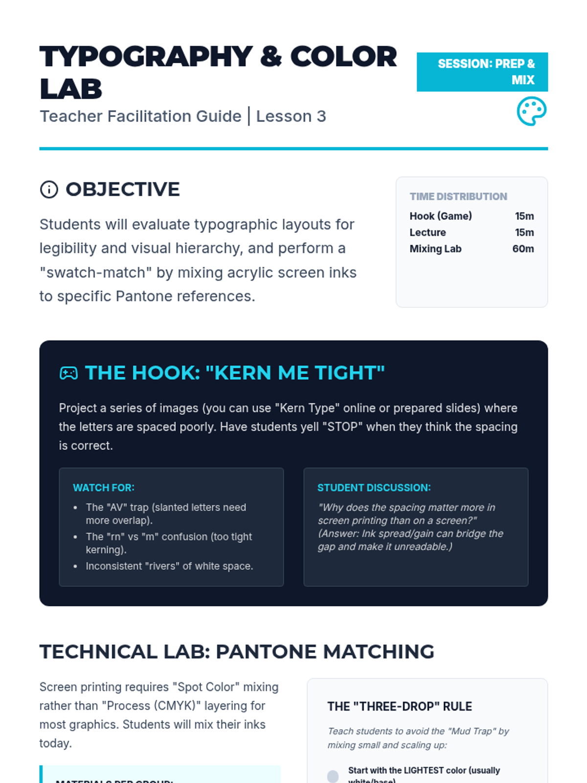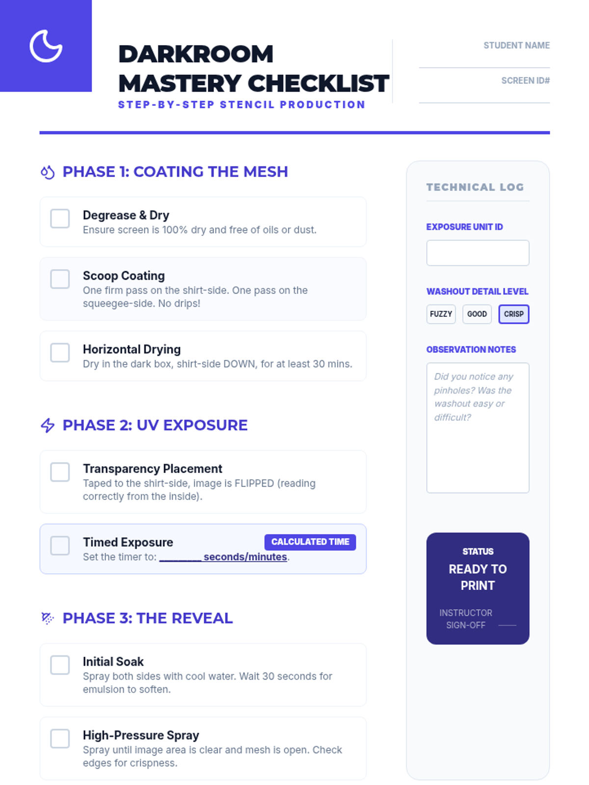 This 11th Grade sequence introduces students to the technical and creative world of screen printing. Over five lessons, students master the photo-emulsion process, layer-based design thinking, typography, and professional production techniques, culminating in a multi-color print run.