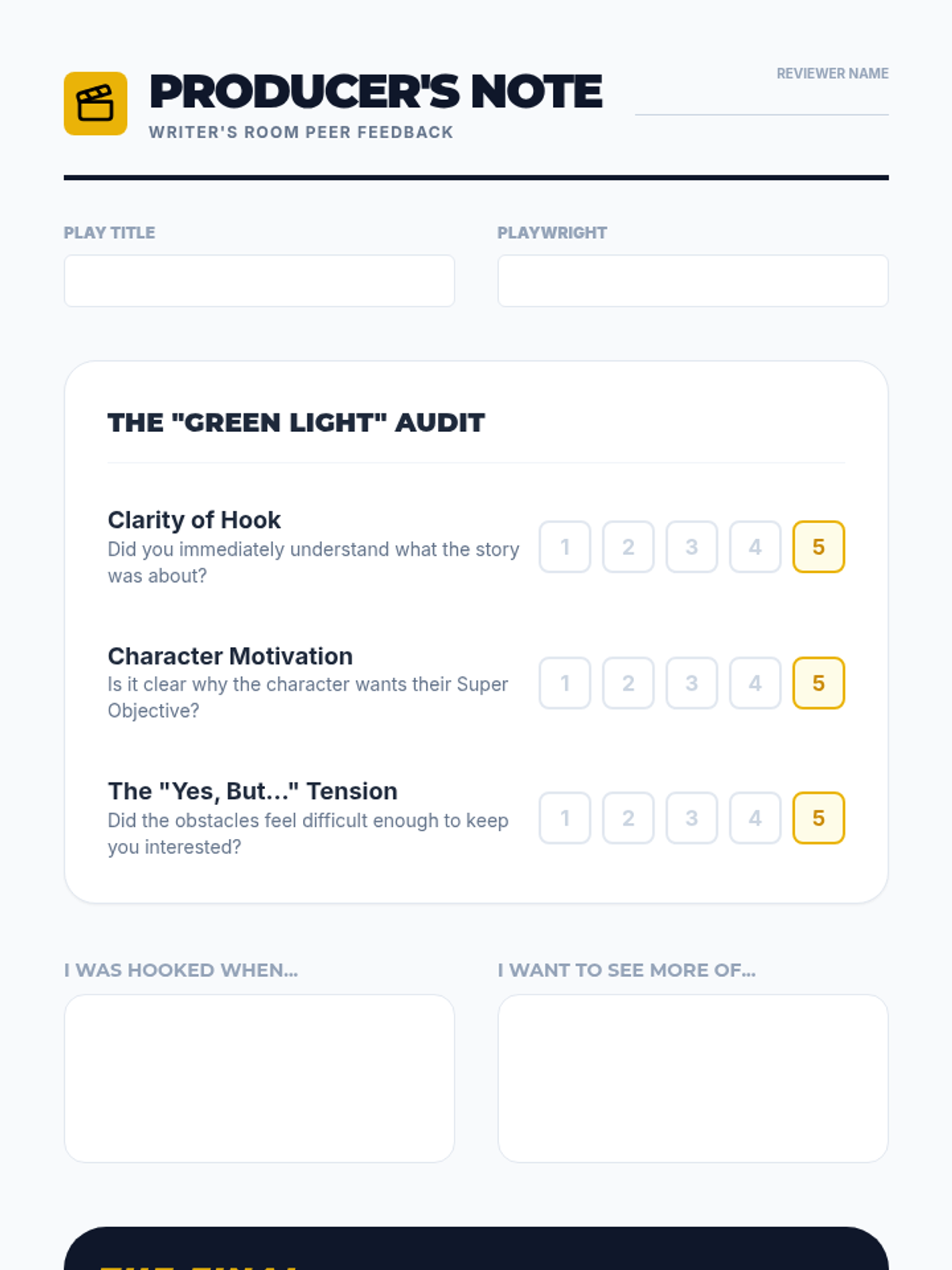 A 5-lesson sequence for 5th-grade students focusing on the iterative process of playwriting, from the first table read to a final, polished performance-ready script. Students develop skills in auditory analysis, dialogue refinement, conciseness, and collaboration.
