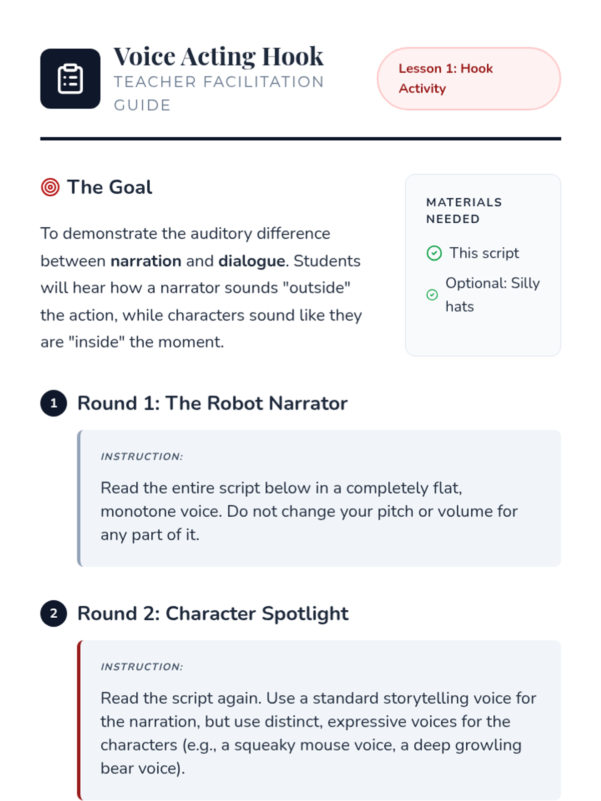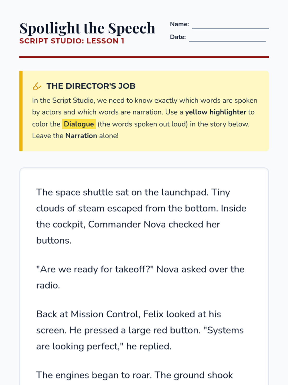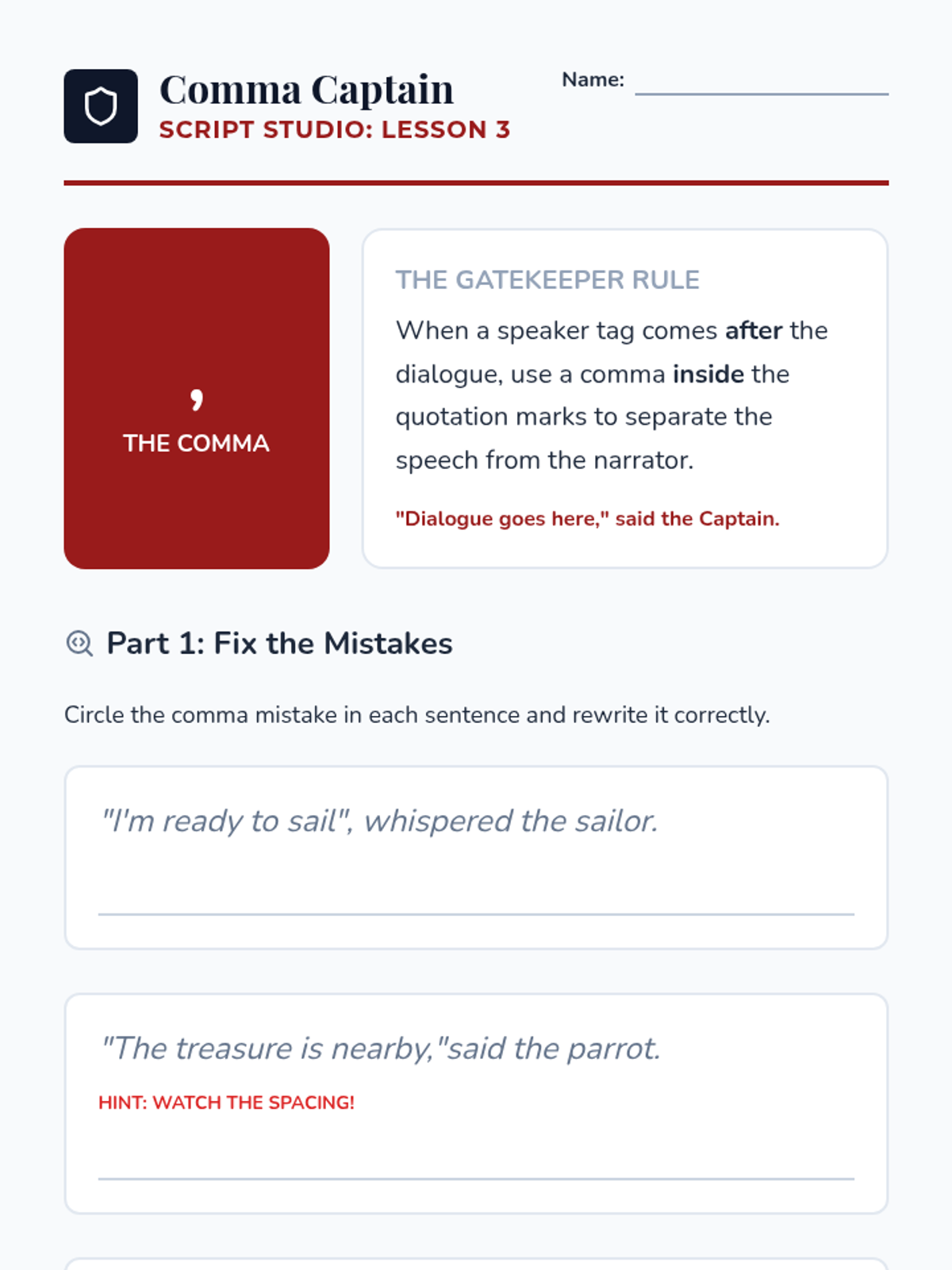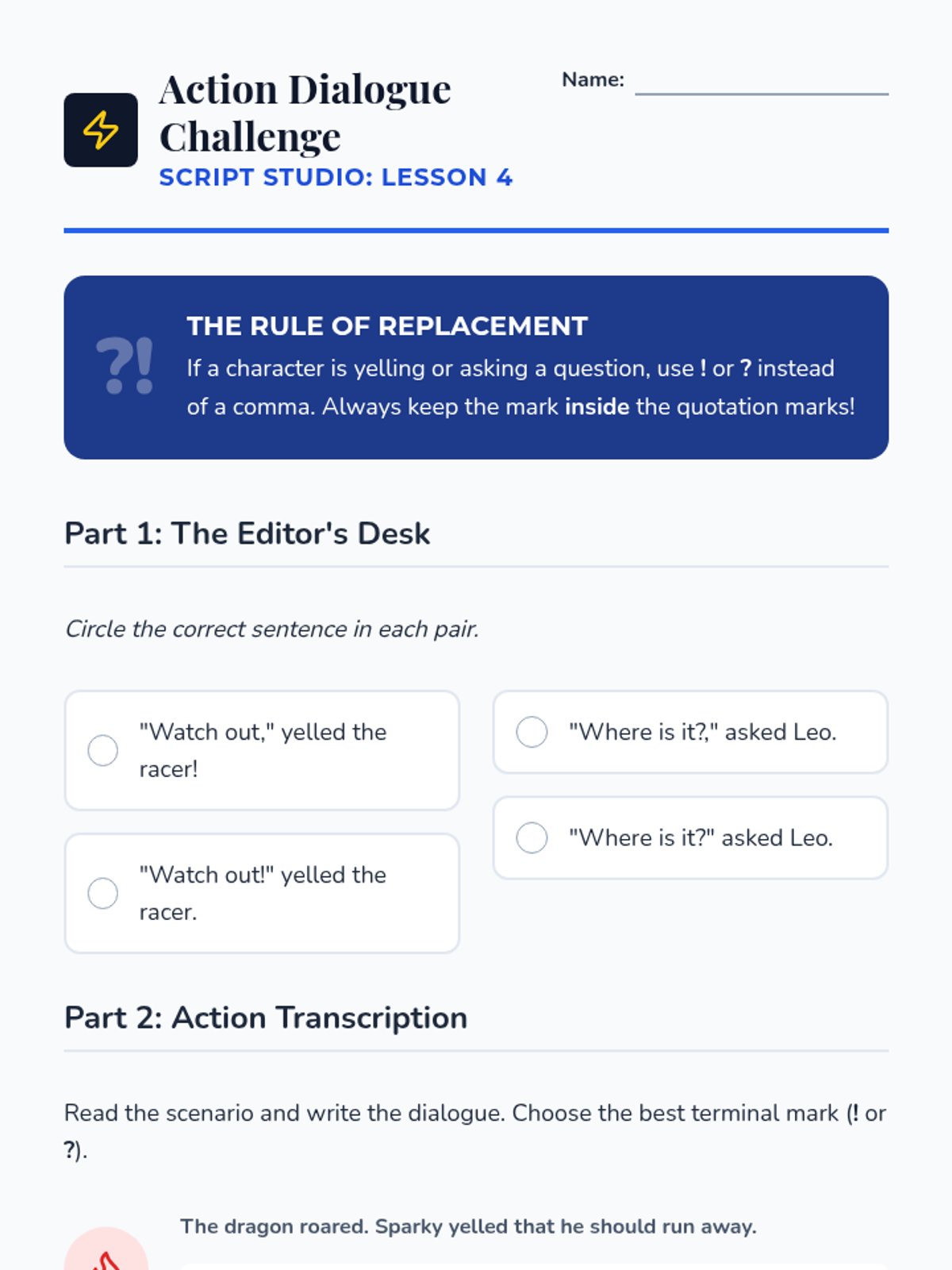 This 3rd-grade ELA sequence transforms students into 'Script Studio' editors as they master the mechanics of punctuating dialogue. Through inquiry, hands-on 'macaroni' workshops, and creative writing prompts, students learn to distinguish narration from speech and correctly place quotation marks, commas, and terminal punctuation in character dialogue.