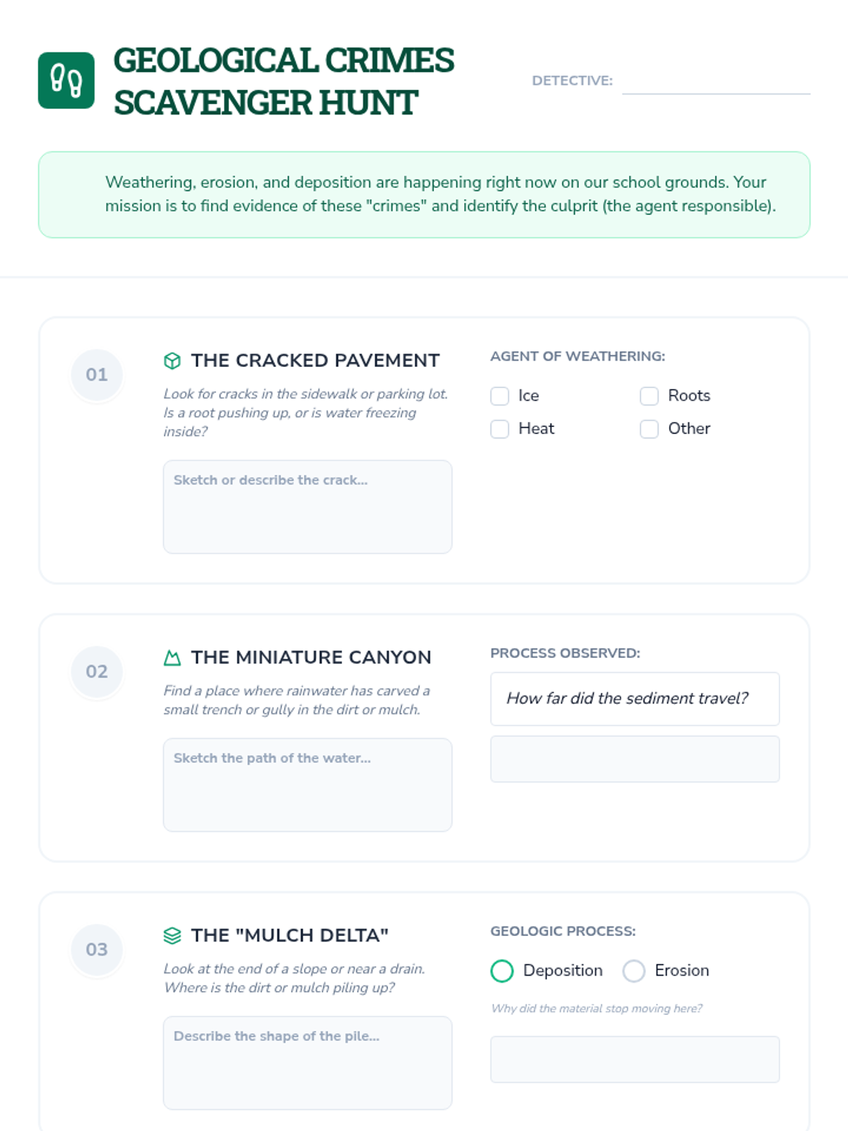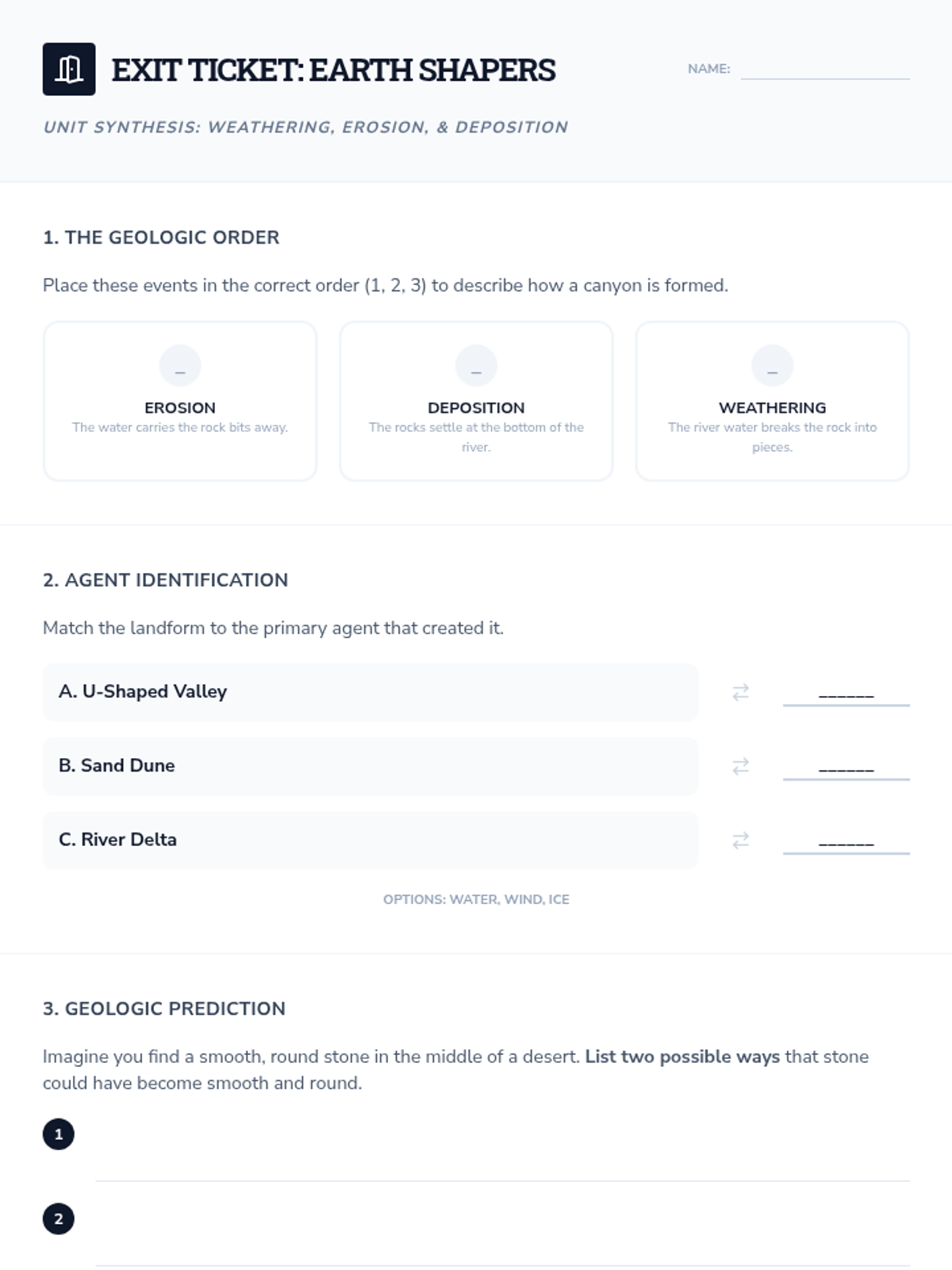 A 5-lesson sequence for 6th-grade students exploring the slow, continuous processes of weathering, erosion, and deposition through hands-on modeling and real-world observation.