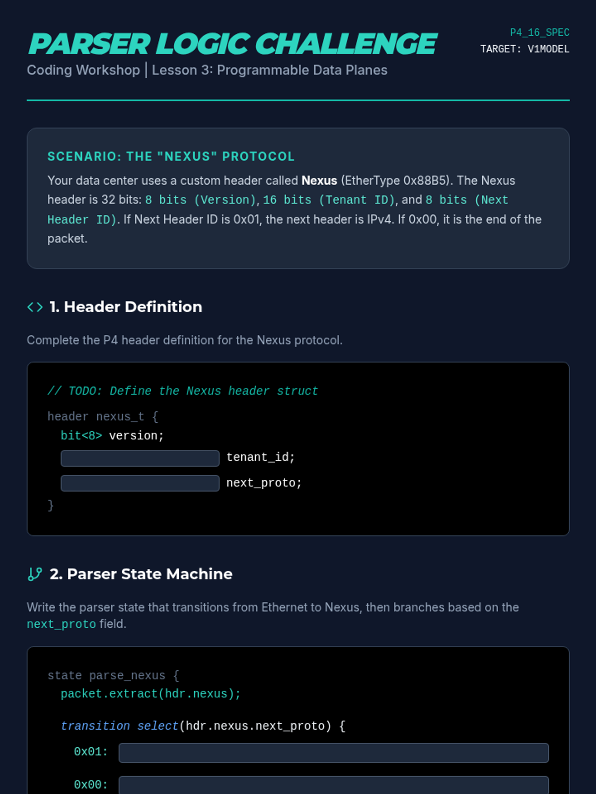 This graduate-level sequence explores the fundamental shift from hardware-centric networking to Software-Defined Networking (SDN) and Network Function Virtualization (NFV), focusing on the decoupling of control and data planes, programmable pipelines with P4, and cloud-native overlay technologies.