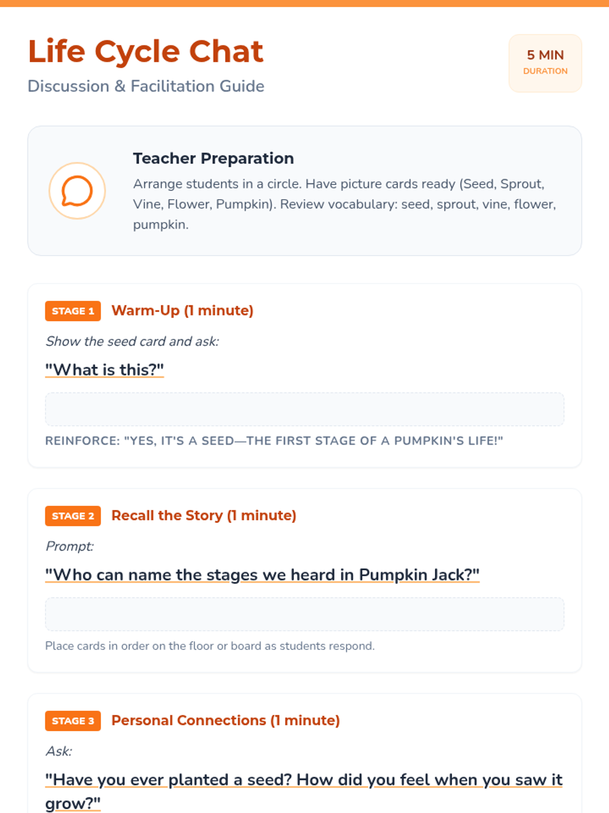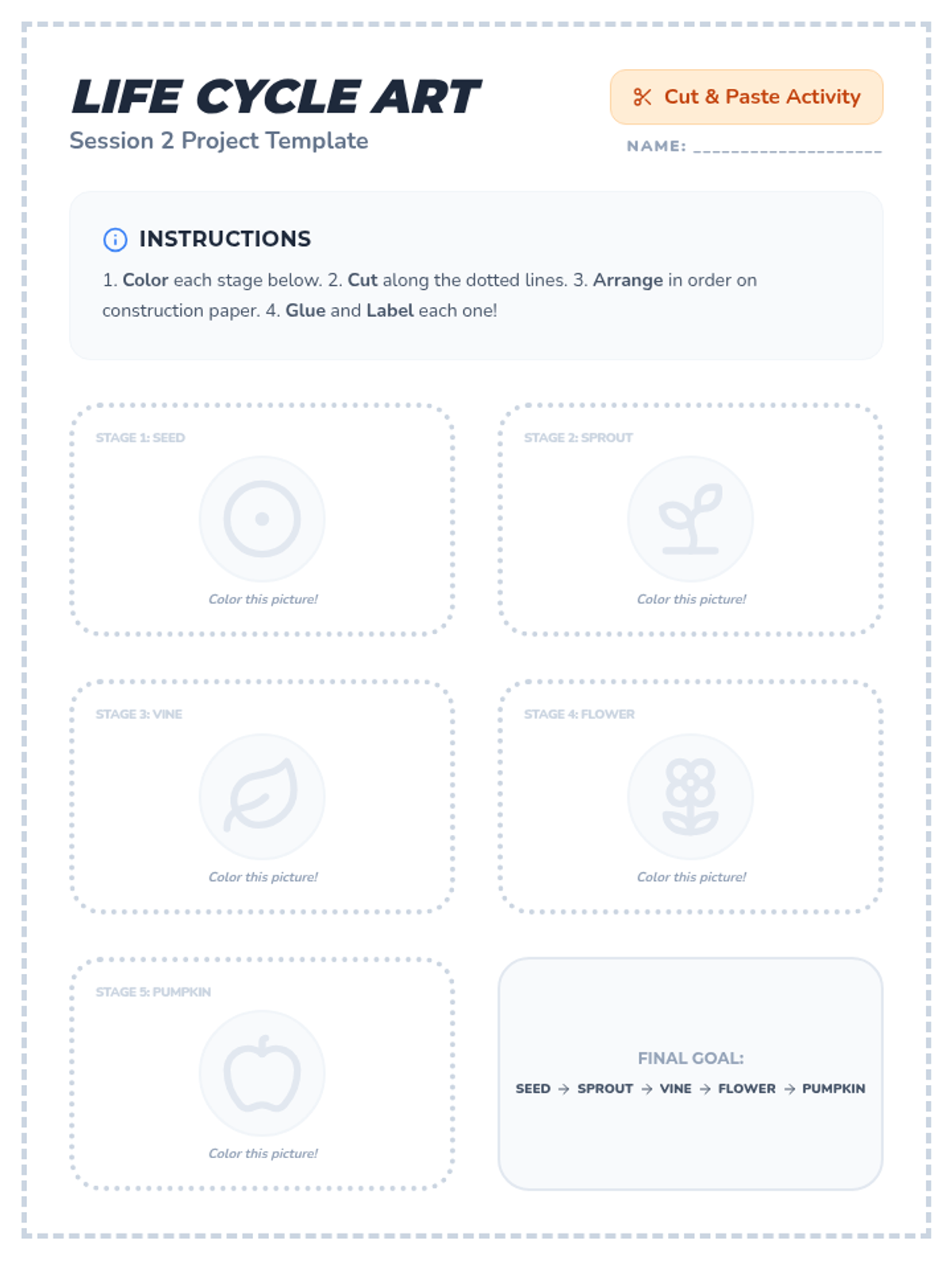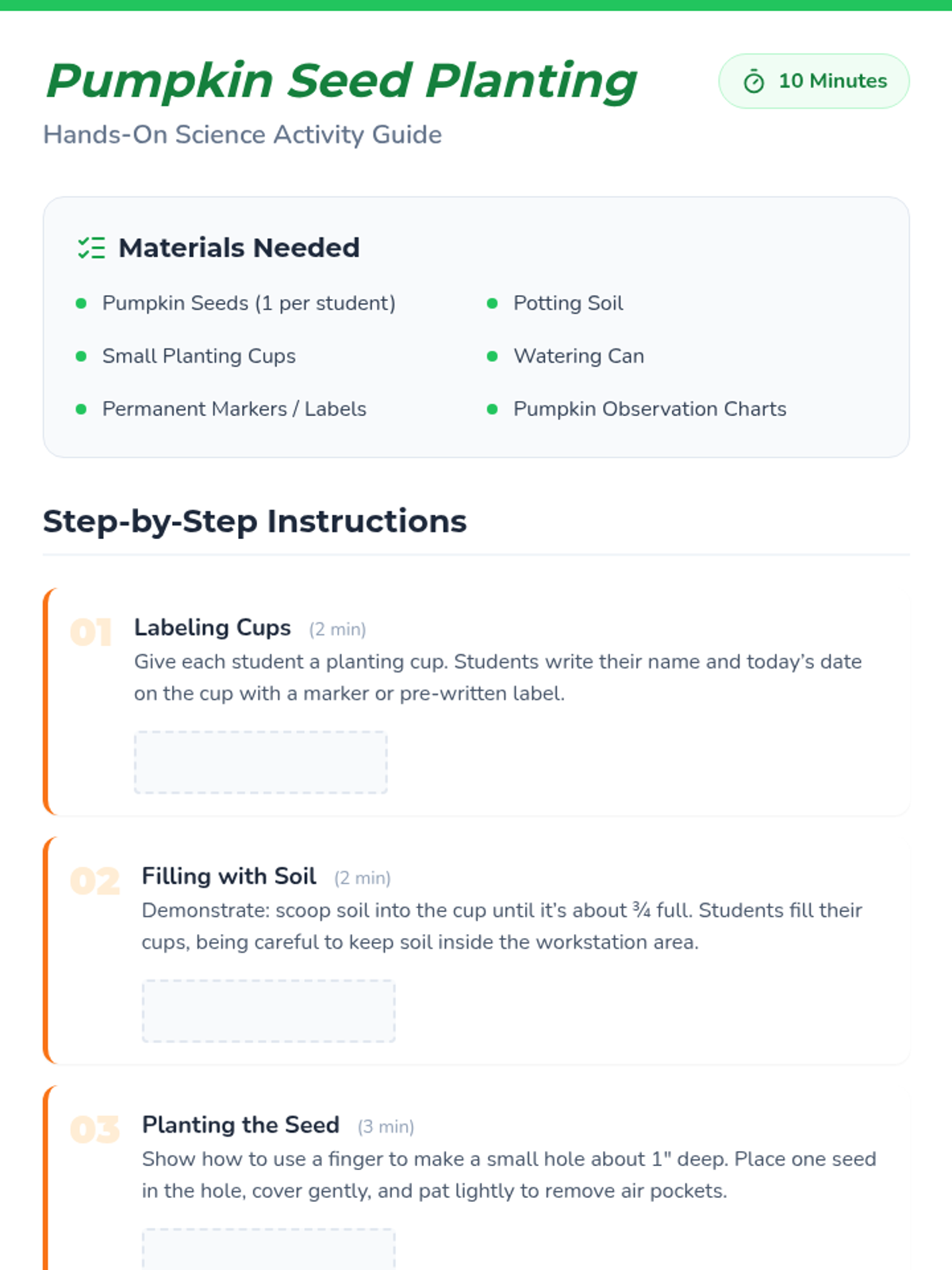 A 3-session sequence for K-3 students to explore the pumpkin life cycle through storytime, planting, art, and games. Students will develop observation skills and scientific vocabulary while watching their own seeds grow into plants.