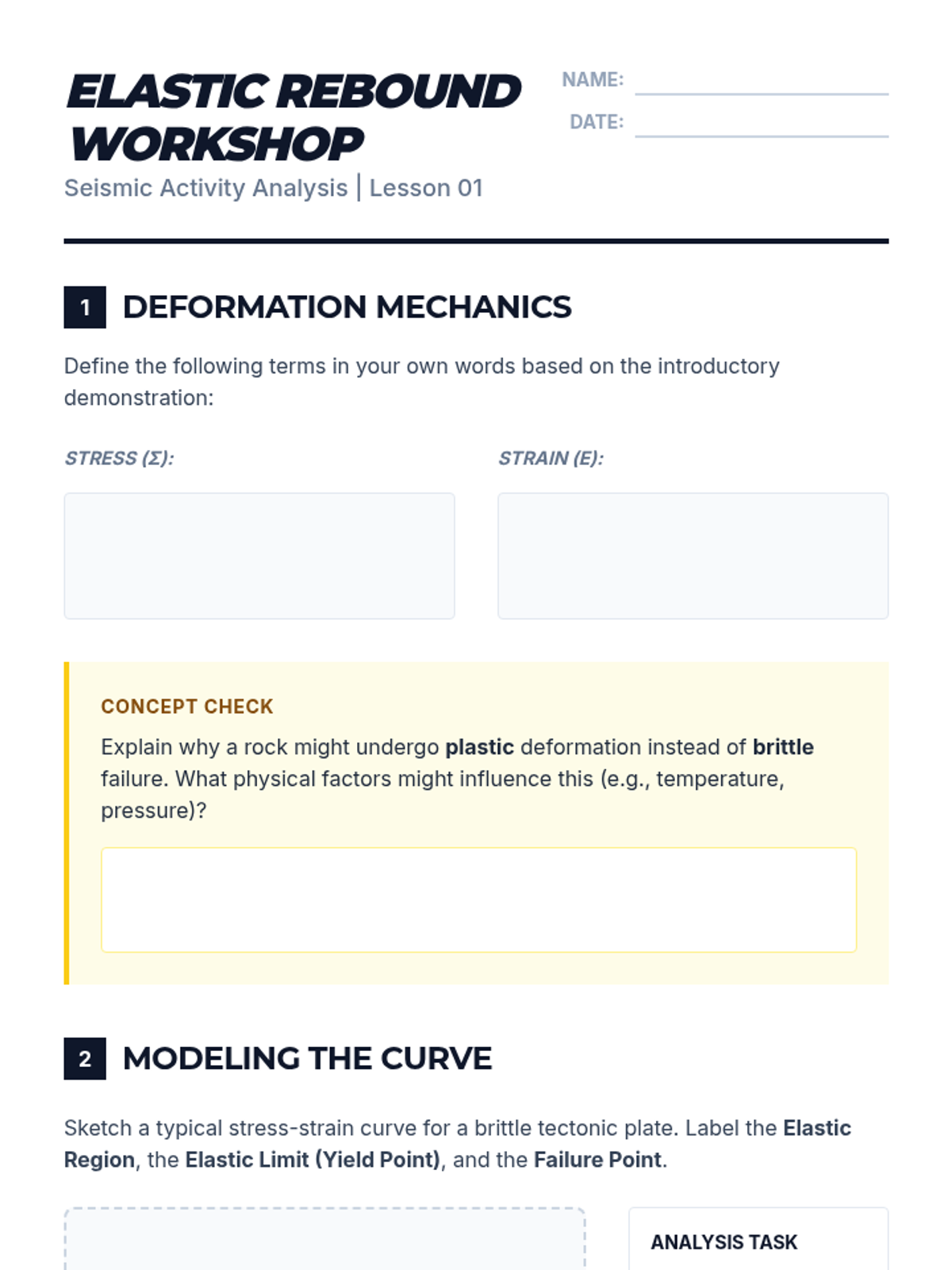 This sequence bridges geology and societal impact by focusing on seismology and hazard mitigation. Students explore the physics of tectonic stress, seismic wave propagation, and engineering strategies for seismic resilience.