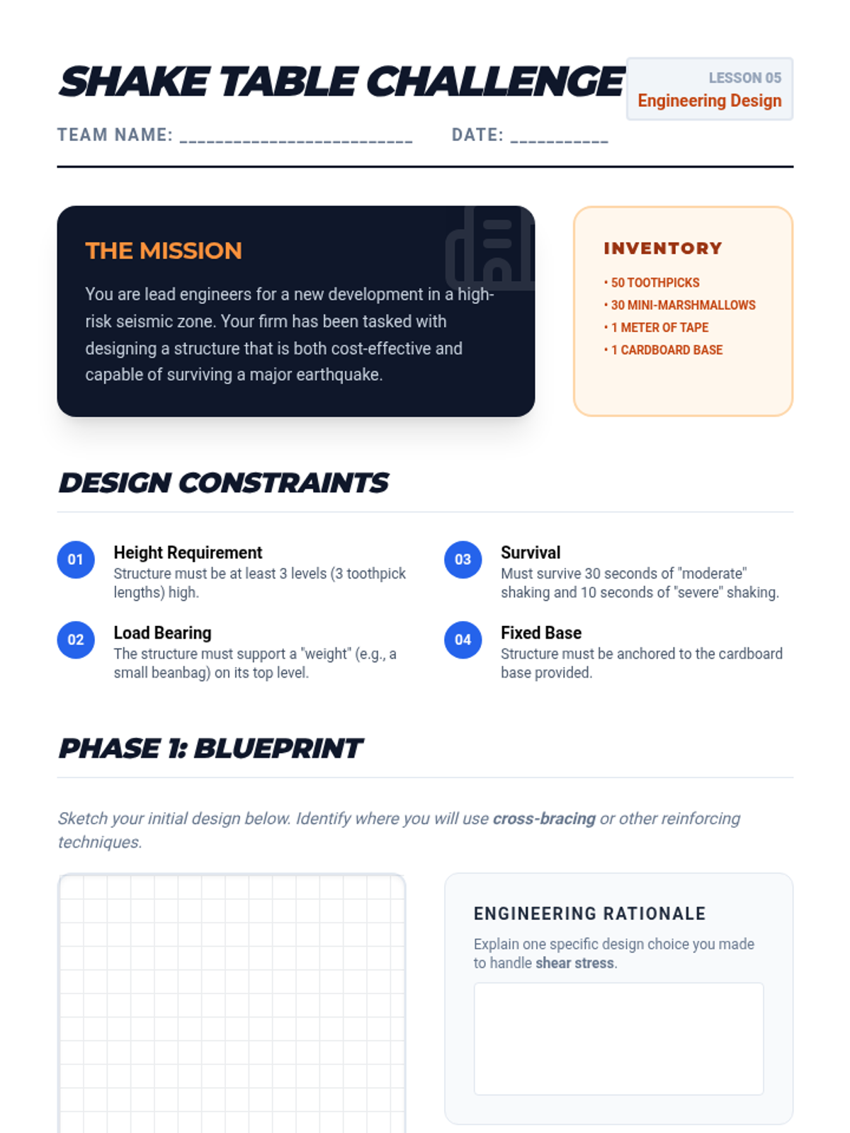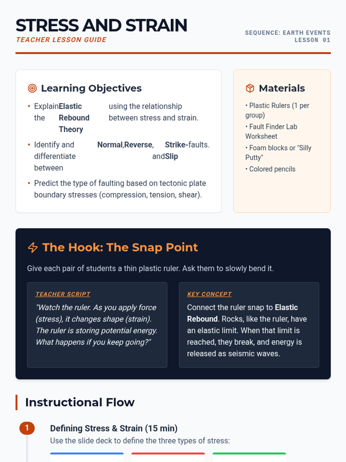 A comprehensive 9th-grade Earth Science unit exploring the physics of earthquakes, seismic wave behavior, epicenter triangulation, and seismic engineering. Students move from theoretical stress-strain models to practical data analysis and engineering design.