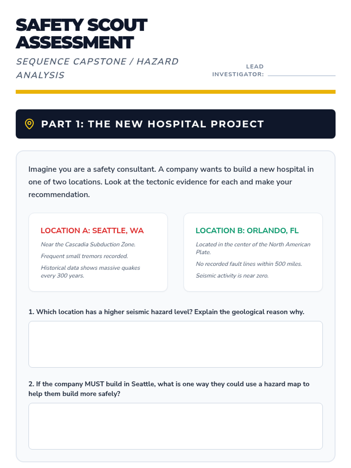 Students investigate the connection between plate tectonics and natural hazards. By analyzing global seismic data, the Ring of Fire, and specific case studies like the San Andreas Fault and Hawaii, they learn to interpret hazard maps and understand the predictability of geological events.