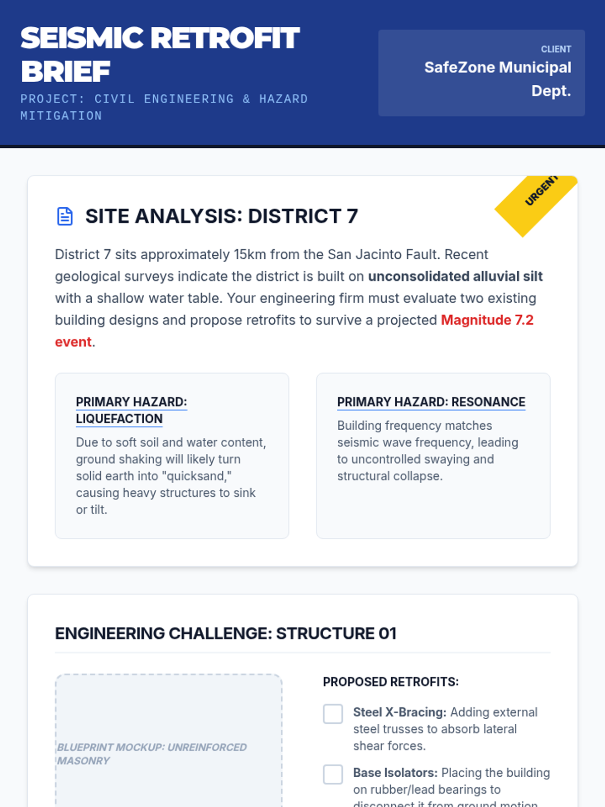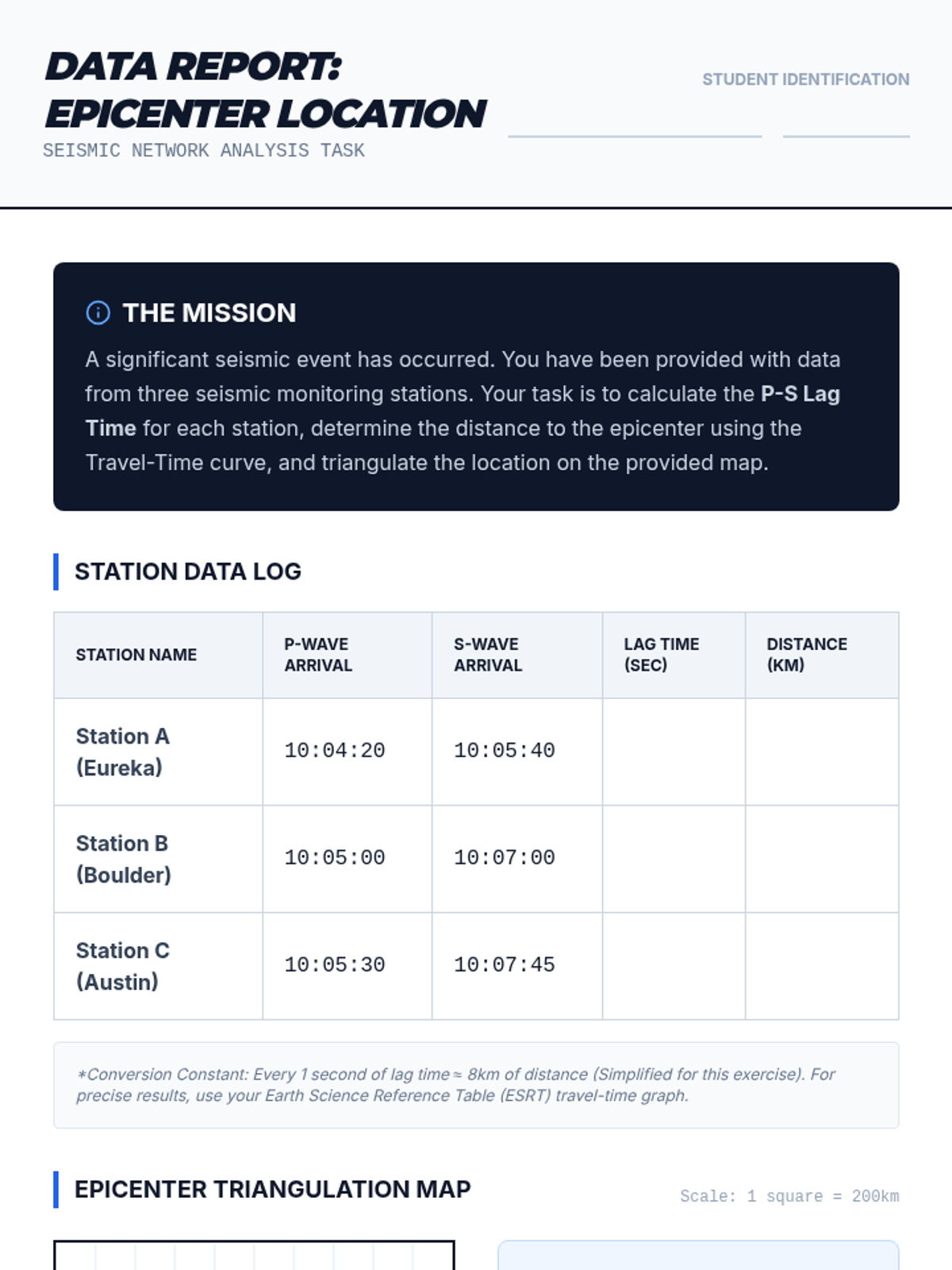 An advanced earth science sequence for 11th grade exploring the physics of earthquakes, wave behavior, and seismic engineering. Students progress from fault mechanics to triangulating epicenters and designing hazard mitigations.
