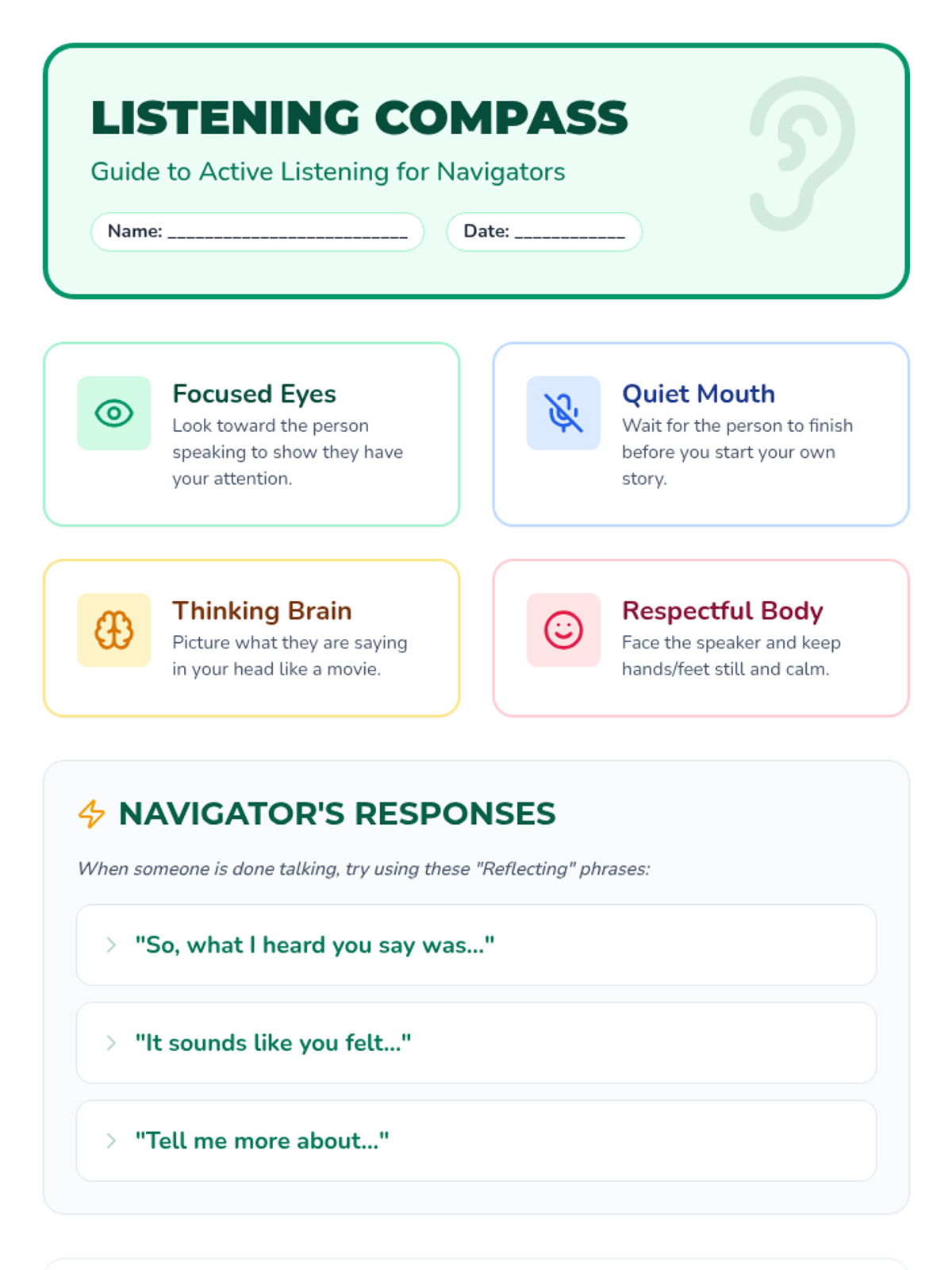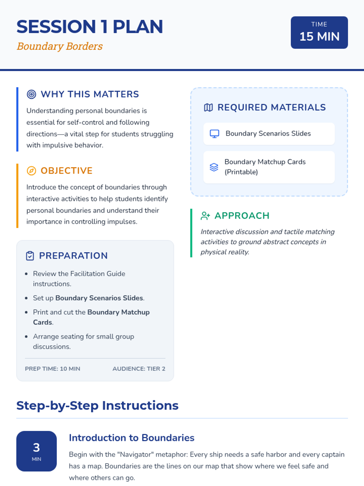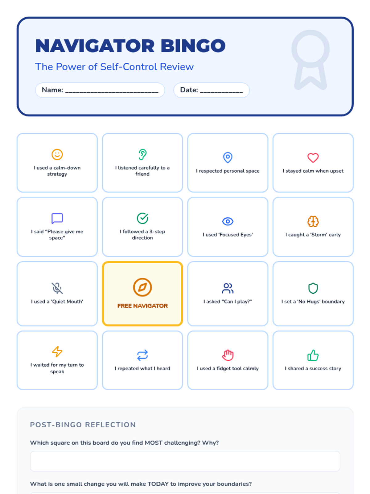 A five-part Tier 2 intervention series designed to help students master personal boundaries, active listening, and impulsive behavior management through a 'Navigators' theme. Students learn to steer their own actions and map out healthy social interactions.