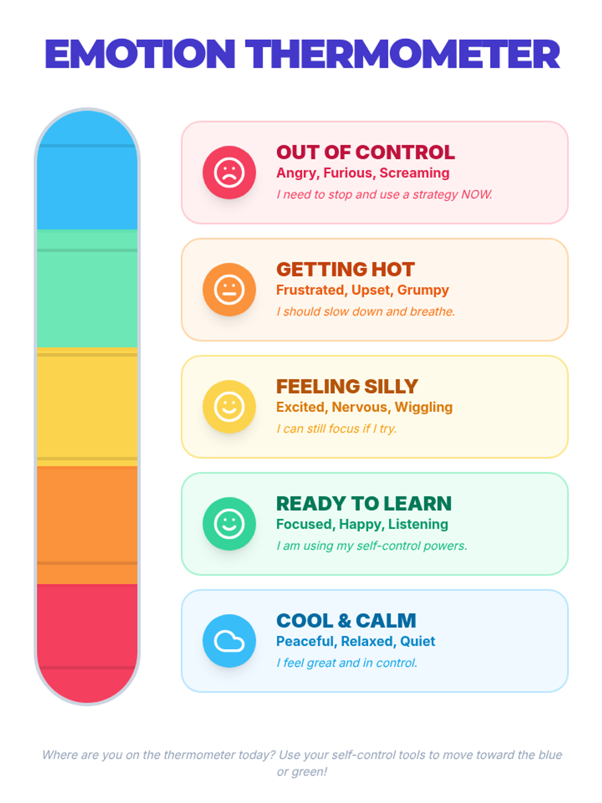 A comprehensive four-lesson series designed to help students identify their emotions, recognize physical triggers, build a coping toolbox, and align their reactions with the size of their problems.