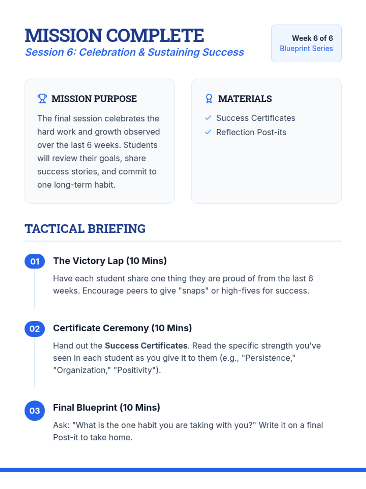 A series of high-impact 15-minute mini-lessons designed to help 6th graders navigate the transition to middle school, focusing on stress management, social boundaries, and professional communication with educators.