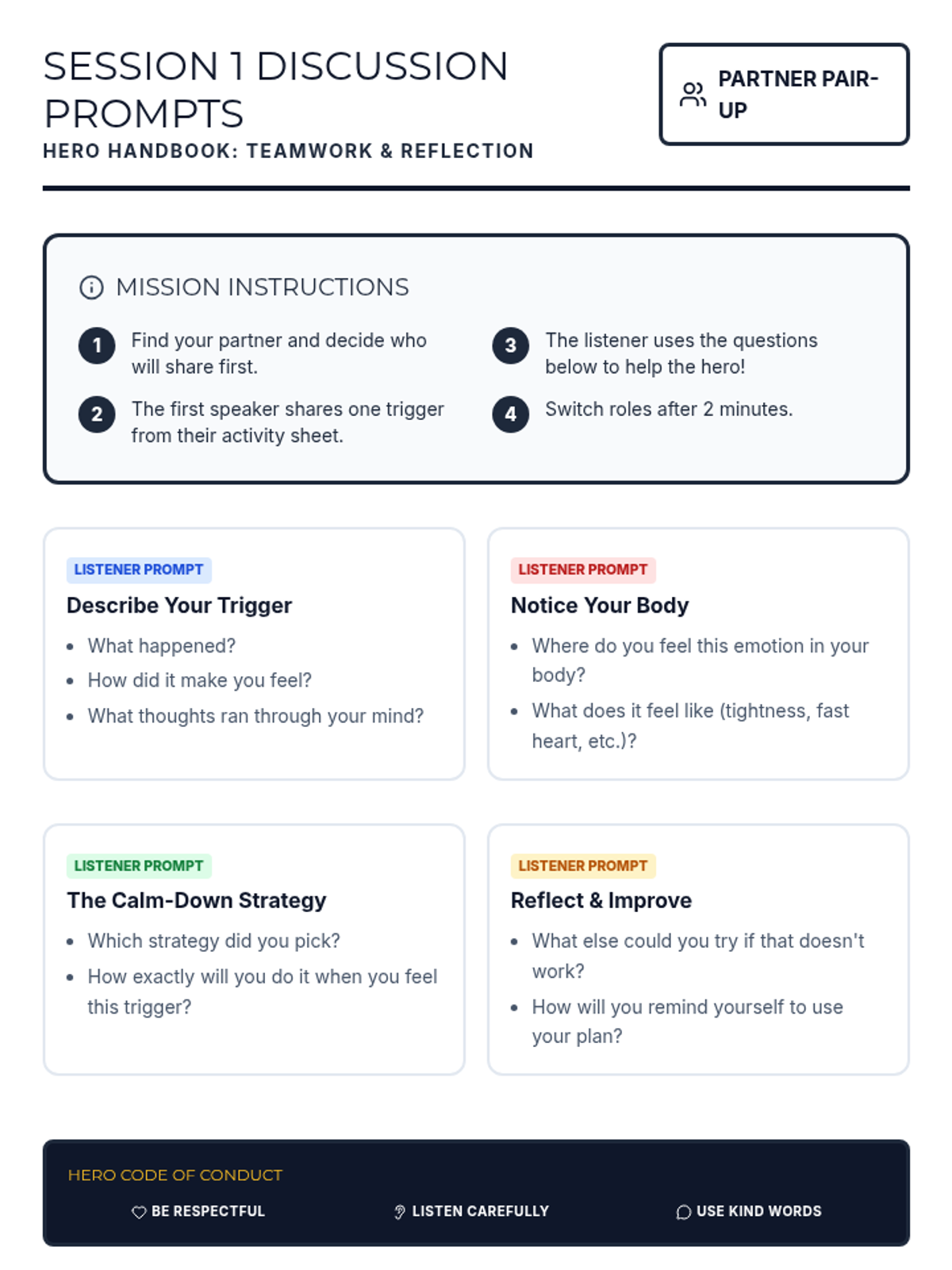A comprehensive small group counseling and character education series designed to build emotional intelligence, social skills, and conflict resolution through a 'Hero Training' lens.