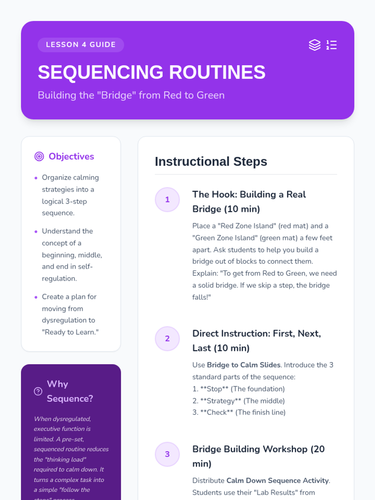 A multi-day social-emotional learning sequence that teaches students how to identify, manage, and communicate difficult emotions like anger and conflict using the metaphor of an 'Emotional Backpack'. Designed with high-visual support for EAL and neurodivergent learners.
