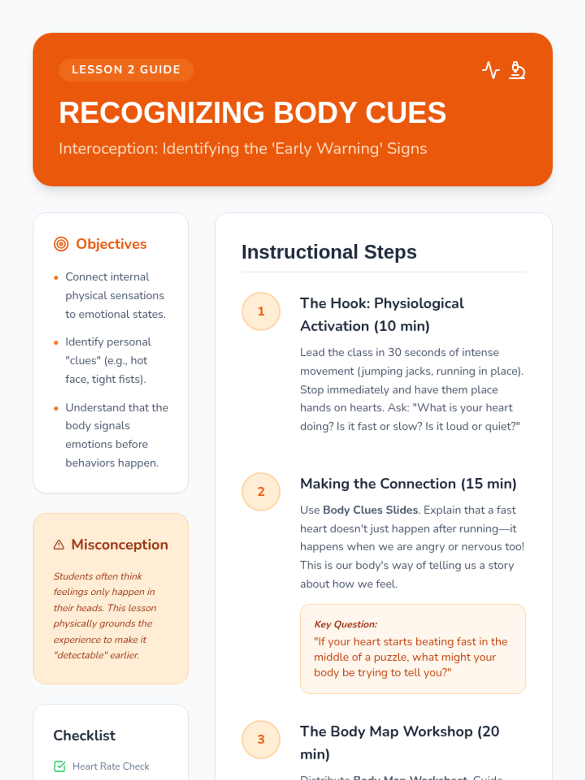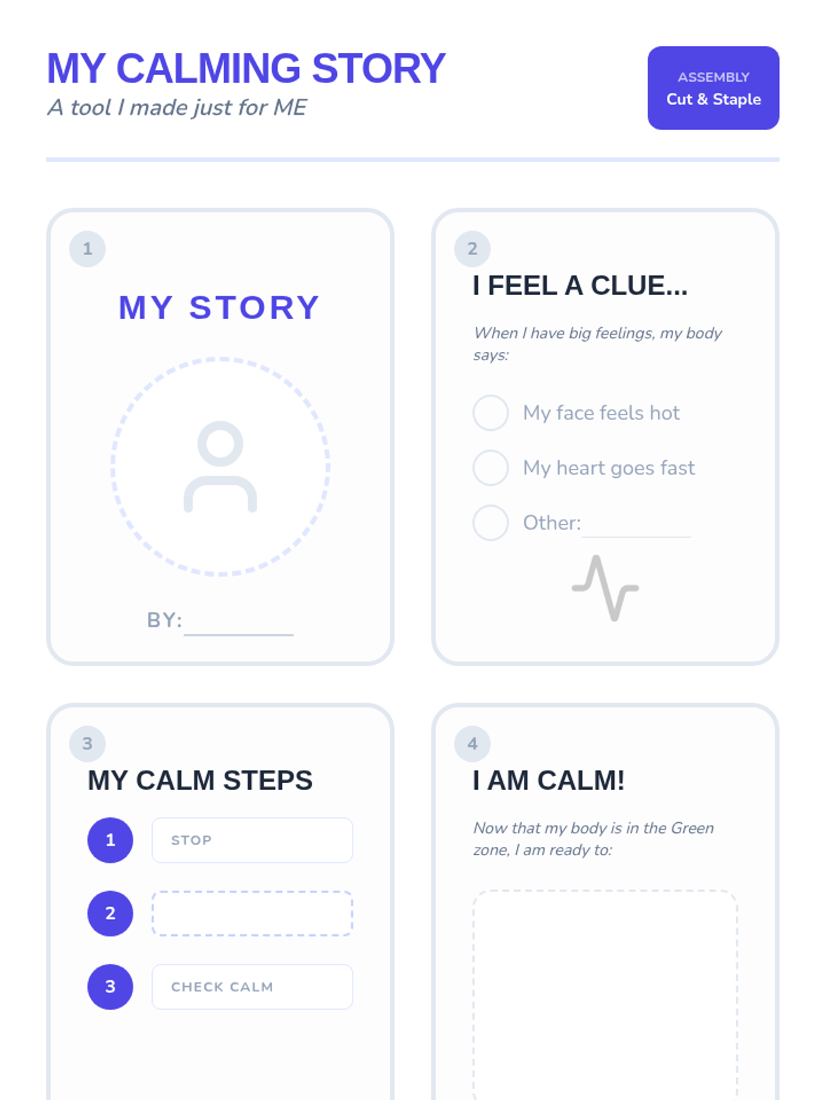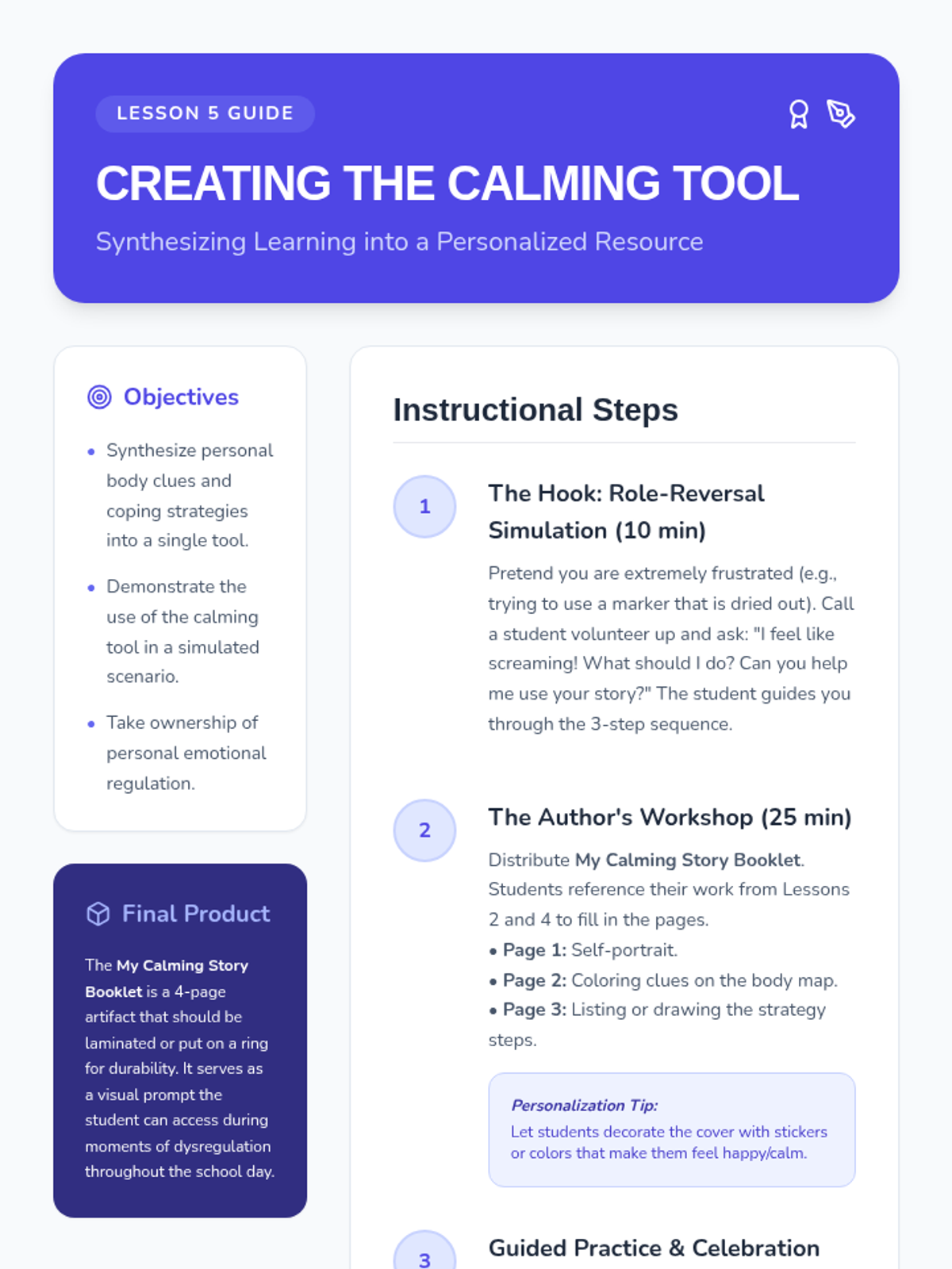 A Kindergarten sequence focused on empowering students to identify emotional states, recognize physical cues, and create a personalized calming narrative to support self-regulation and coping.