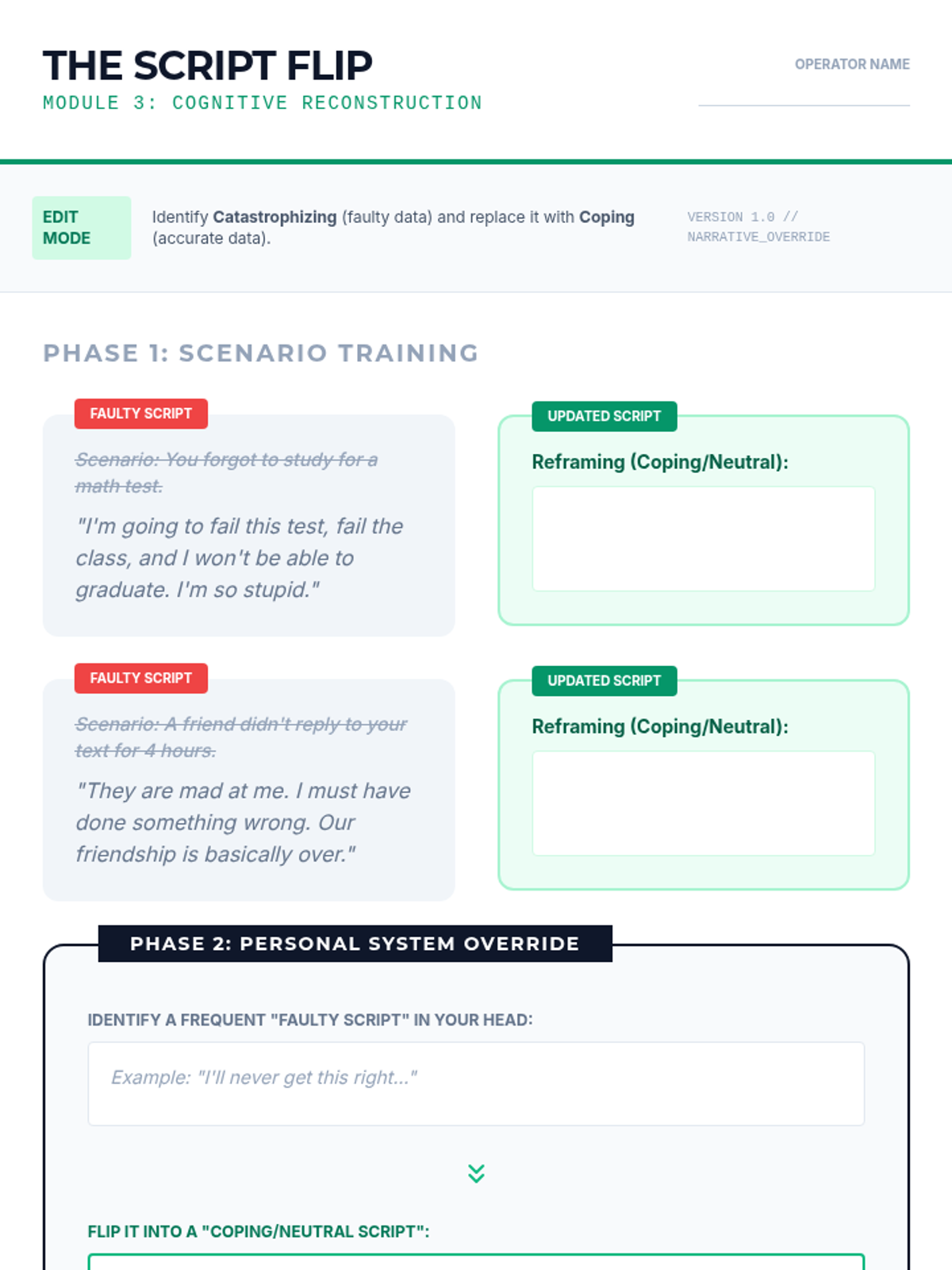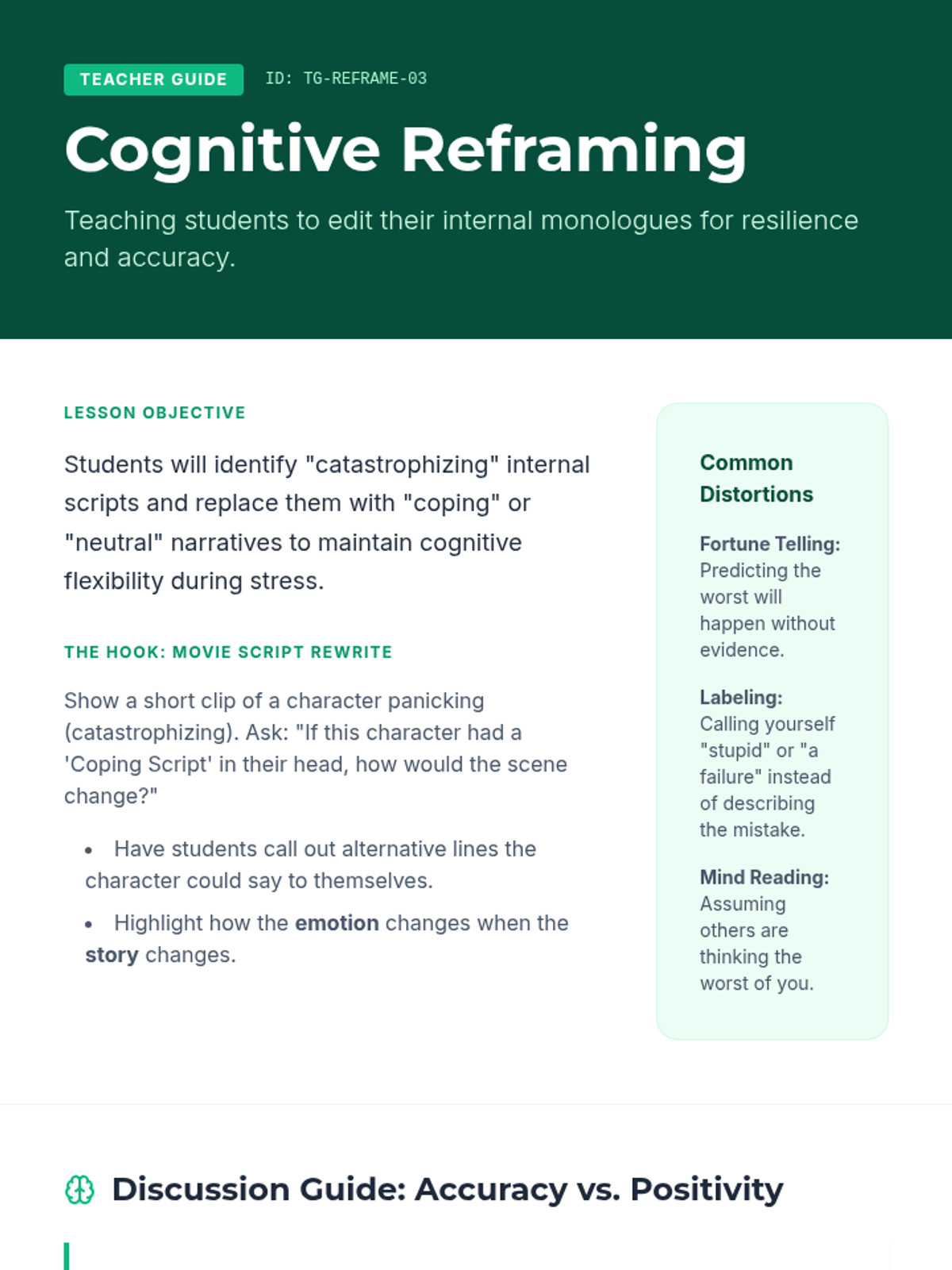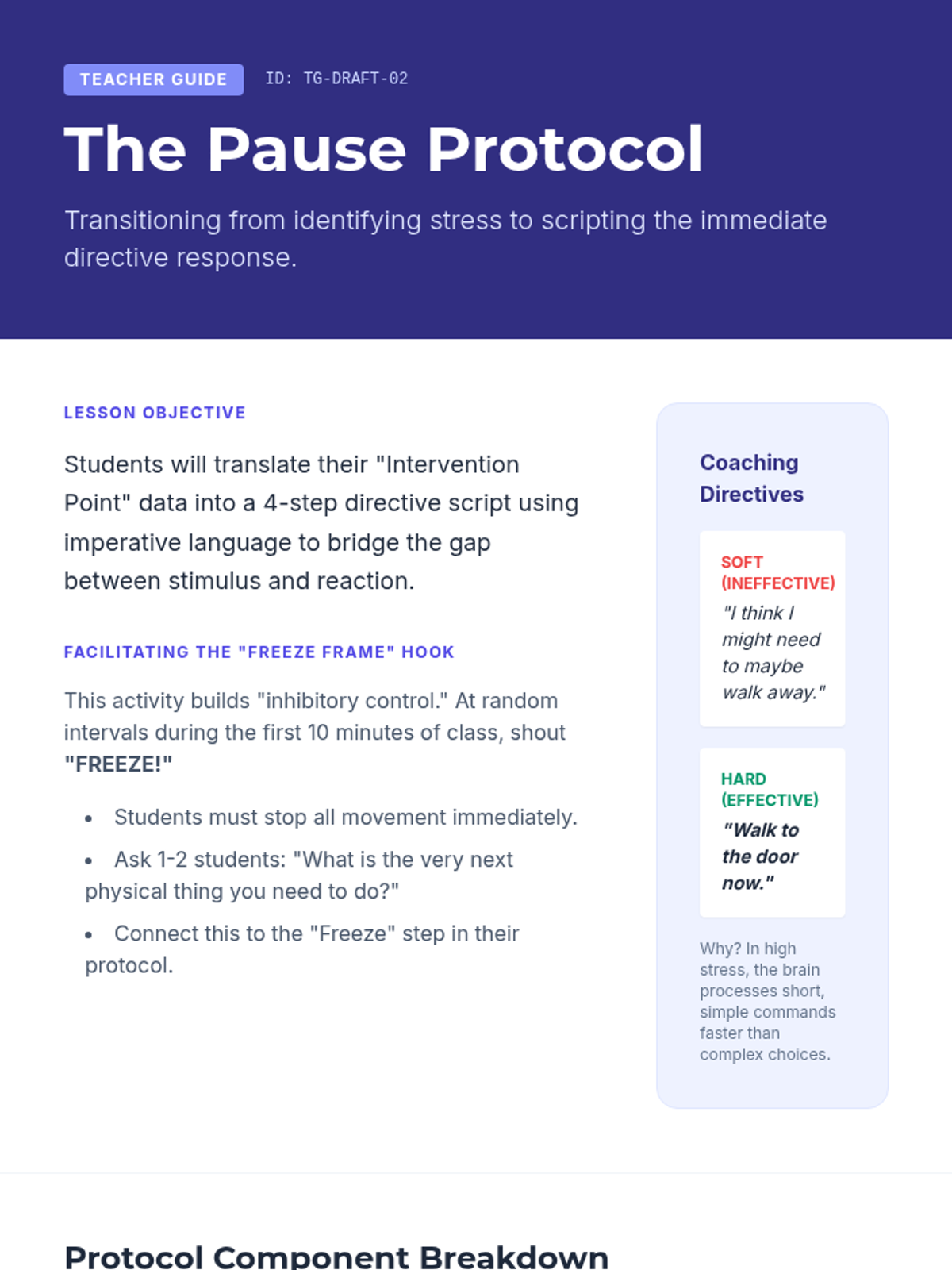 A comprehensive sequence for 12th-grade students to master emotional self-regulation through the creation of personalized social stories and 'if/then' narratives. Students progress from identifying physiological triggers to designing and simulating visual regulation protocols.