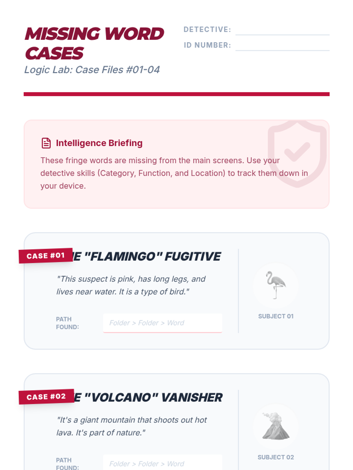 A collection of fast-paced, high-engagement speech-language therapy lessons for middle schoolers. Each mission targets Tier 2 academic vocabulary and multiple meaning words, integrated with executive function 'brain hacks' to improve impulse control and working memory in academic settings.