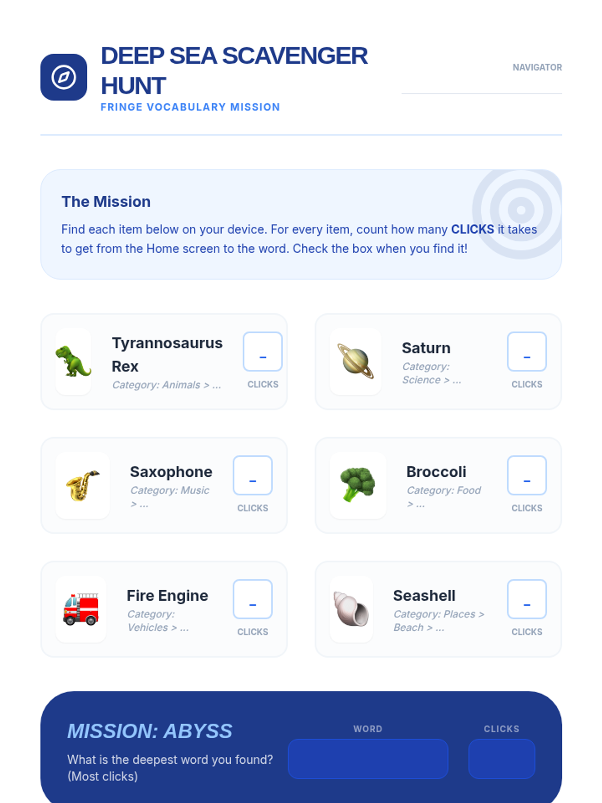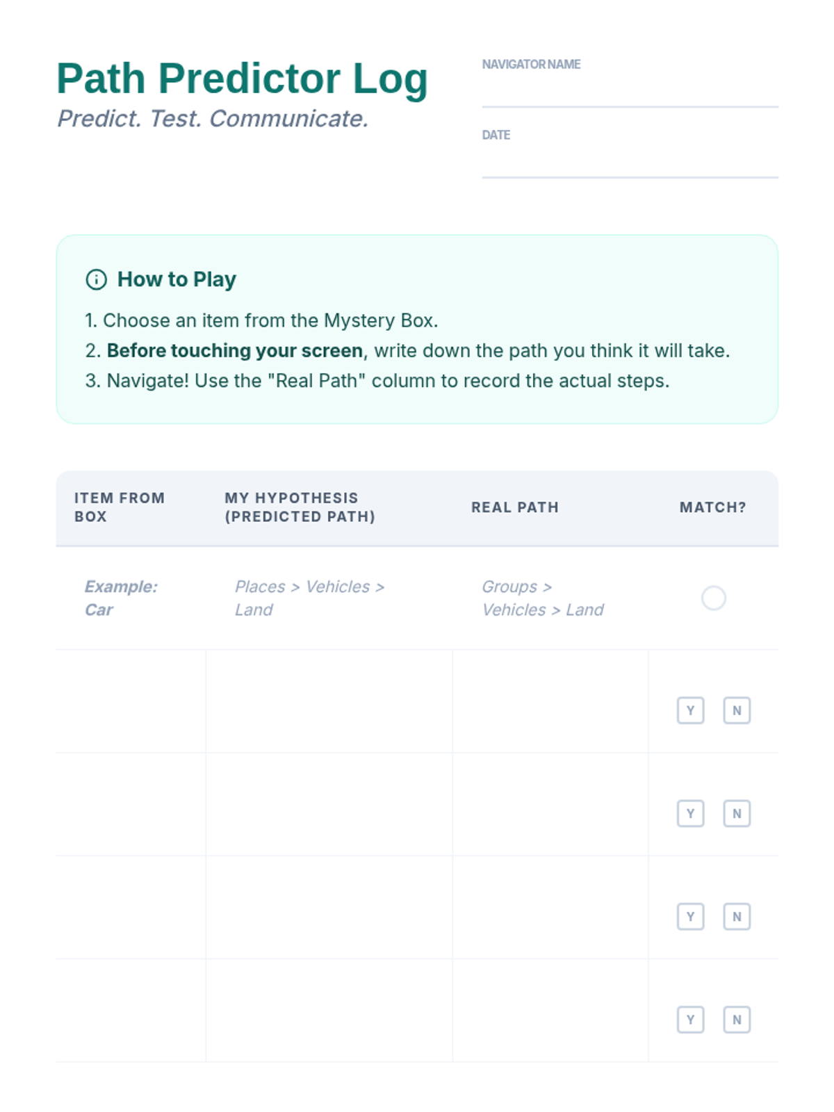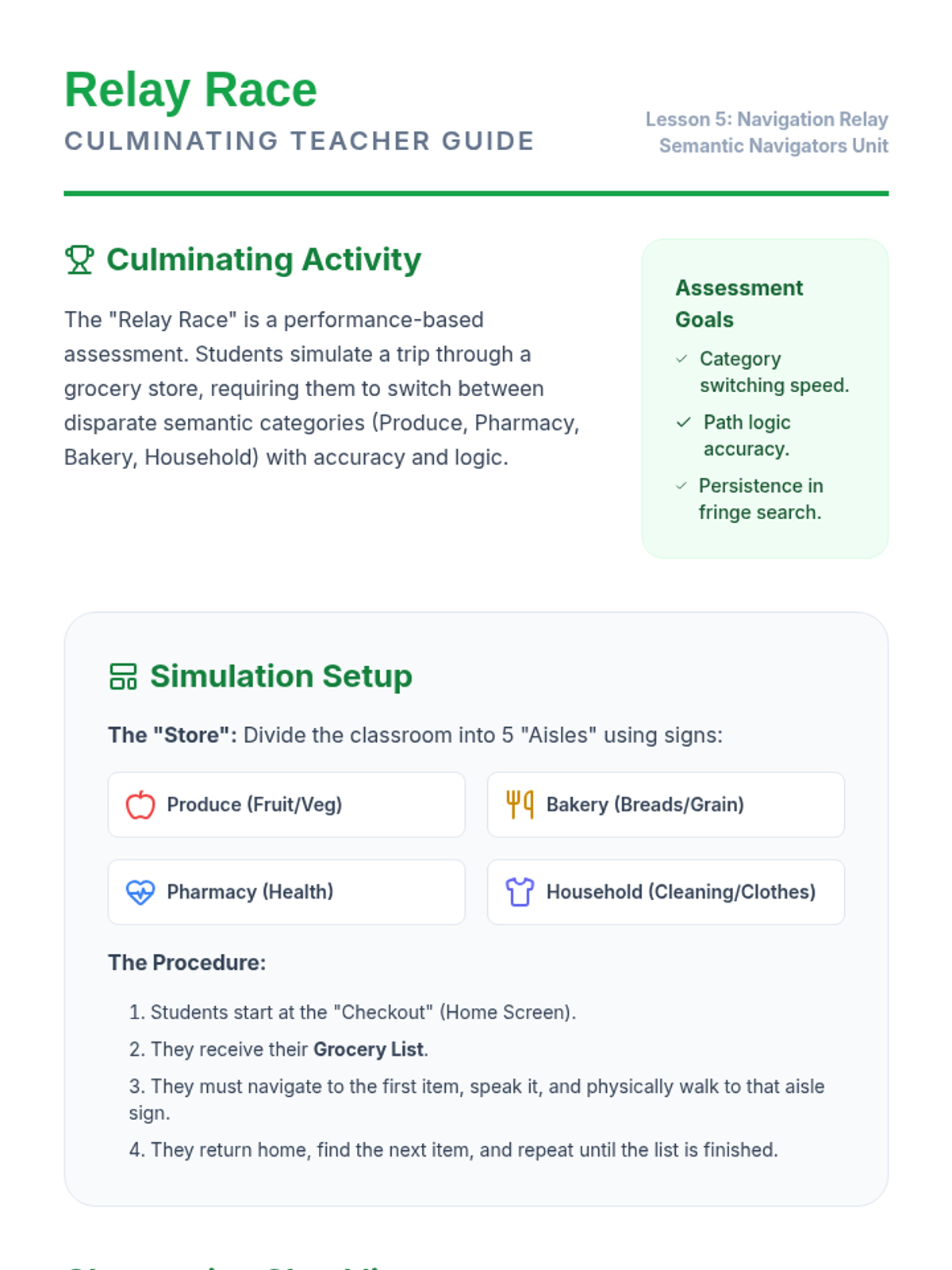 A comprehensive unit for 8th-grade students focusing on the logical organization of semantic hierarchies within AAC software. Students learn to map systems, predict sub-folder locations, find fringe vocabulary, and manage cross-categorization to improve communication efficiency and speed.