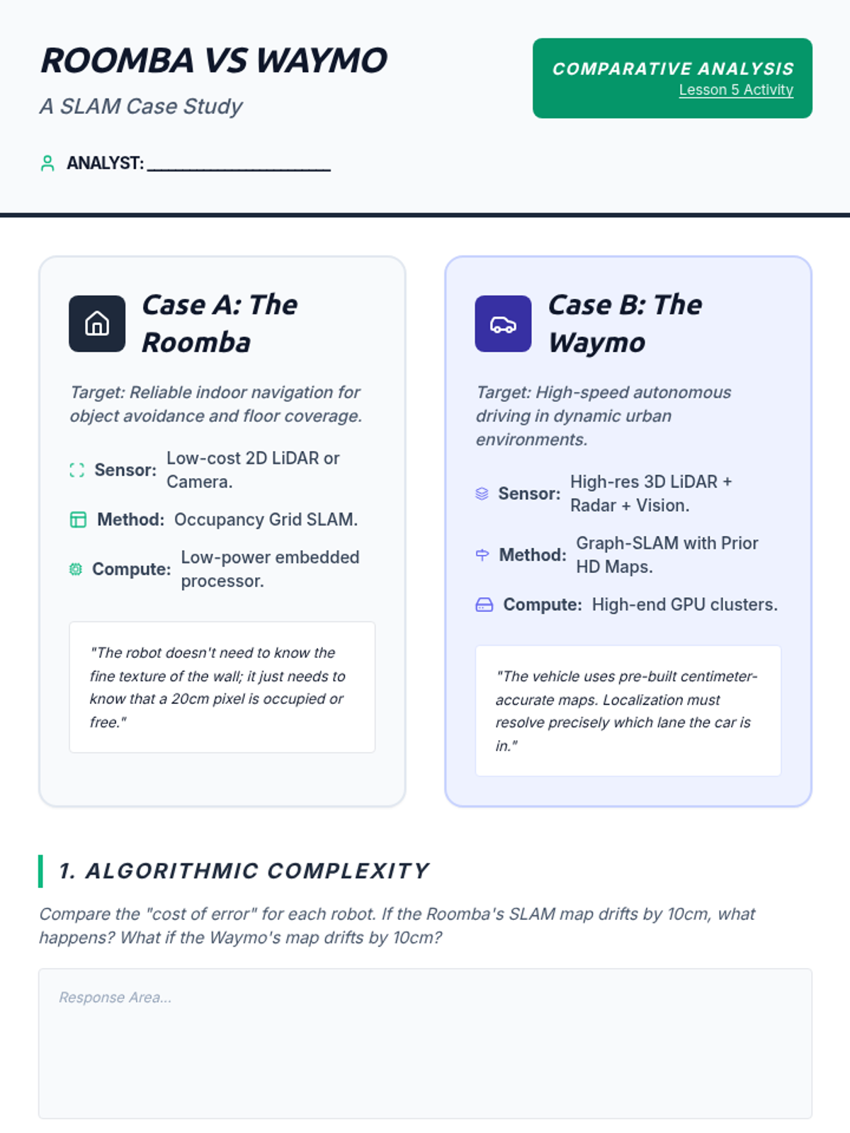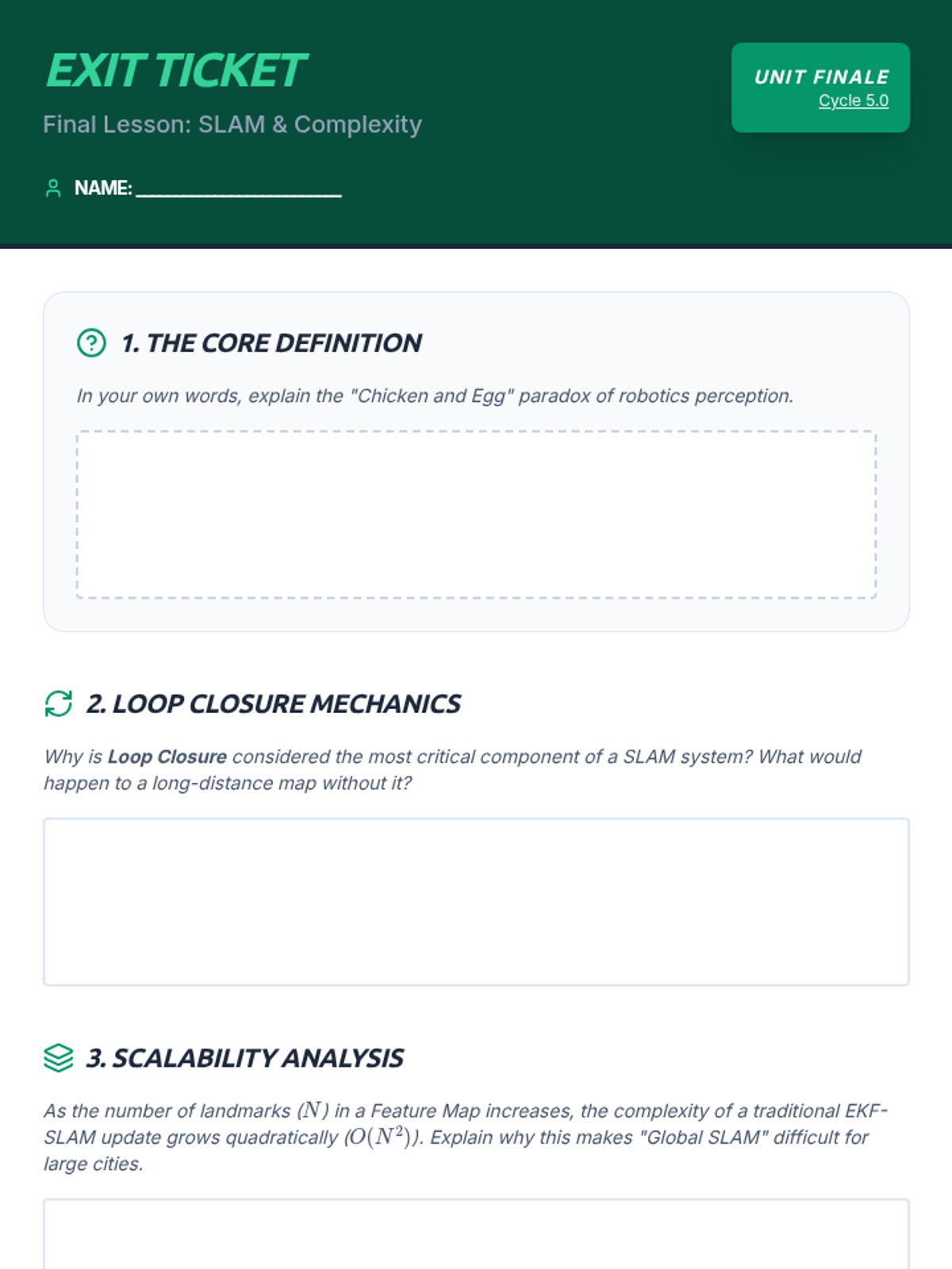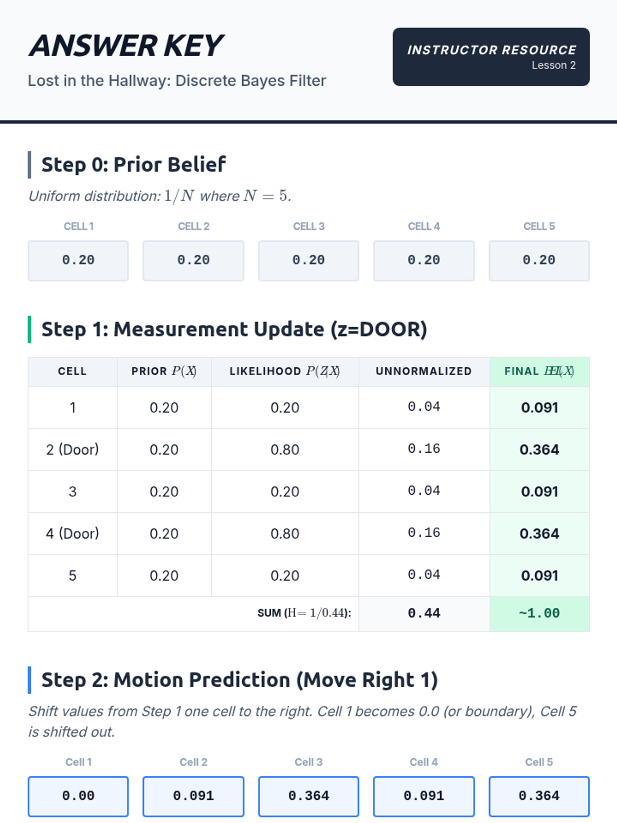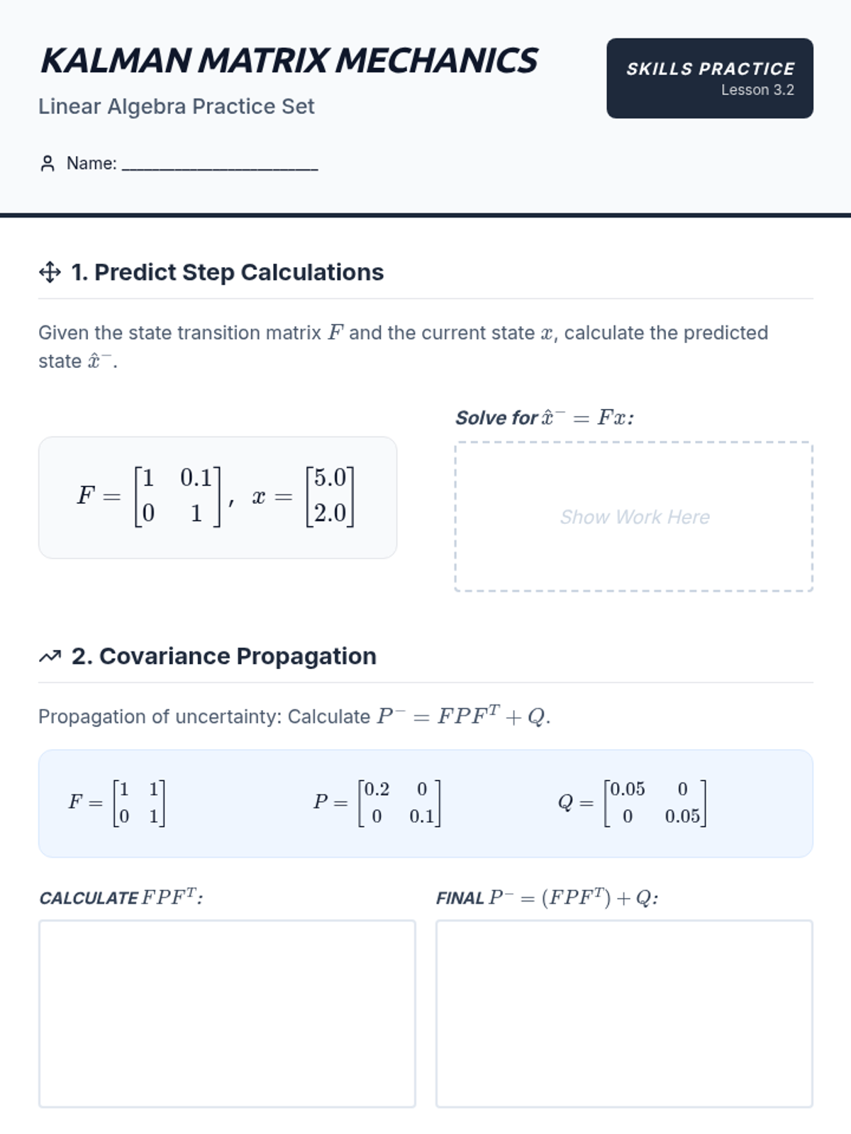 A comprehensive sequence for undergraduate engineering students on the perception layer of robotics. It covers sensor noise modeling, Bayesian filters, Kalman filters (KF and EKF), and the fundamentals of SLAM, focusing on how robots interpret noisy real-world data to build a reliable world model.