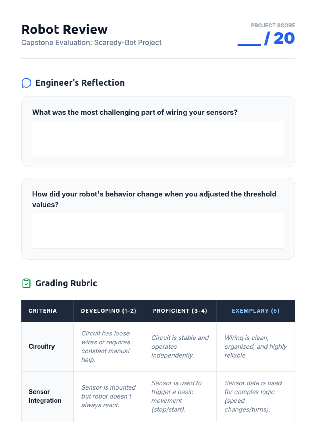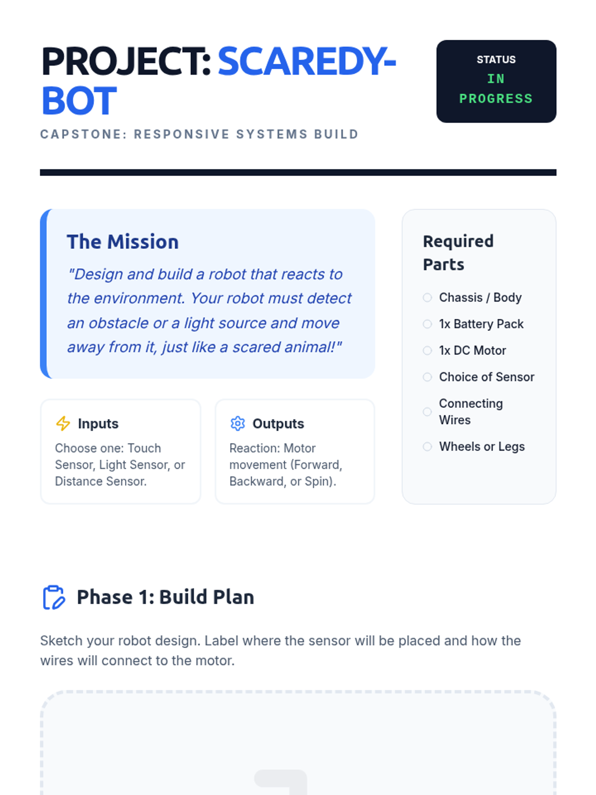 A comprehensive 5th-grade engineering unit focused on the 'nervous system' of robotics. Students progress from basic circuitry to advanced sensor integration and data processing, culminating in the creation of a responsive 'scaredy-bot' that reacts to its environment.