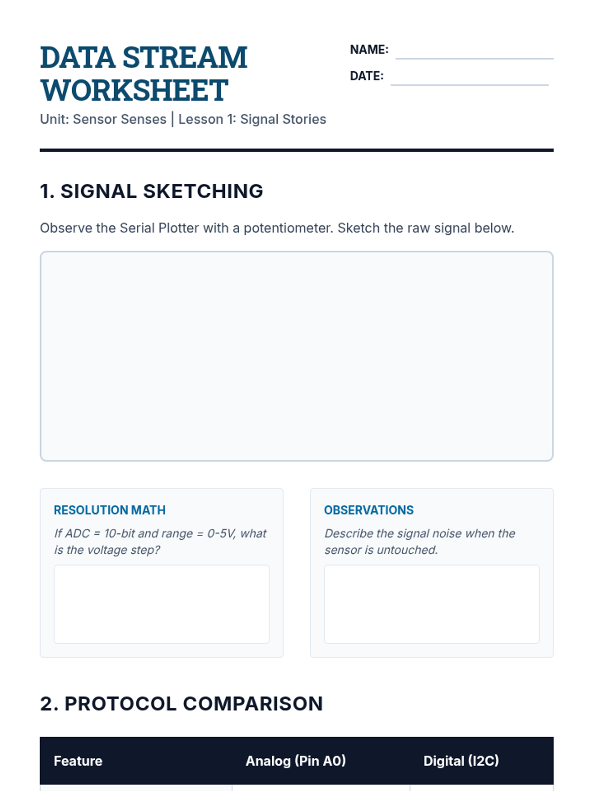 A comprehensive sequence for 11th-grade robotics students exploring how machines perceive the world. Students move from basic circuit signal visualization to advanced sensor fusion and computer vision, mastering the interpretation of noisy electronic data.