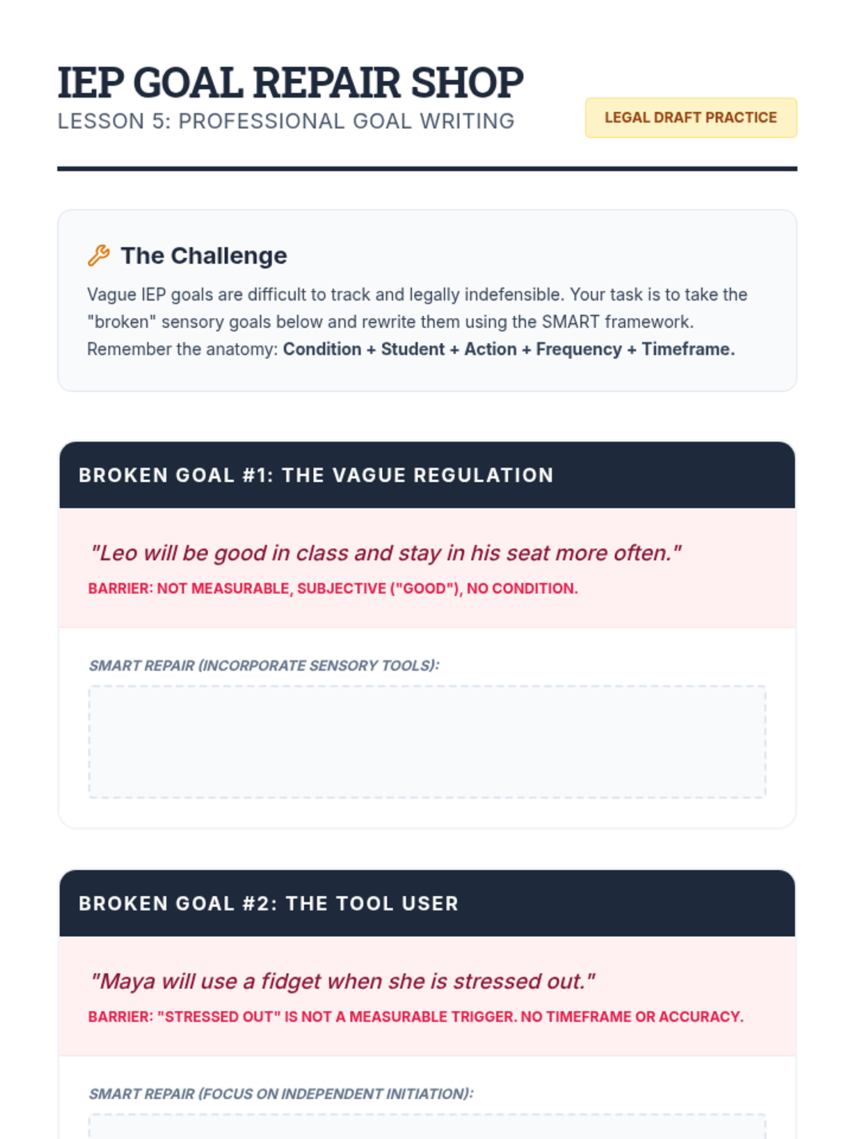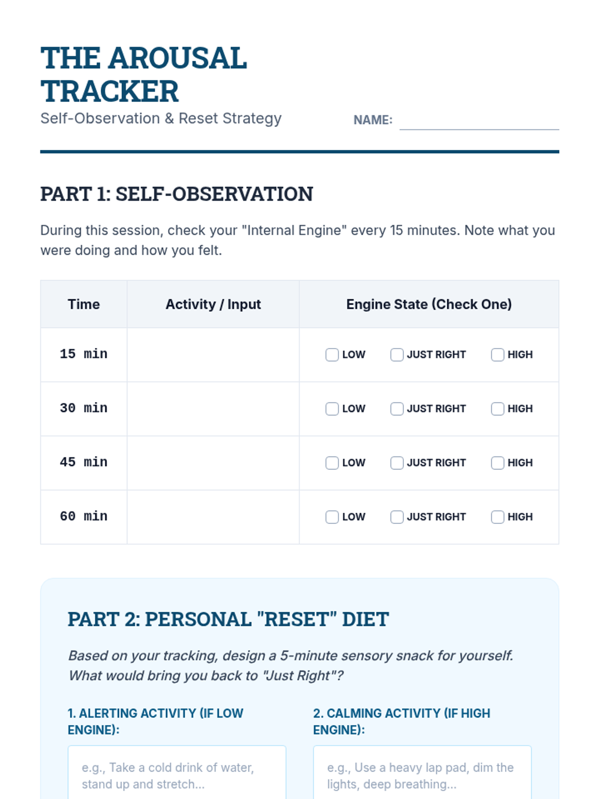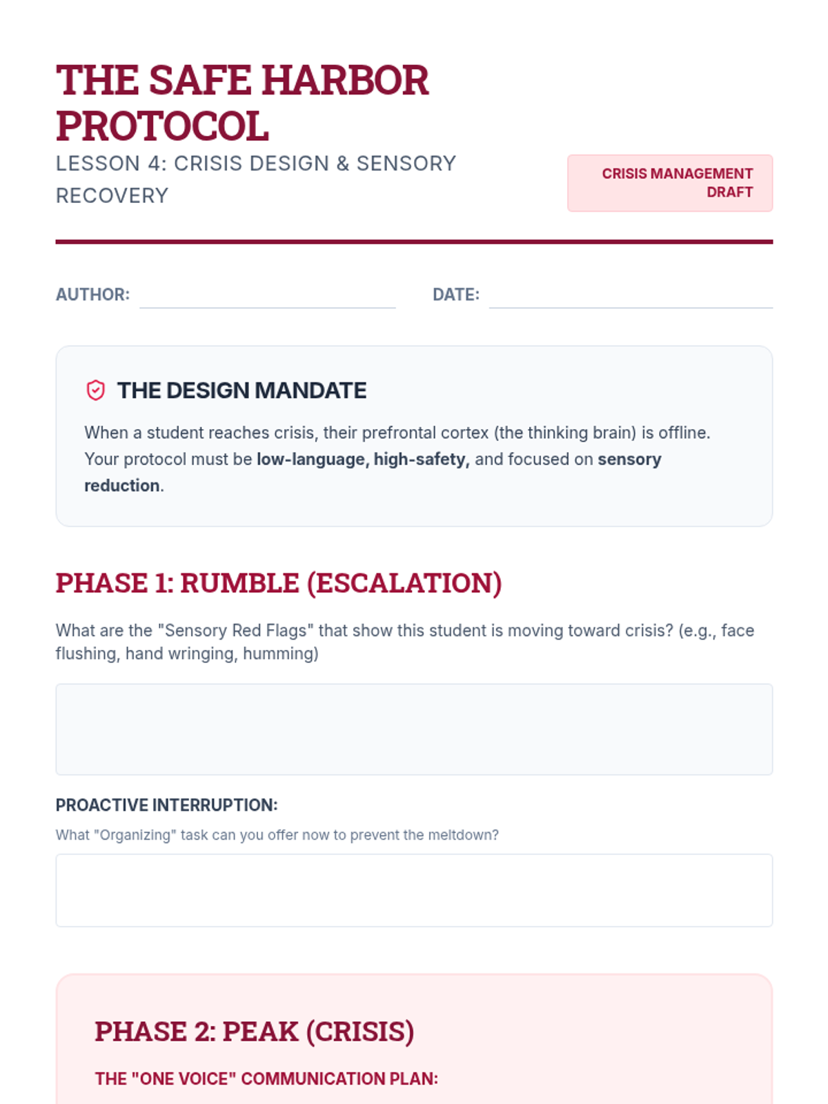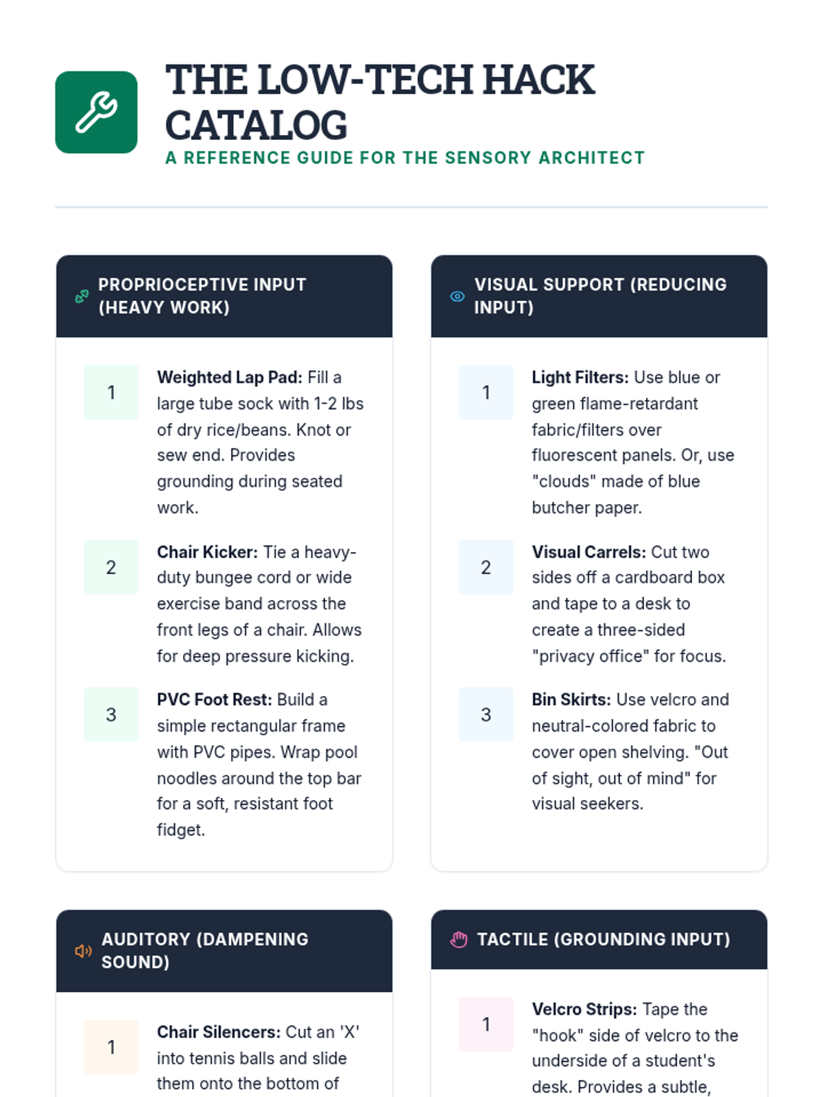 This application-focused sequence challenges undergraduate students to translate sensory profiles into concrete environmental modifications and regulation strategies. Using a project-based approach, learners design sensory-friendly classrooms and develop personalized 'sensory diets' or regulation plans to bridge assessment data with daily classroom practice.