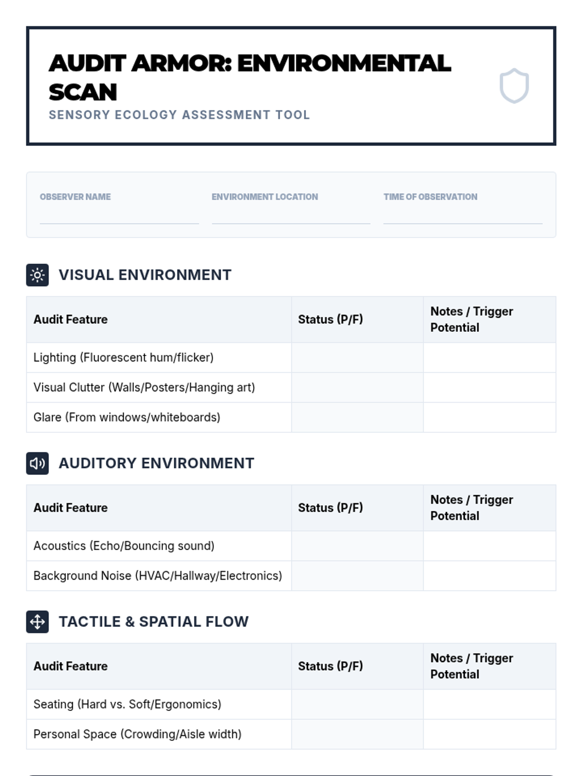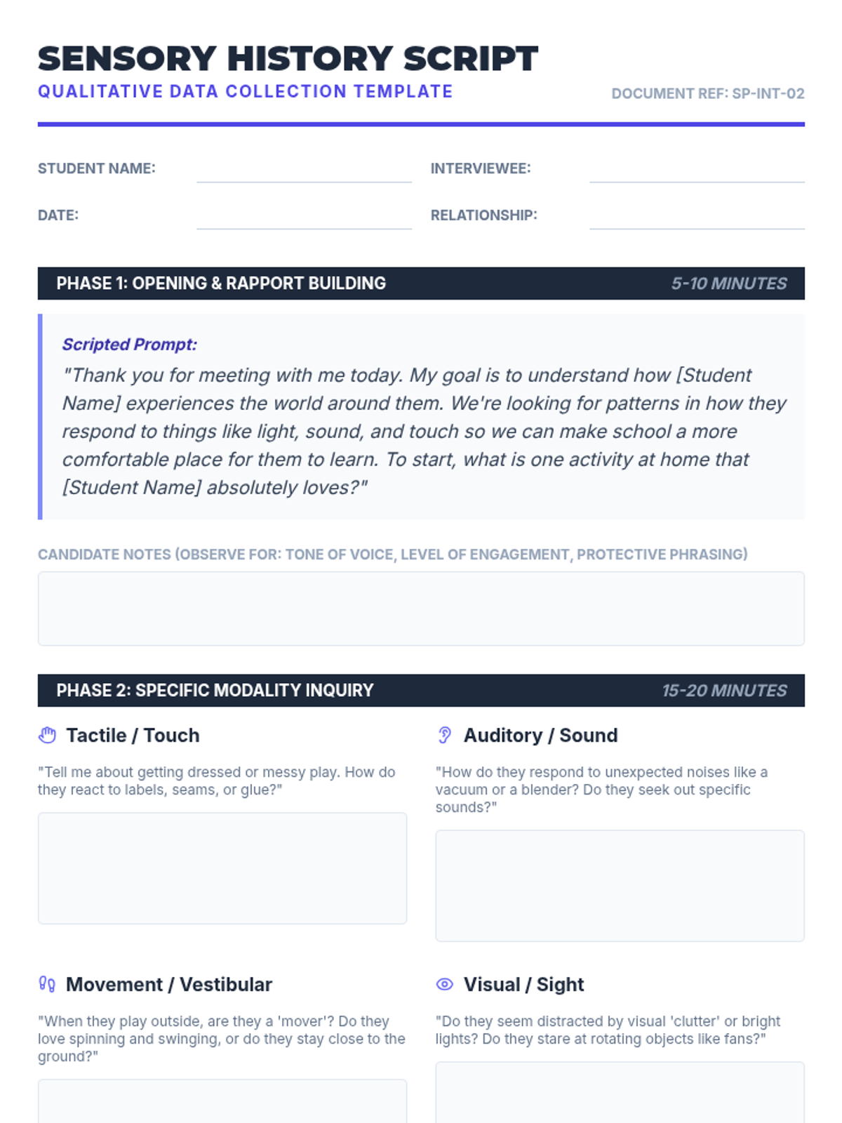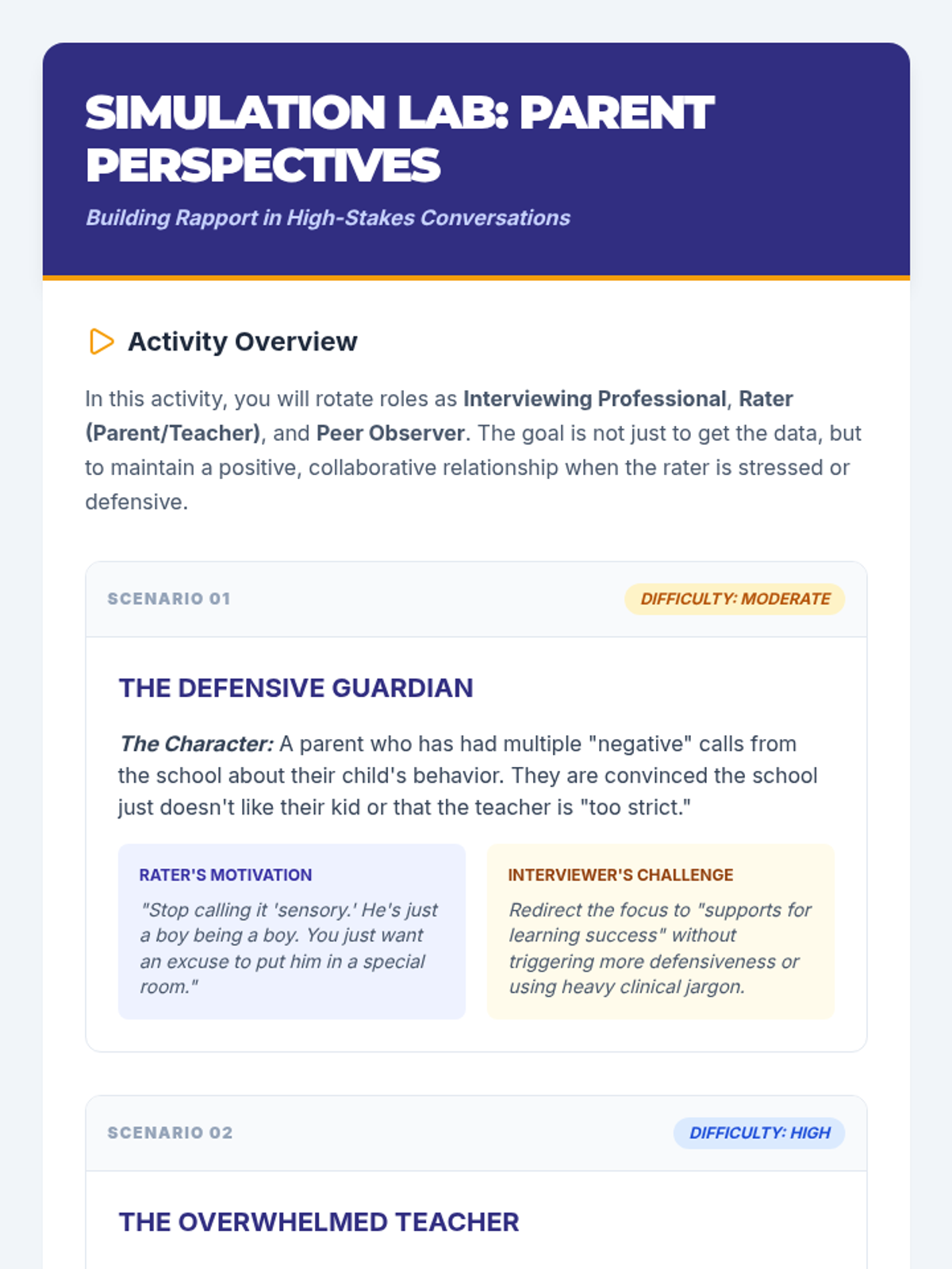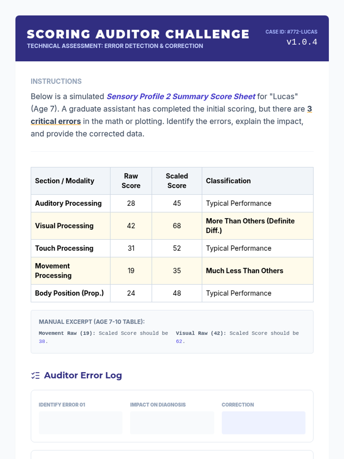 A professional workshop-style sequence for undergraduate students focusing on the selection, administration, scoring, and interpretation of sensory assessment tools in special education. Students progress from evaluating standardized instruments to synthesizing data into actionable sensory profiles.