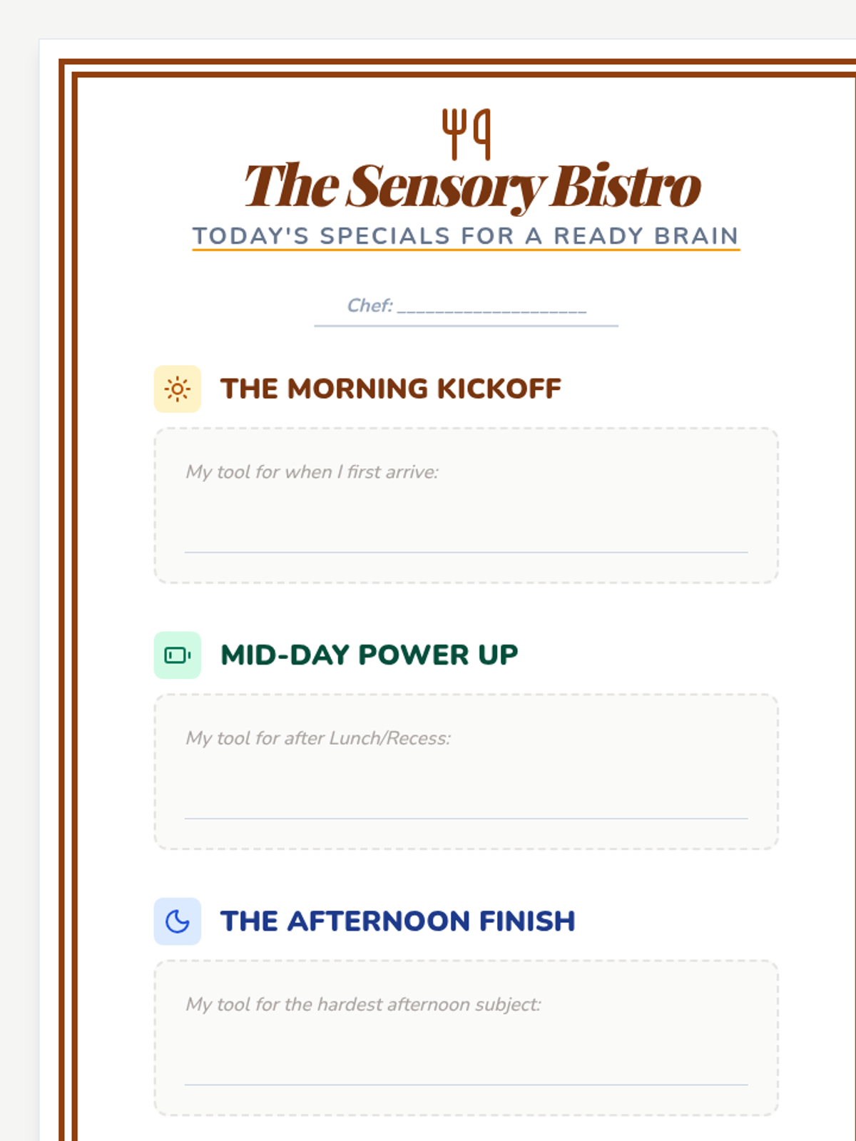 A project-based sequence for 3rd-grade students to design and implement a personalized sensory diet. Students analyze their school day, match sensory strategies to specific needs, and create a visual 'Sensory Menu' for independent self-regulation.