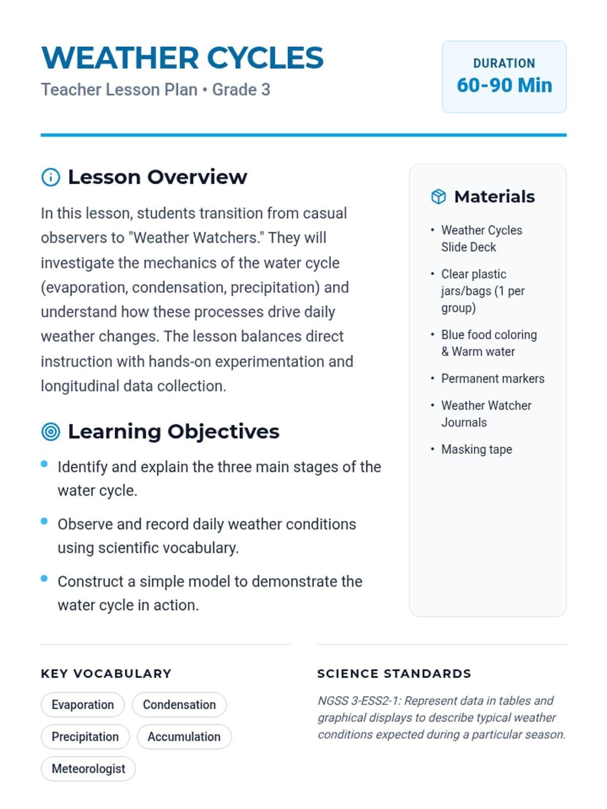 A comprehensive unit for 3rd graders to explore meteorology, seasonal shifts, and the water cycle through hands-on observation and scientific inquiry.