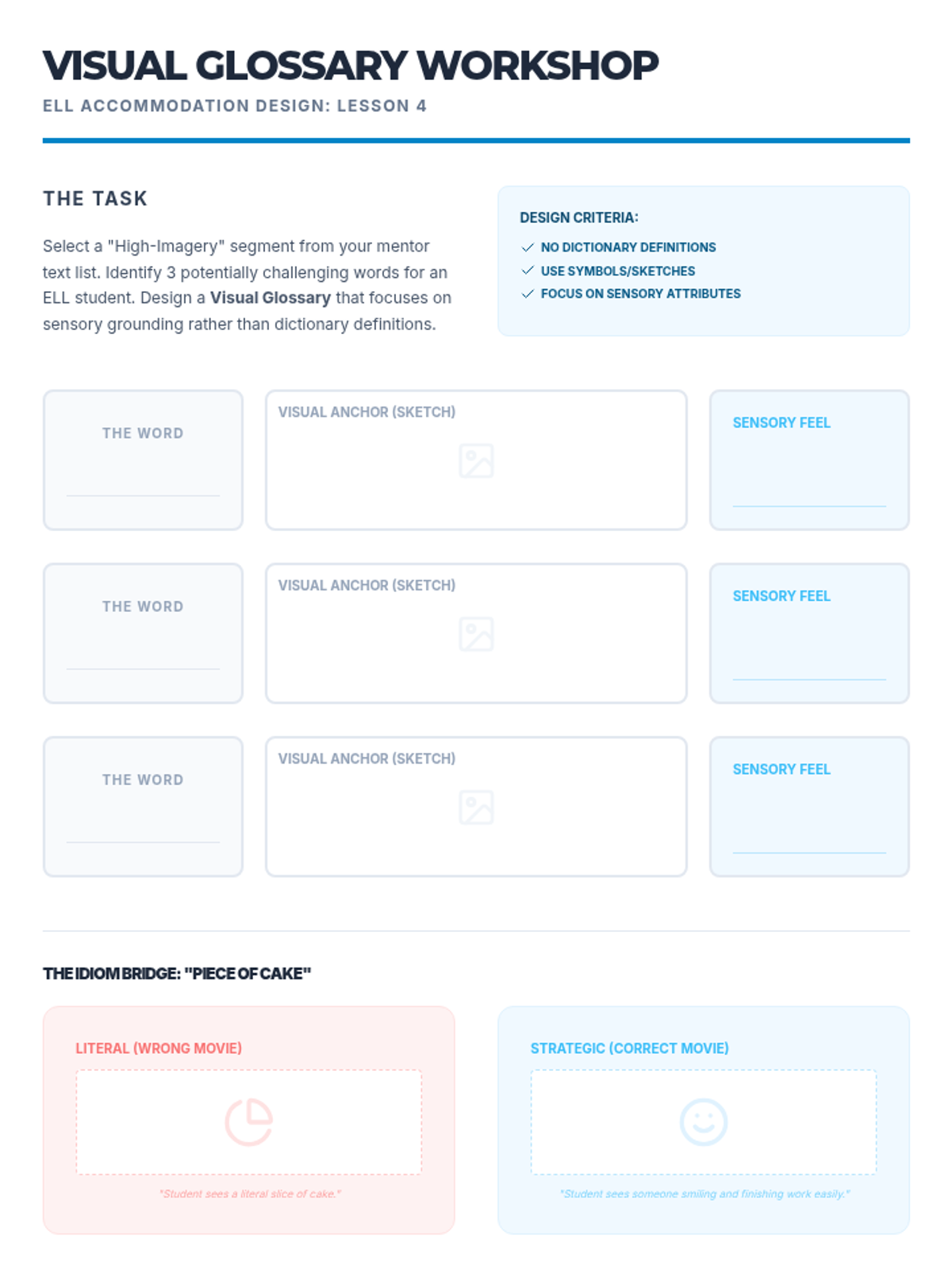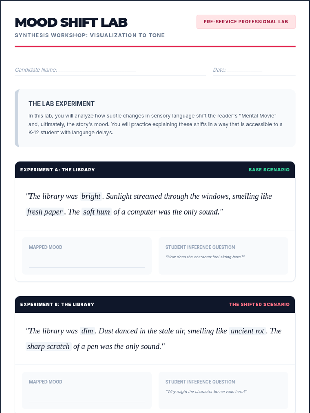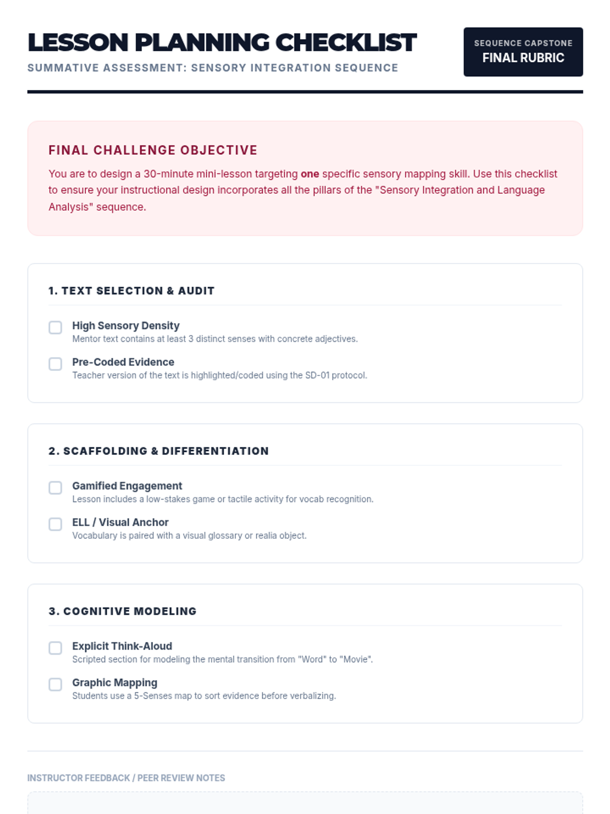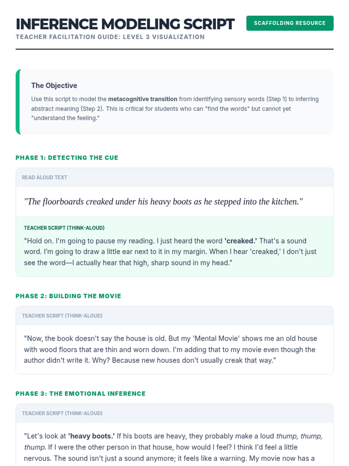 A comprehensive sequence for pre-service teachers on teaching visualization strategies through sensory mapping. This sequence covers text selection, instructional gamification, inference-building, ELL support, and higher-order comprehension.