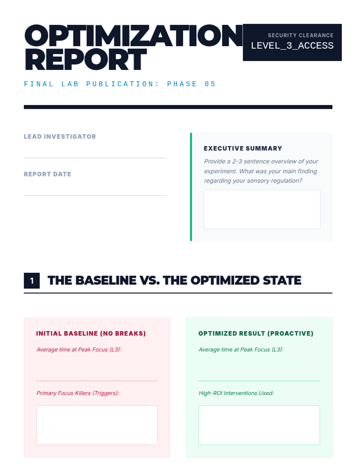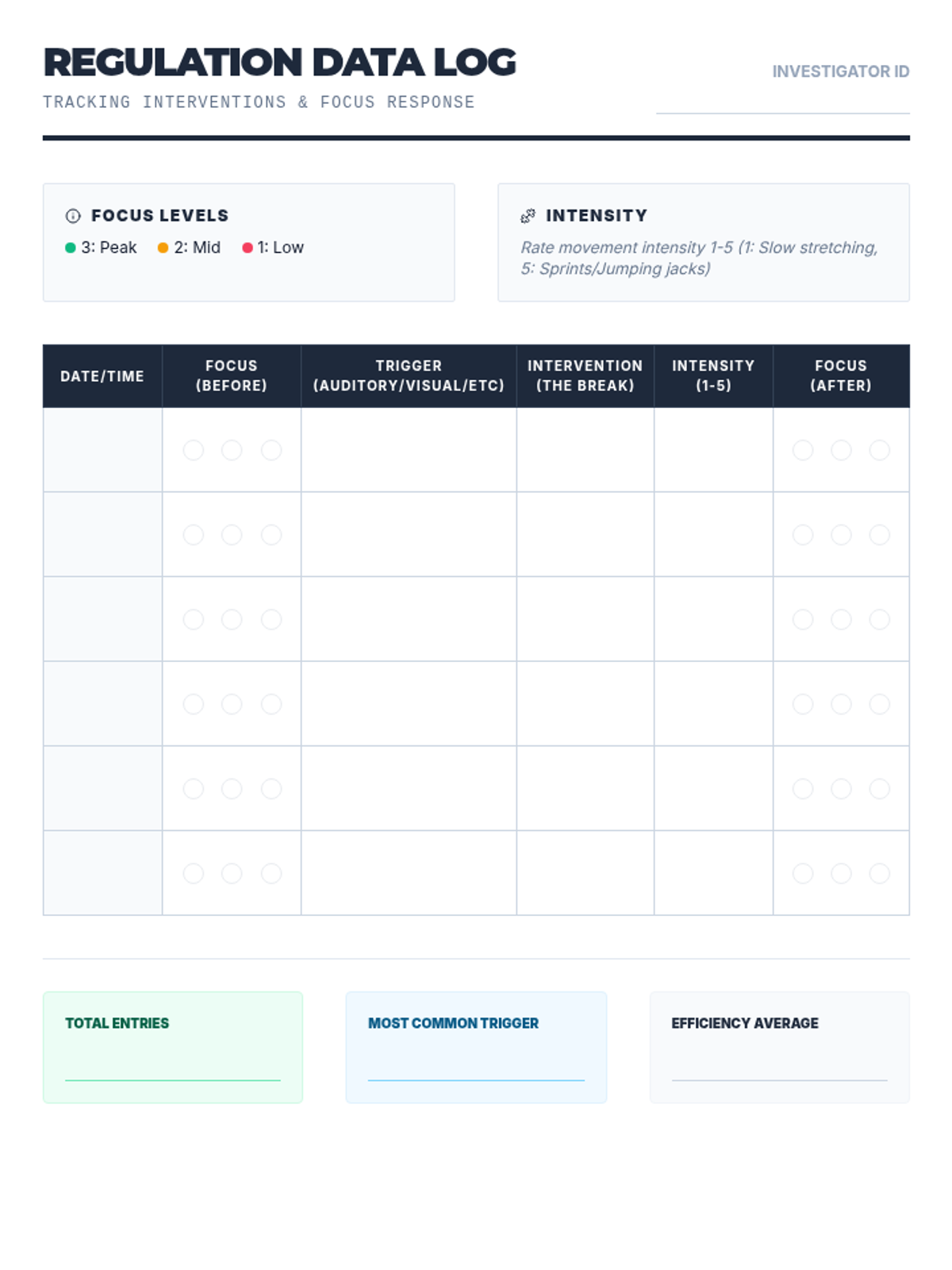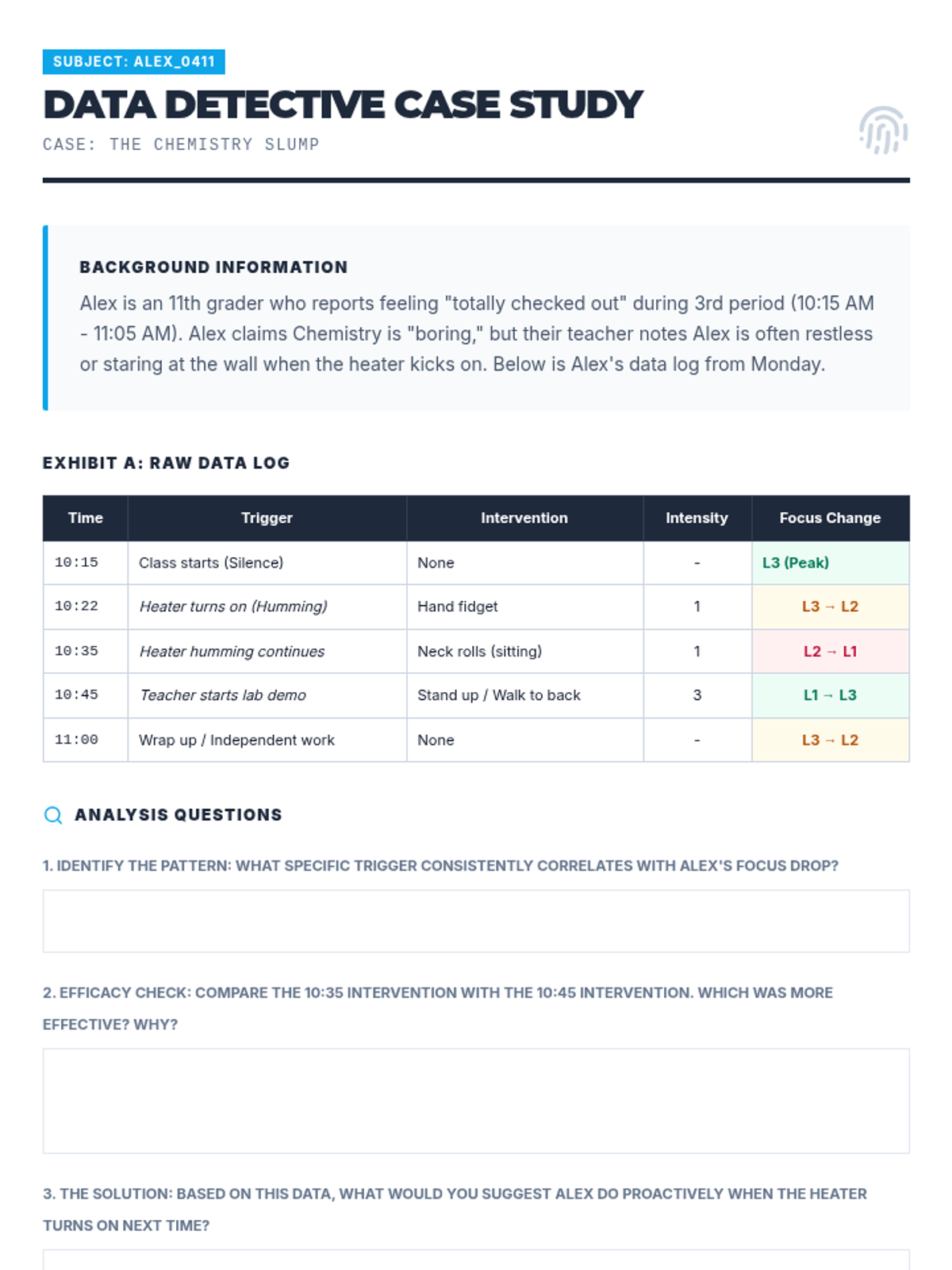 An analytical sequence for 11th-grade students focusing on data-driven self-management. Students treat their self-regulation as a scientific experiment, using logs to track triggers and measure the efficacy of movement interventions to move from reactive coping to proactive scheduling.