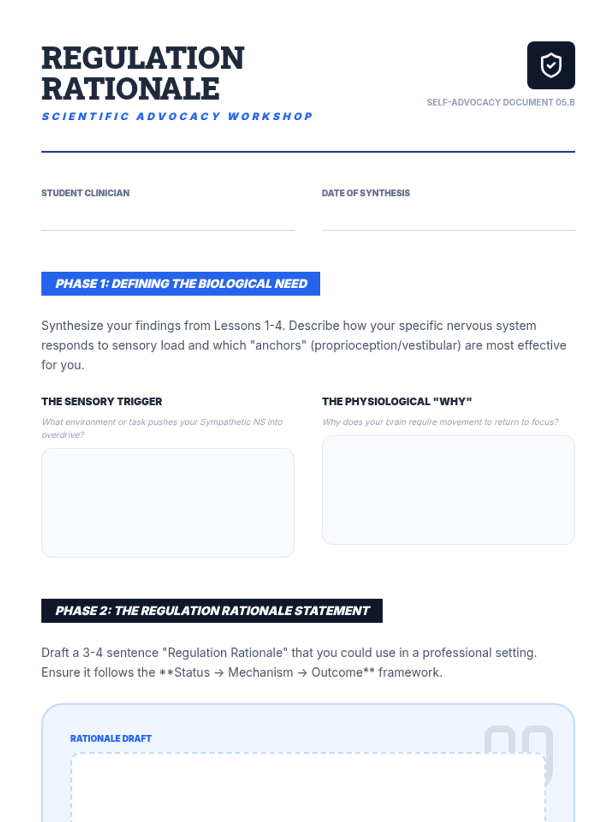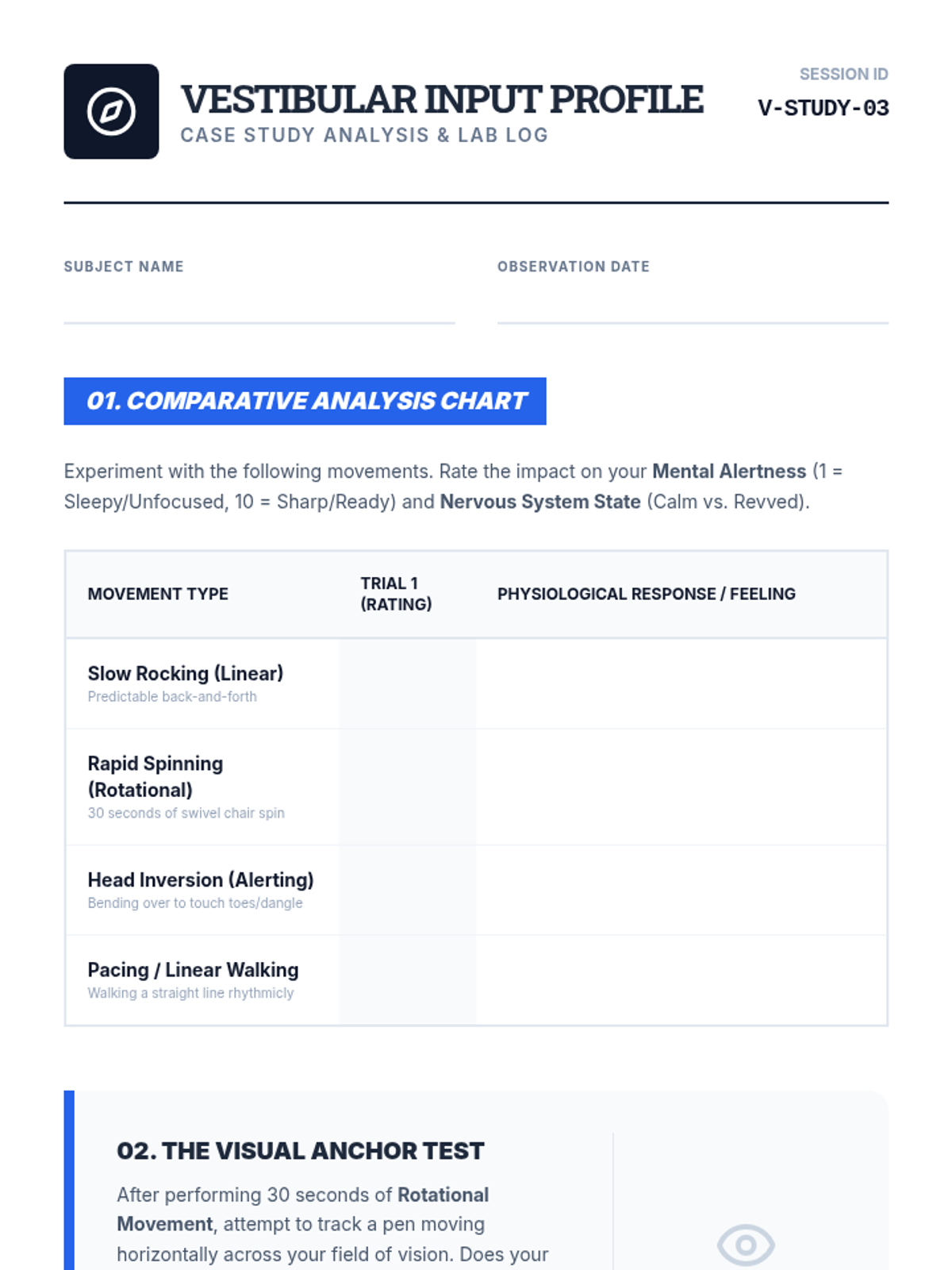 A 12th-grade sequence exploring the physiological basis of sensory regulation. Students investigate the nervous system, proprioception, and vestibular input to understand how movement breaks optimize cognitive performance and develop self-advocacy skills for adulthood.