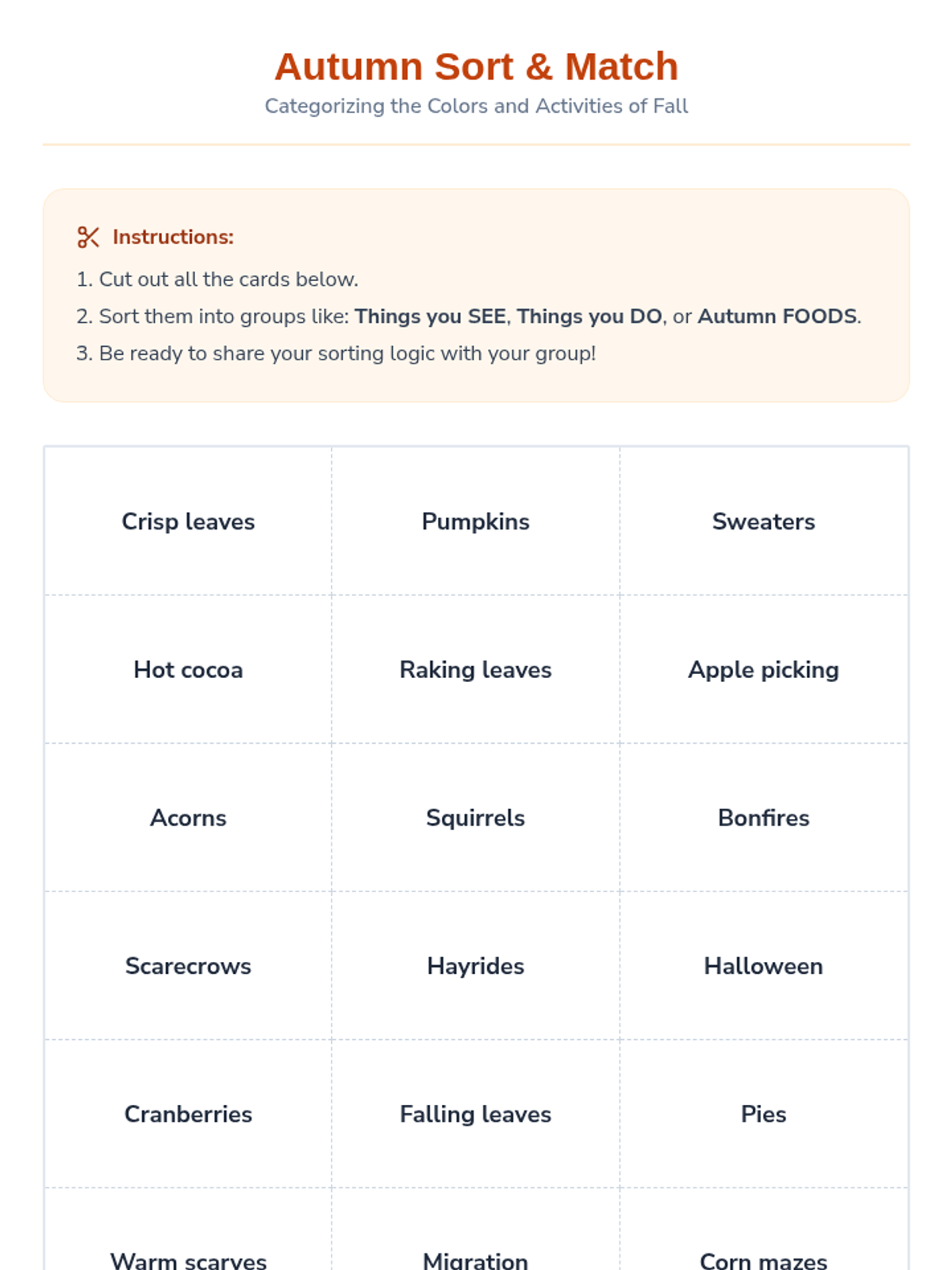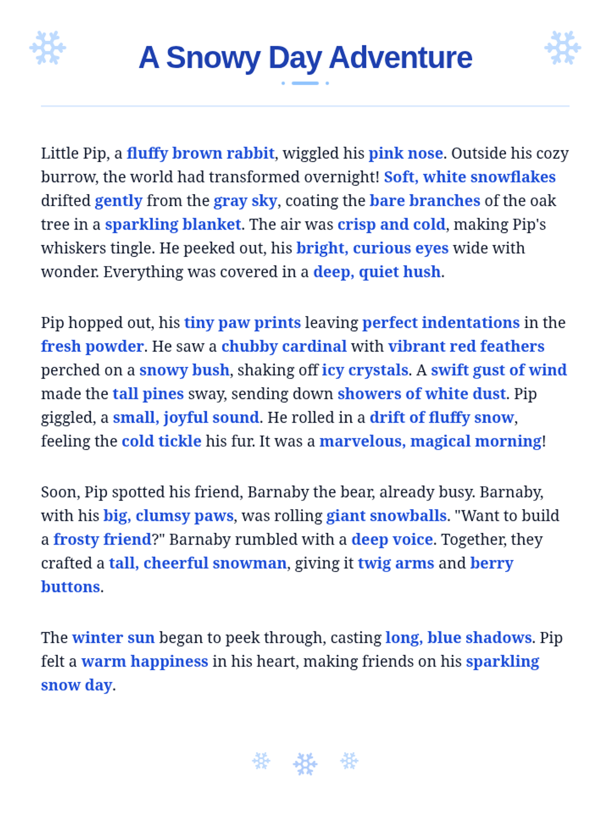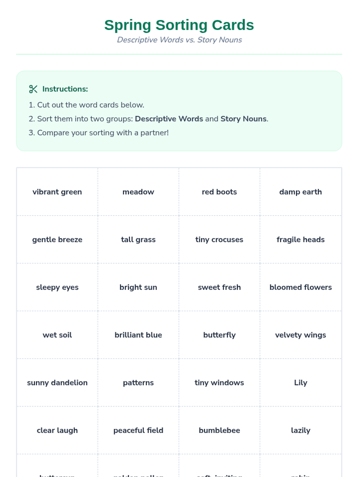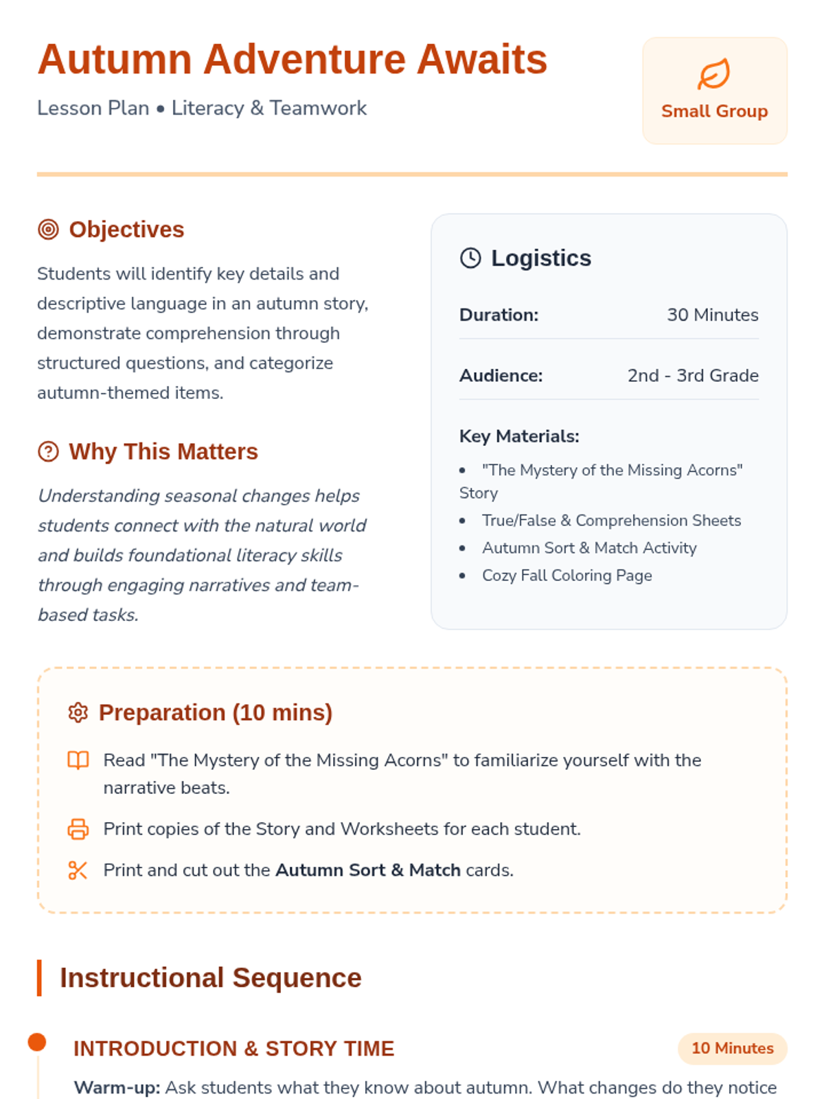 A series of three interactive literacy lessons for 2nd and 3rd graders focused on descriptive language and comprehension through the lens of changing seasons. Each lesson features an engaging story, sensory-rich vocabulary, and hands-on sorting and creative activities.