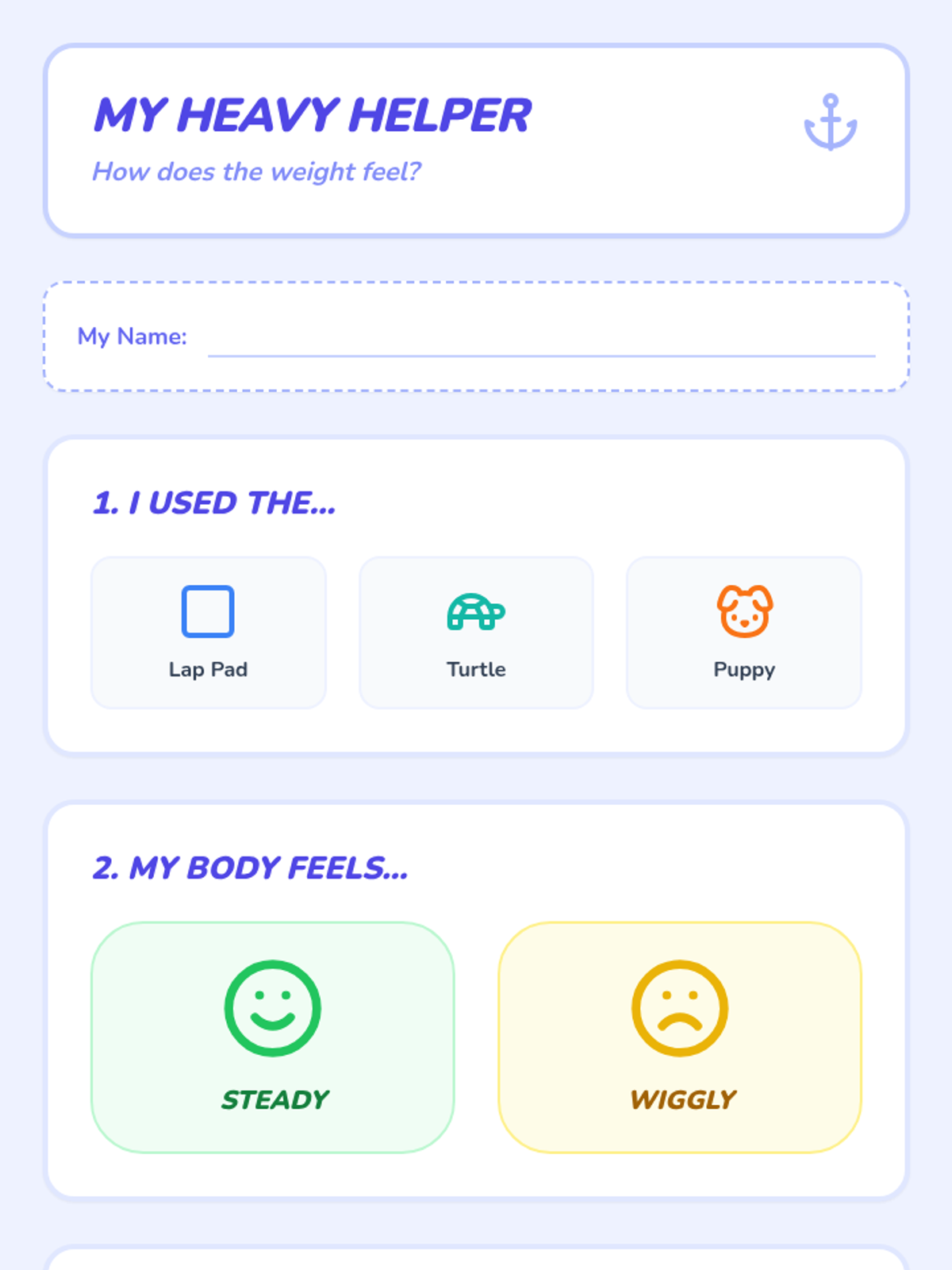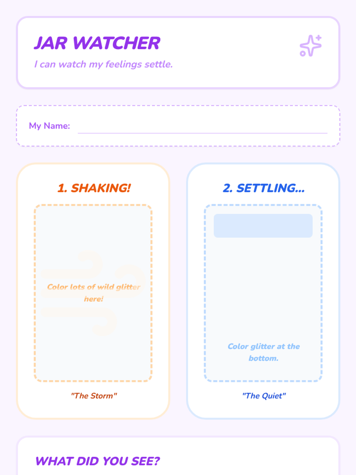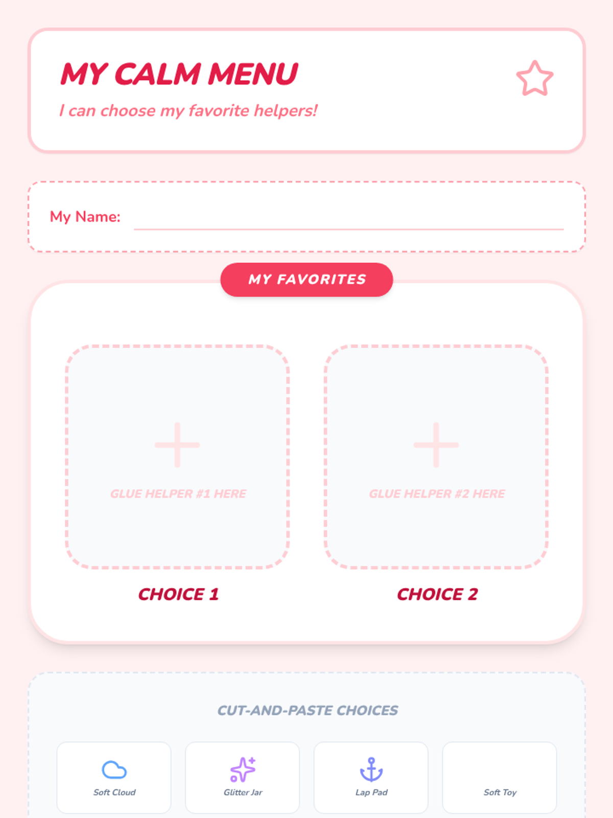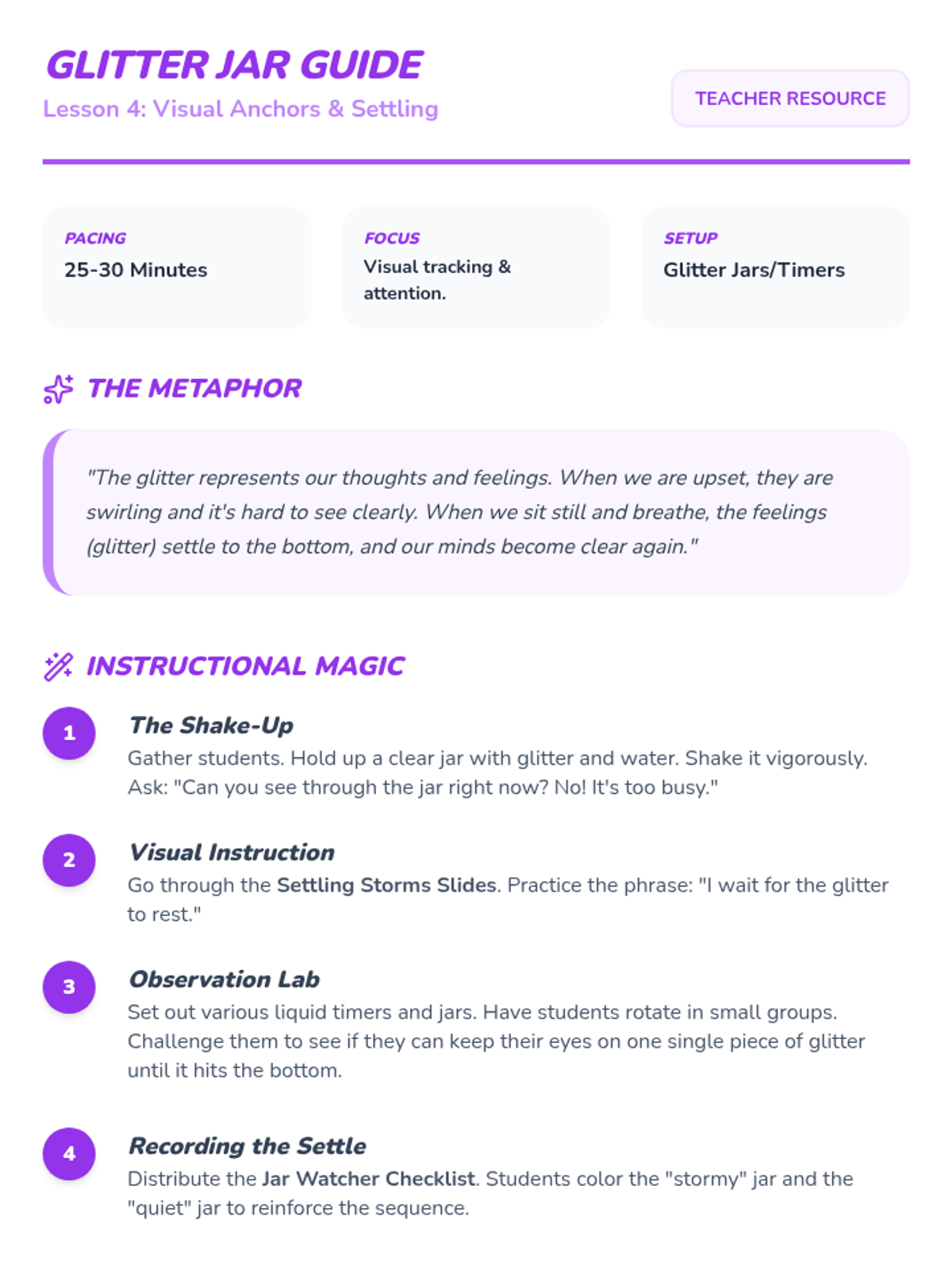 A sequence focused on environmental modifications and sensory tools to support Pre-K students in recovering from emotional dysregulation. Students explore calm-down areas and various sensory inputs to build a personal repertoire of self-regulation strategies.