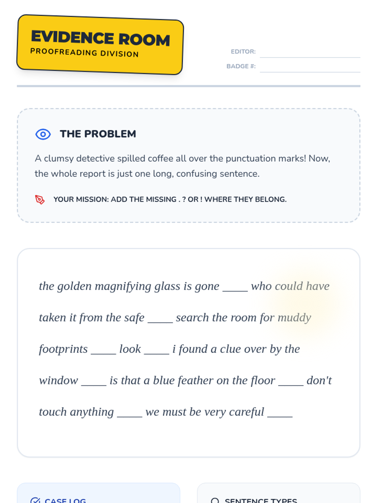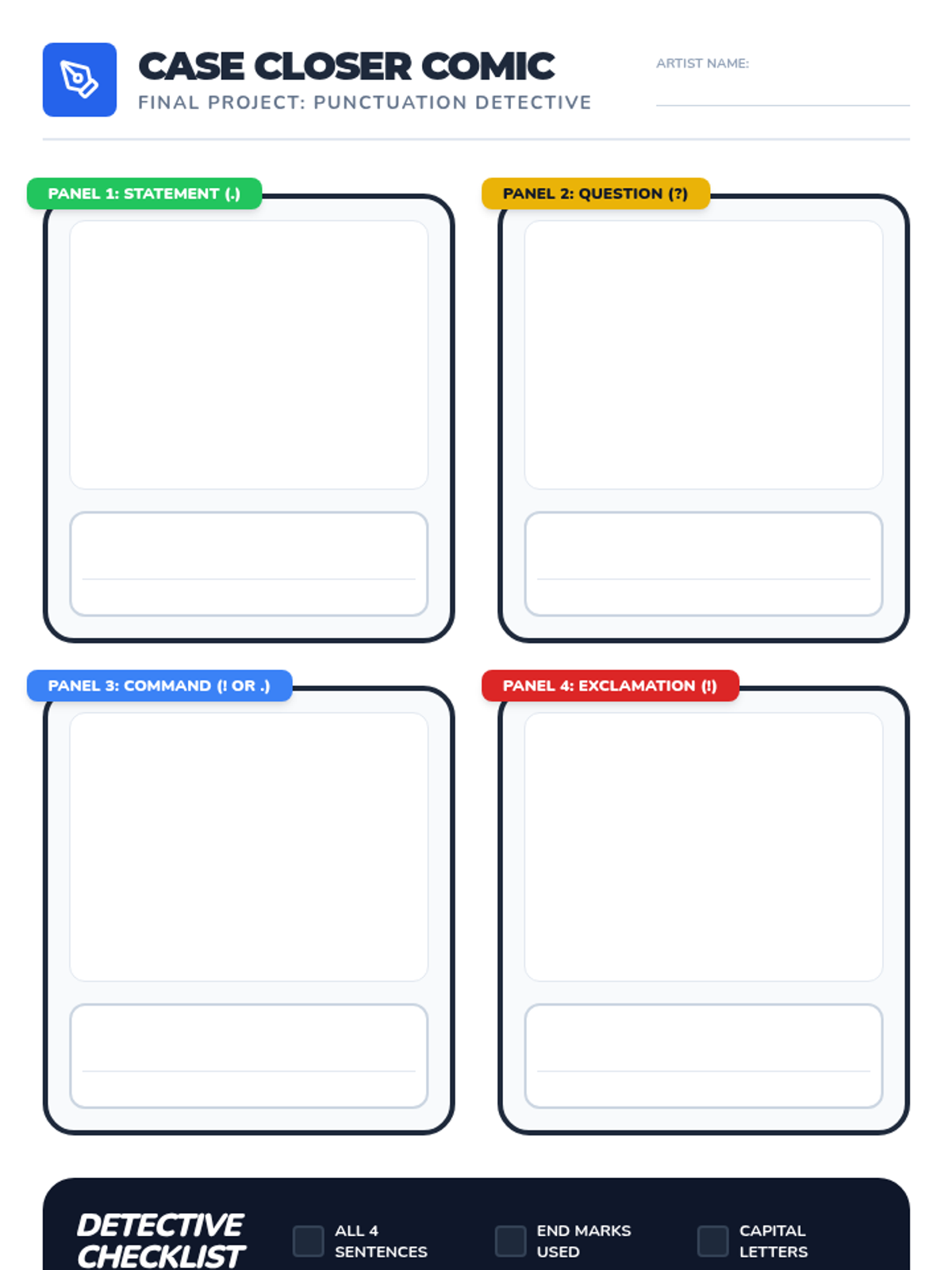 Students become 'Sentence Detectives' to master the four types of sentences and their end punctuation. They explore statements, questions, commands, and exclamations through interactive activities, editing challenges, and creative comic design.
