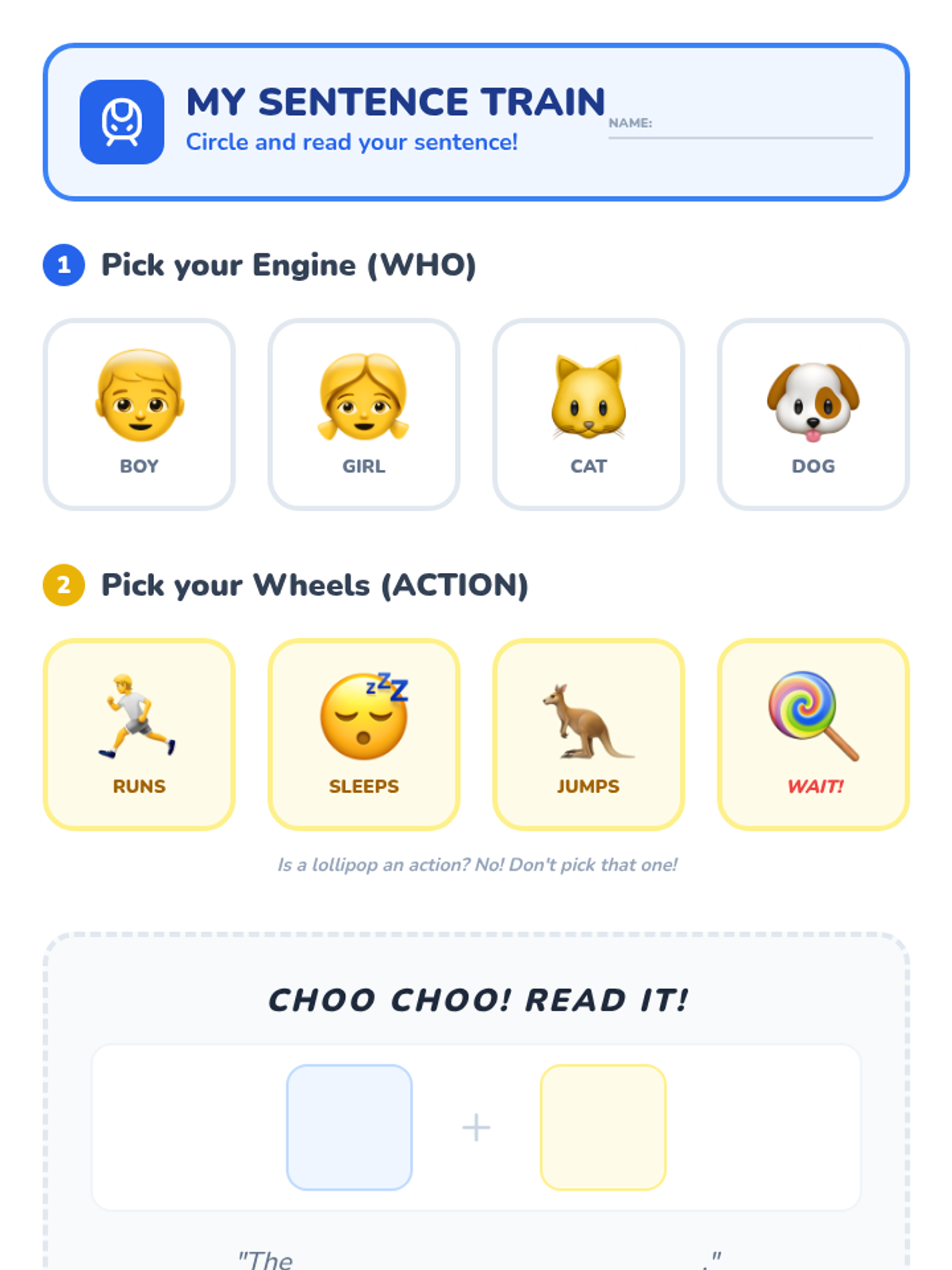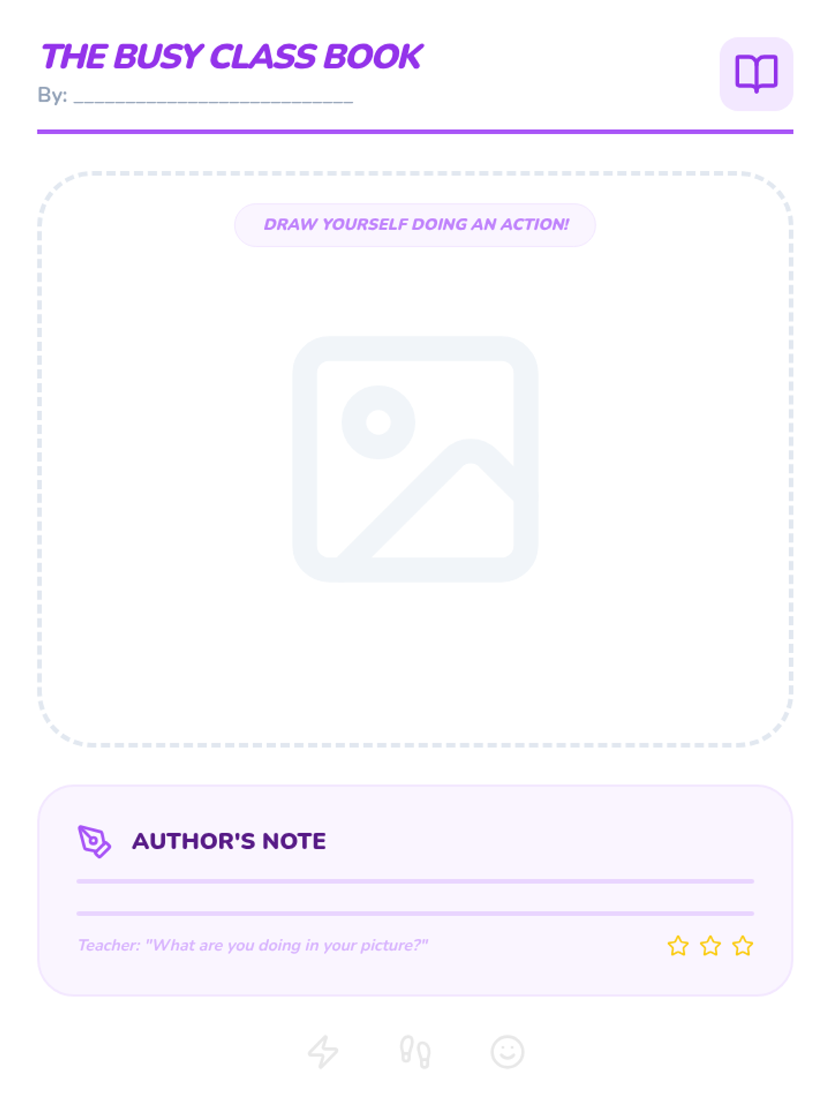 A project-based sequence where Pre-K students become authors by creating their own decodable mini-books. Students learn to use phonetic knowledge to name characters, illustrate actions, and write simple captions, culminating in an Author's Chair celebration.