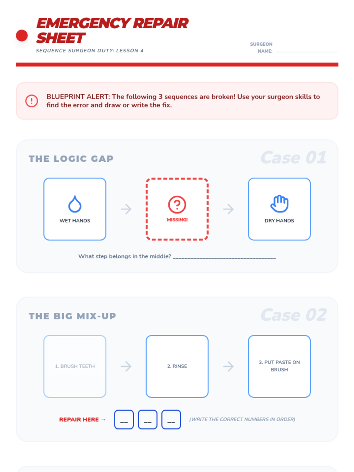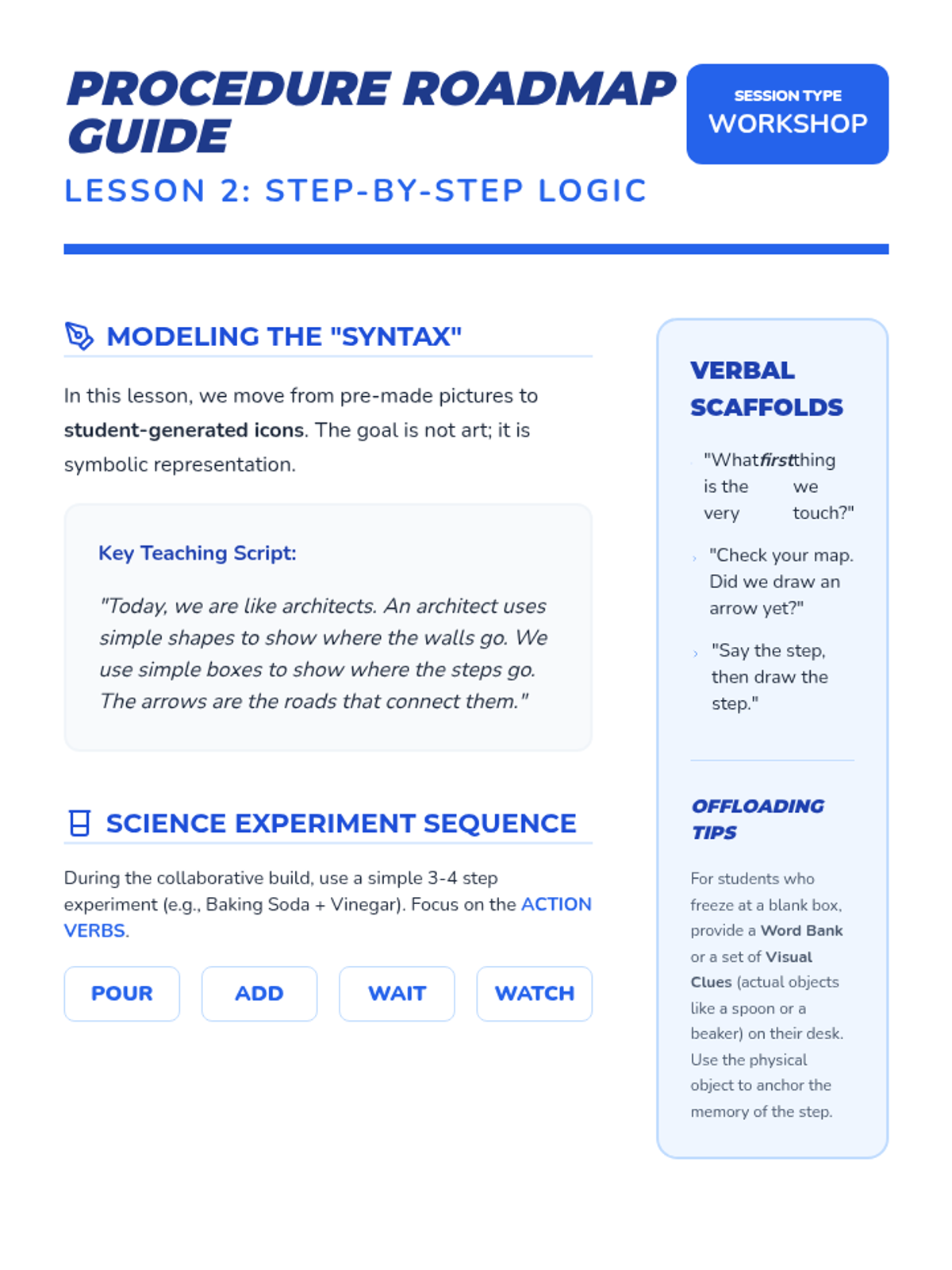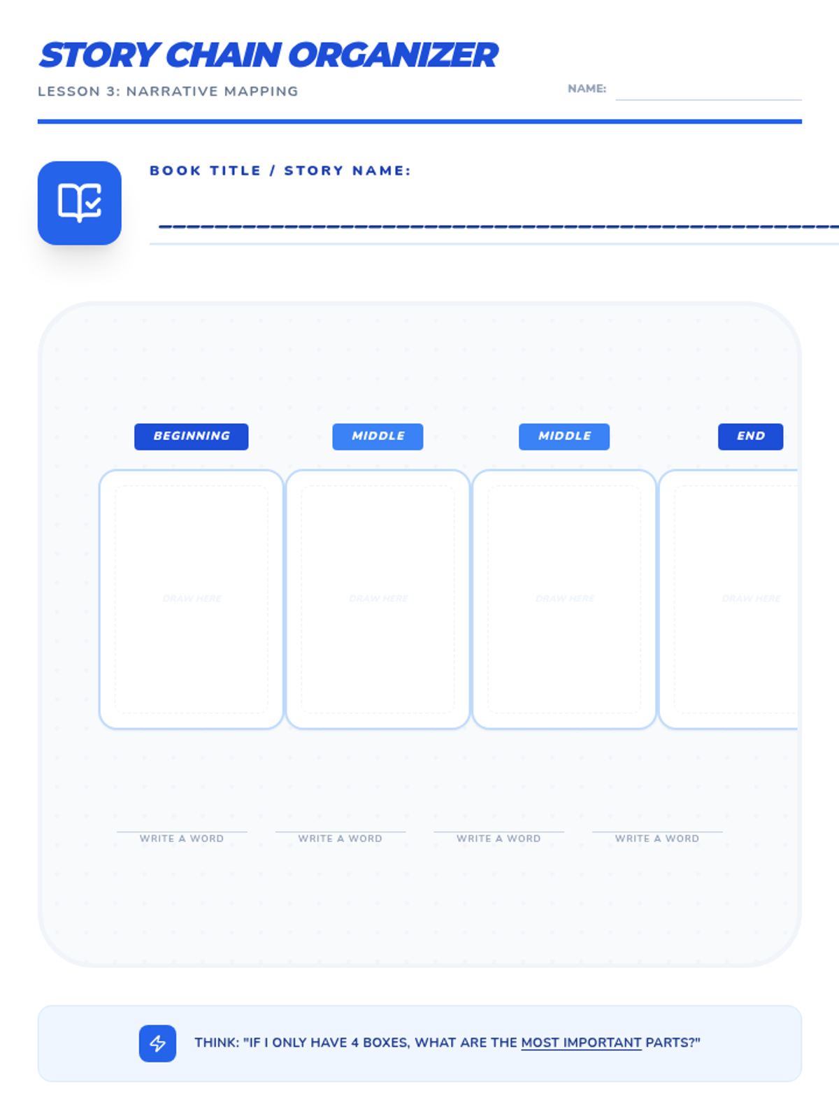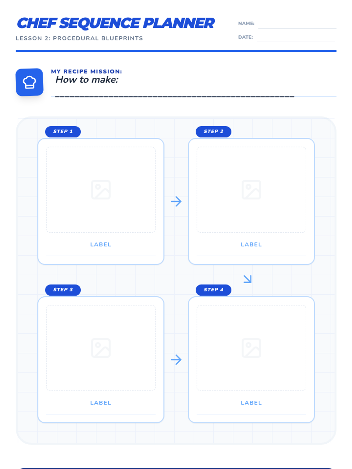 This sequence helps 2nd-grade students with working memory challenges master linear sequencing using flow charts and arrow-based diagrams. By visualizing "First, Next, Then, Last" progressions, students learn to offload cognitive demand and focus on procedural and narrative content.
