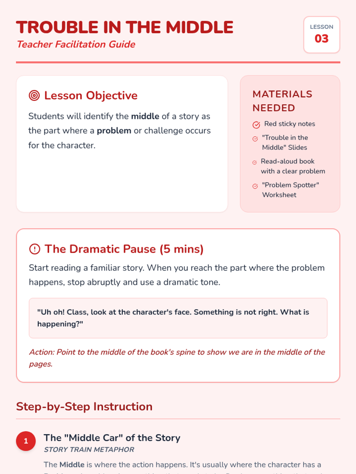 This sequence teaches Kindergarten students to use visualization and sketching as mnemonic devices for narrative comprehension. Students move from capturing single 'snapshots' of key events to building a full three-part storyboard, supporting working memory and story recall.