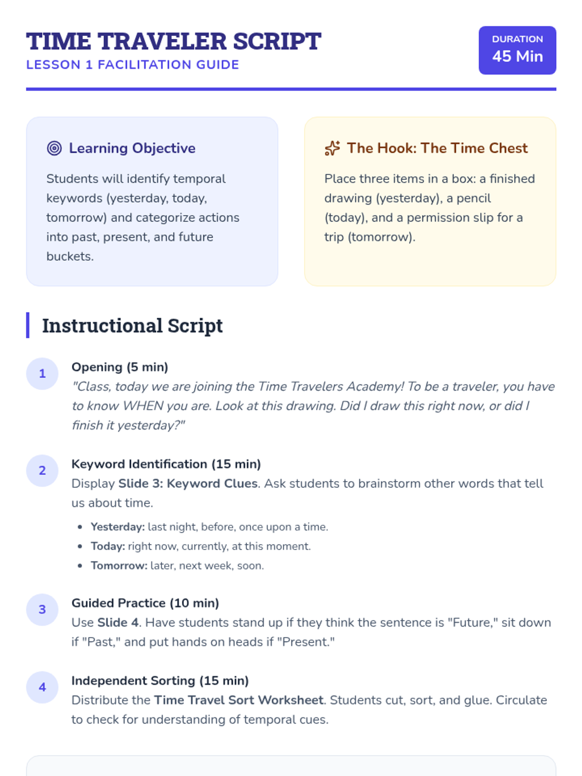 This sequence introduces 1st Grade ESL students to academic sequencing vocabulary. Students learn to use temporal transitions like 'first', 'next', 'then', and 'finally' to describe daily routines, scientific life cycles, and procedural instructions.