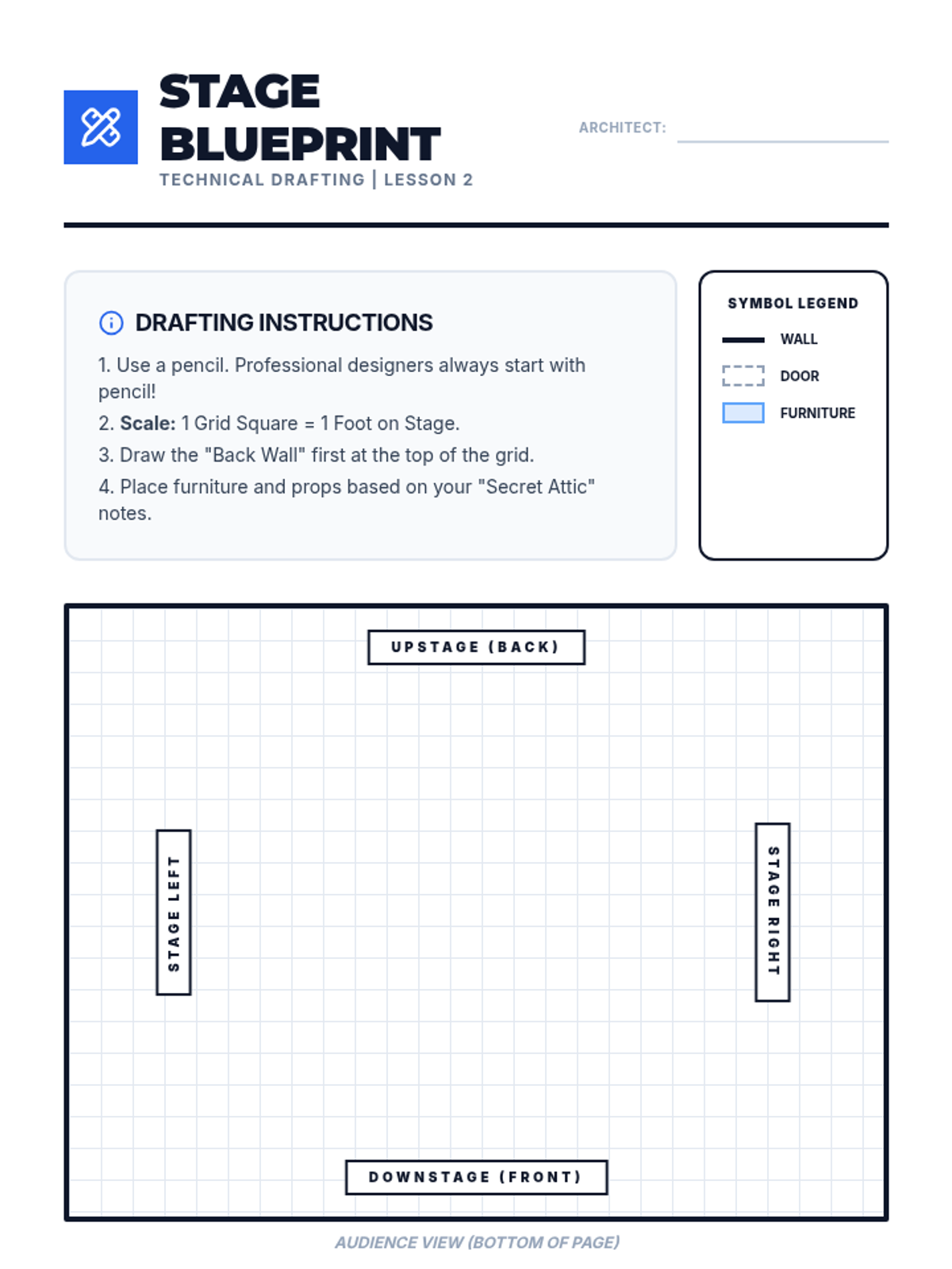 This hands-on sequence introduces 4th graders to the visual and engineering side of theater. Students analyze scripts to design environments, draft scale floor plans, build 3D scenic models, and fabricate props, emphasizing spatial reasoning and storytelling through physical space.