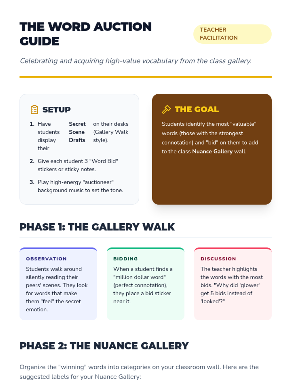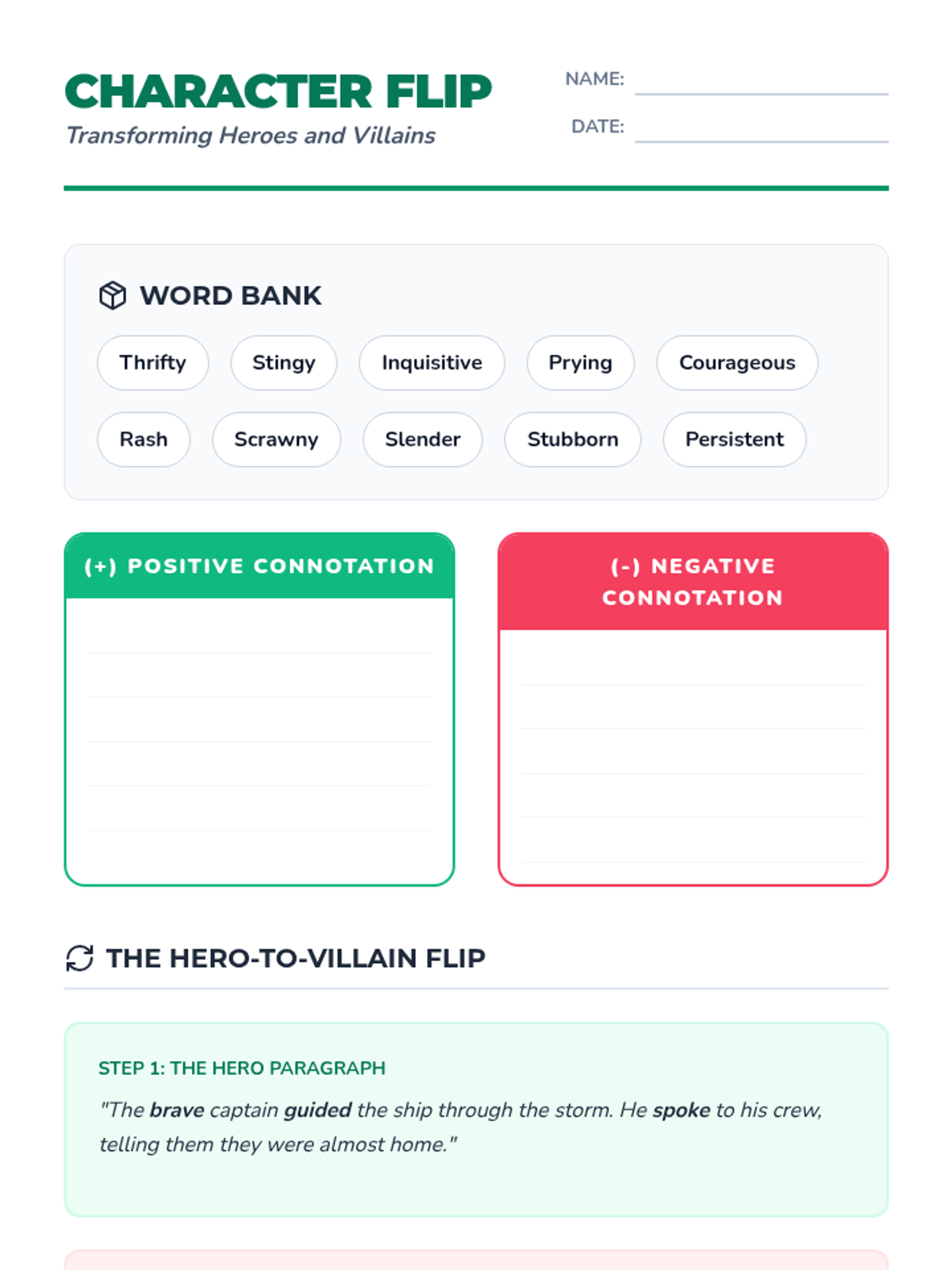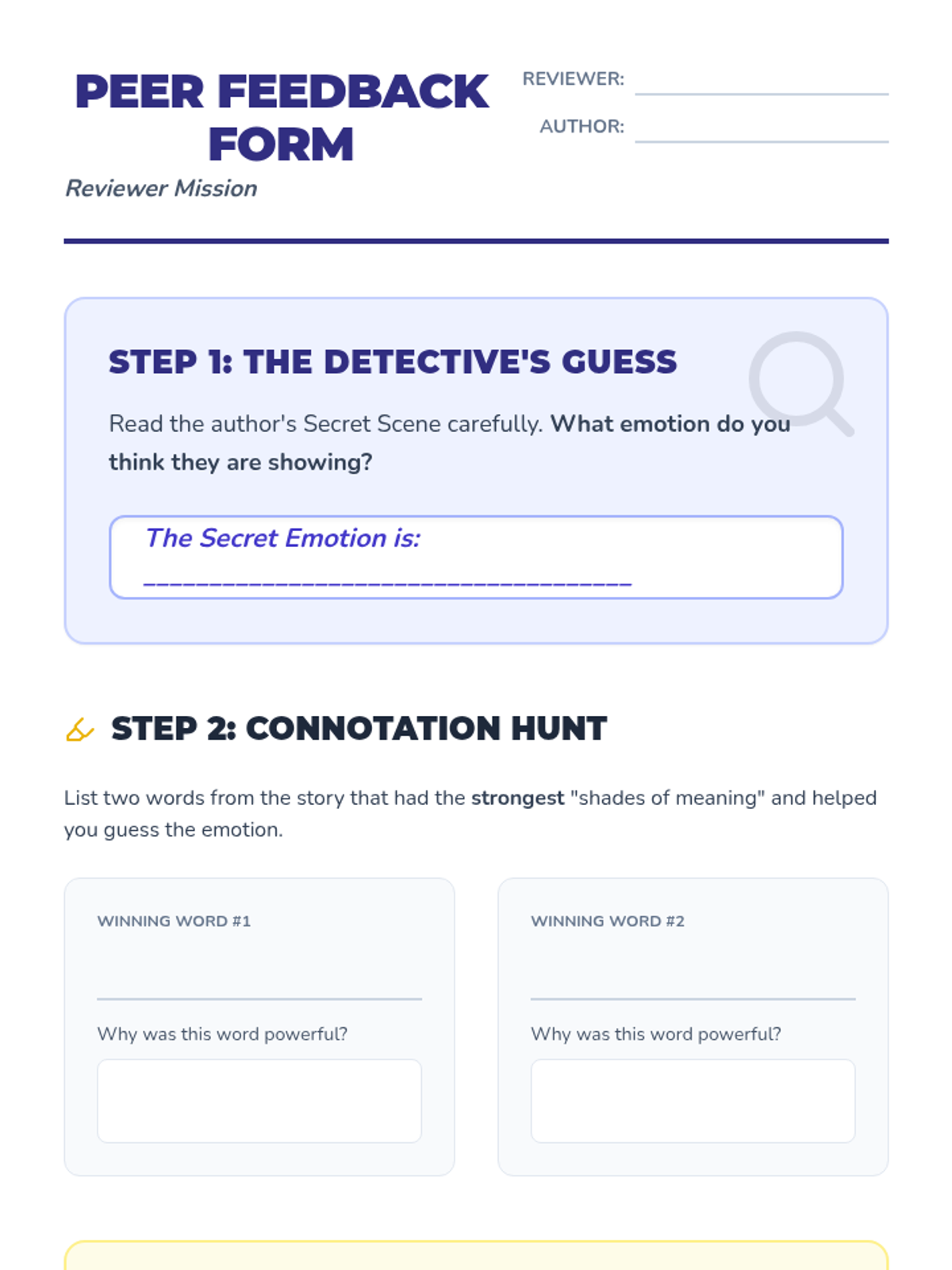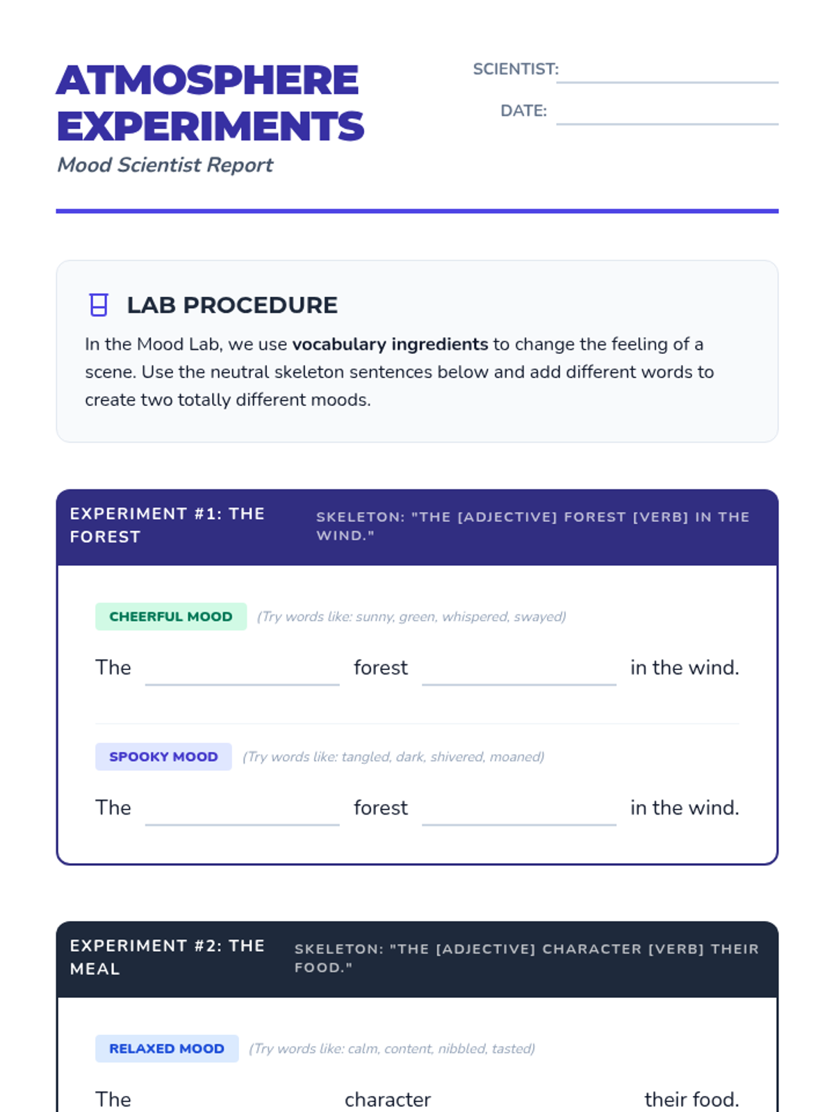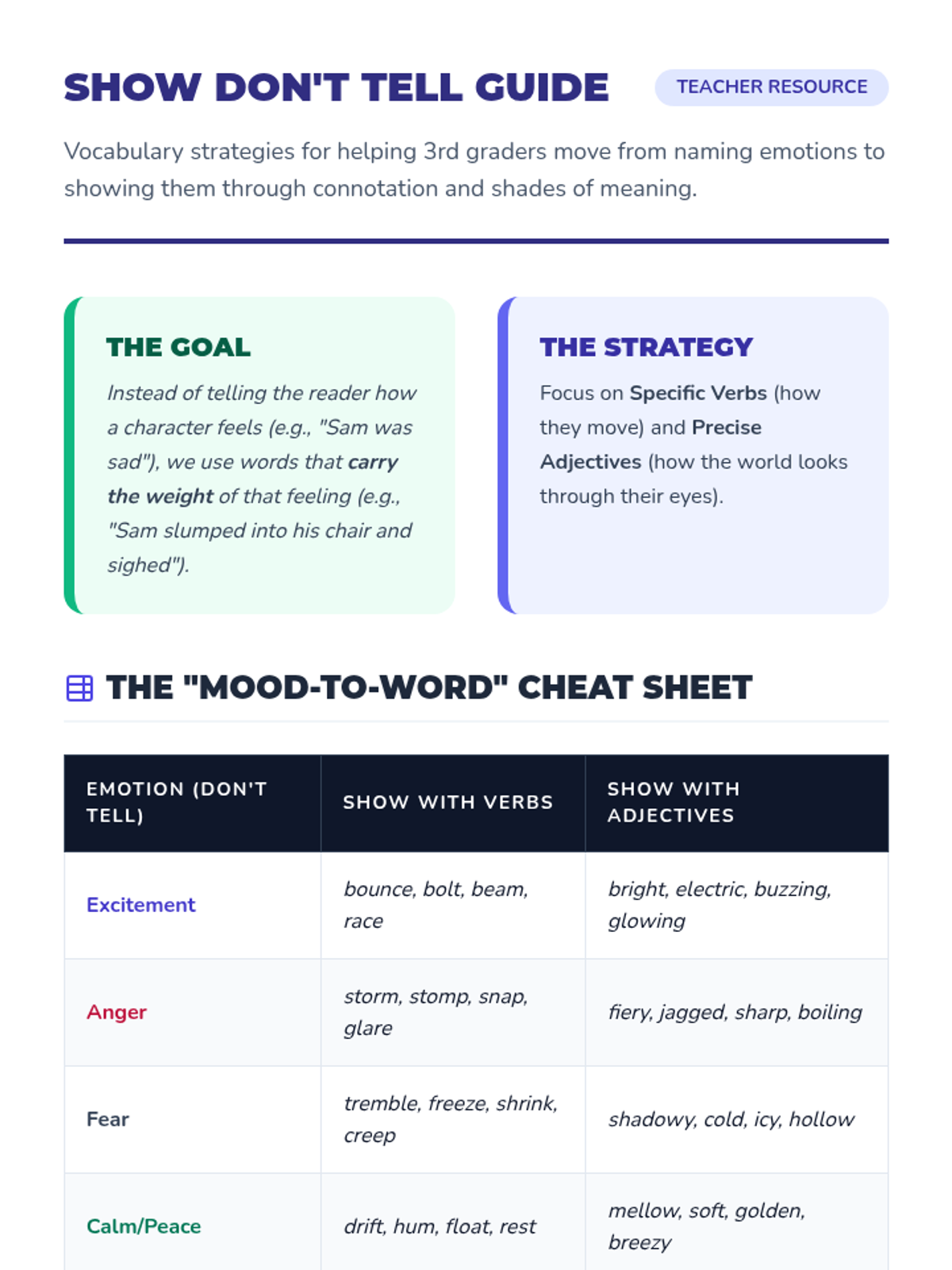 A 3rd-grade ELA sequence exploring how word connotation and 'shades of meaning' influence tone, characterization, and mood in narrative writing. Students progress from analyzing word pairs to crafting their own mood-driven scenes.