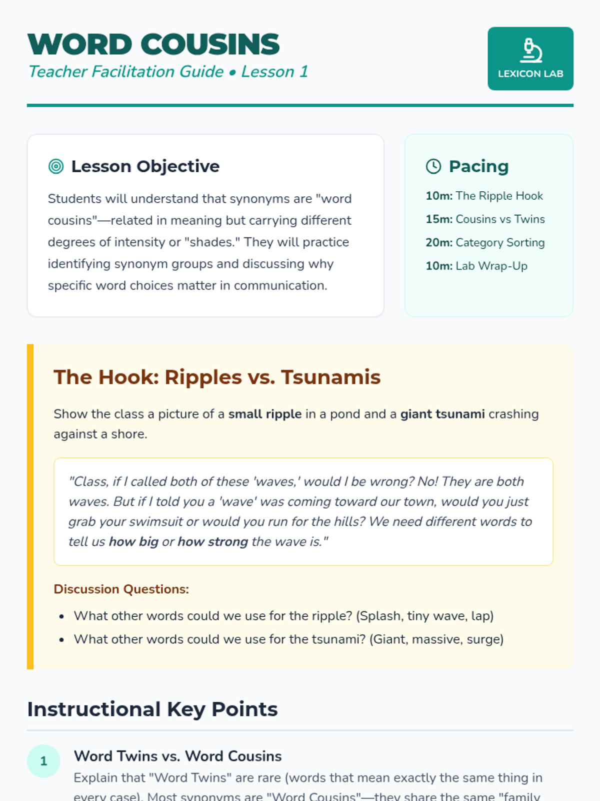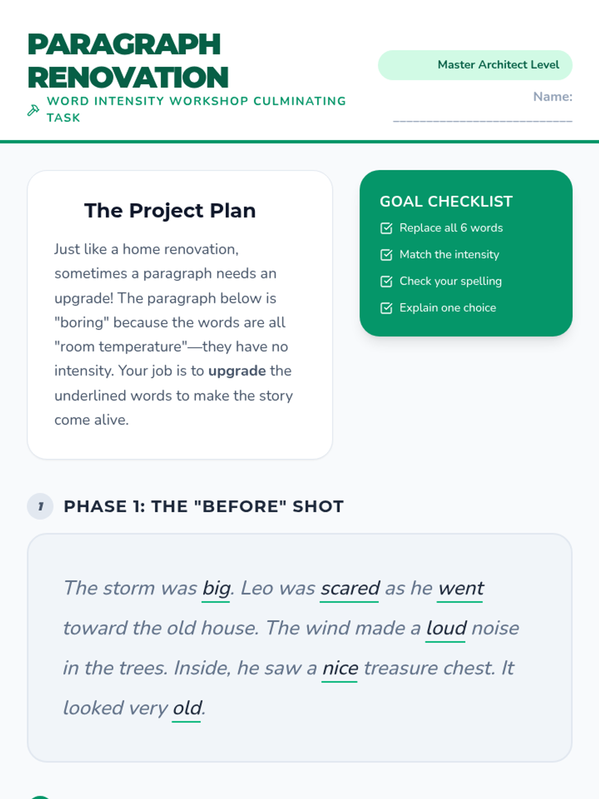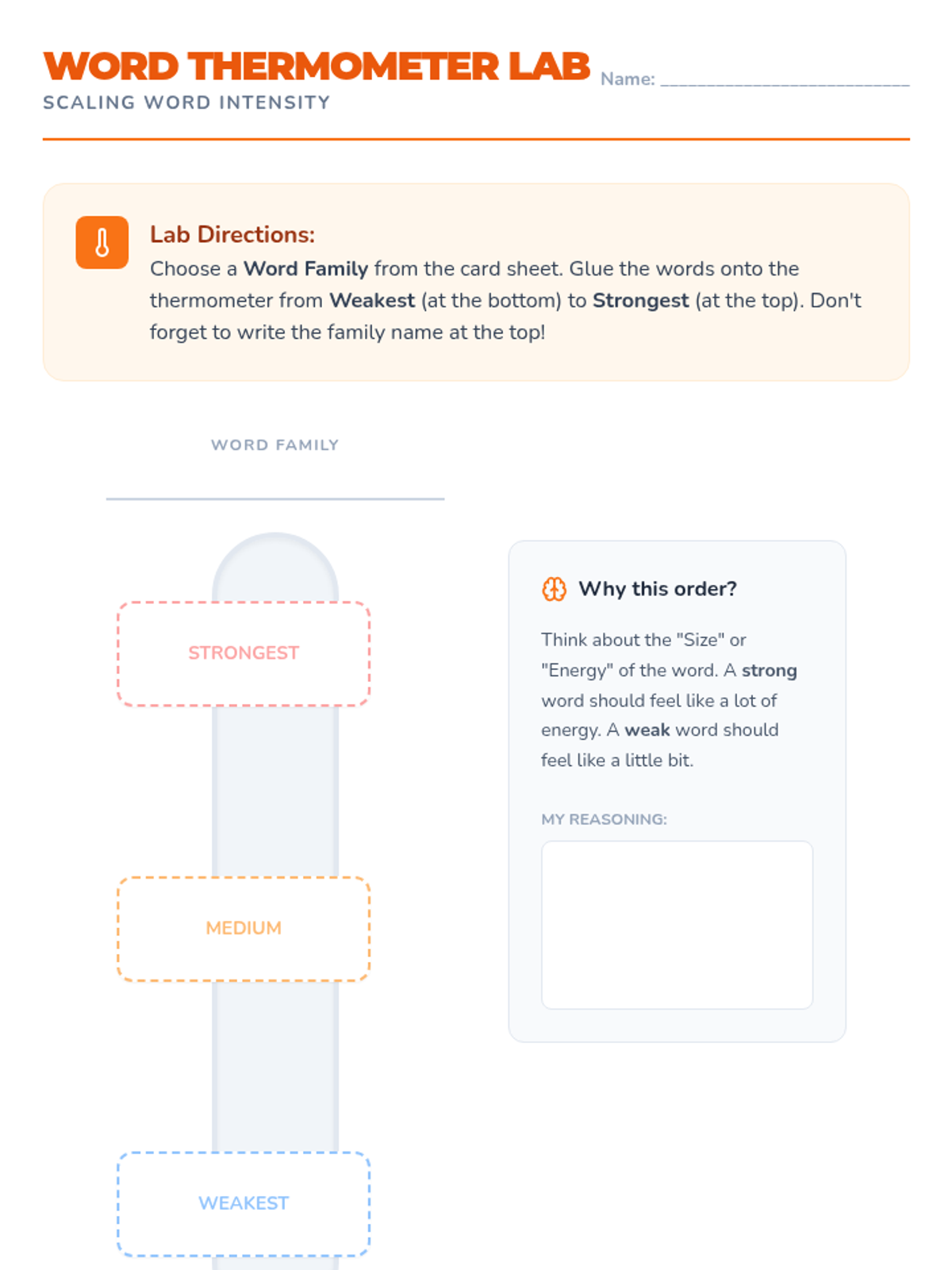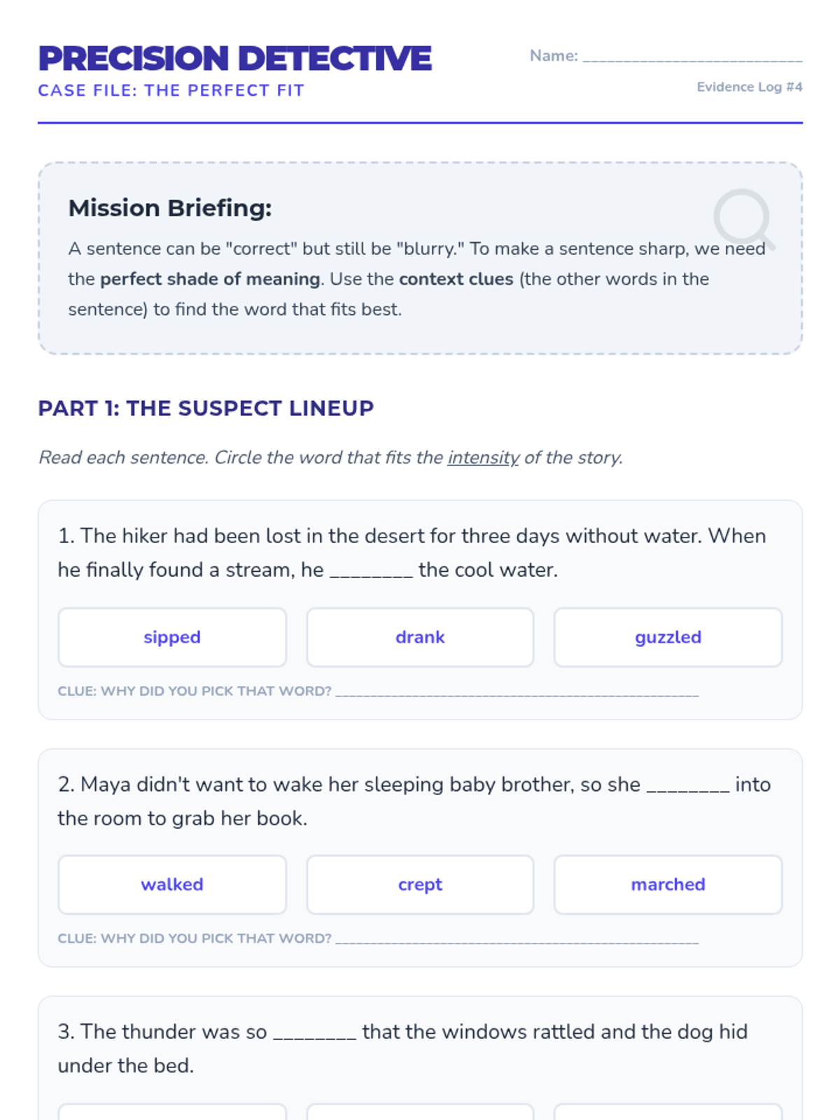 A comprehensive 5-lesson unit for 3rd-grade students exploring the nuances of vocabulary through word thermometers, physical movement, and contextual analysis to improve writing precision.