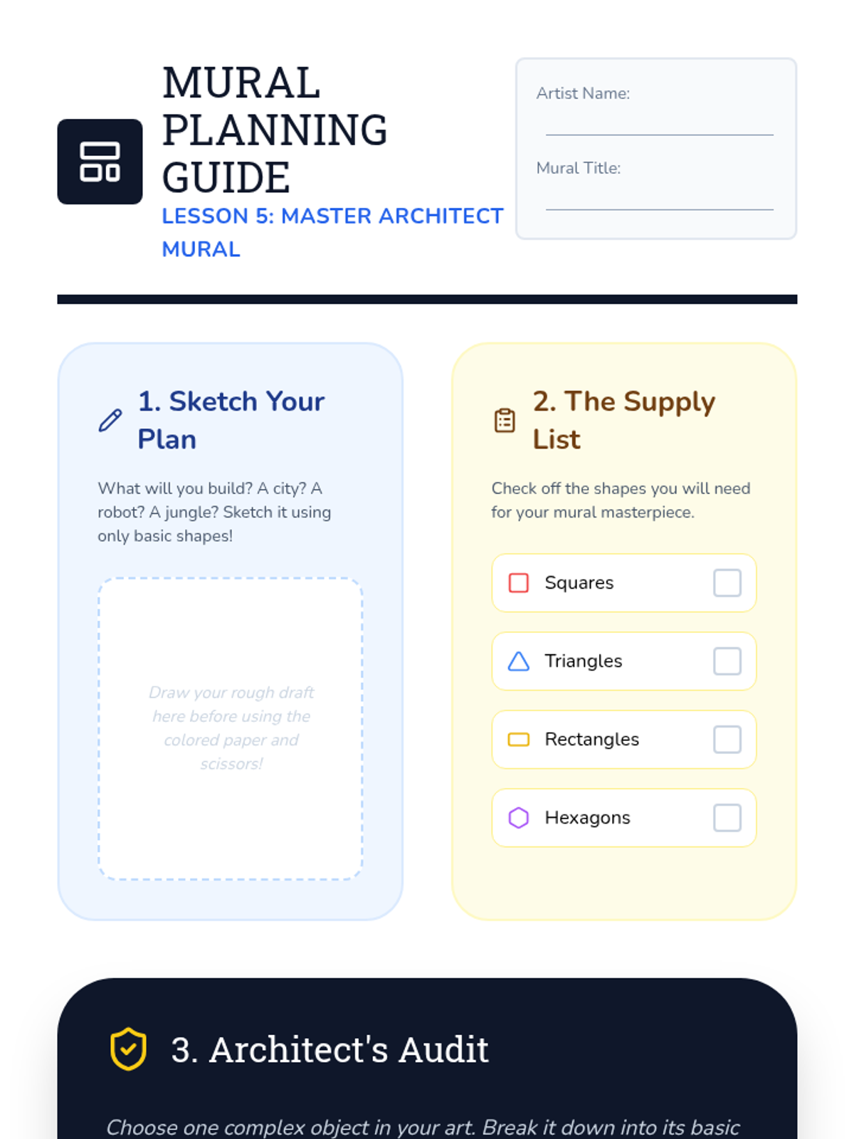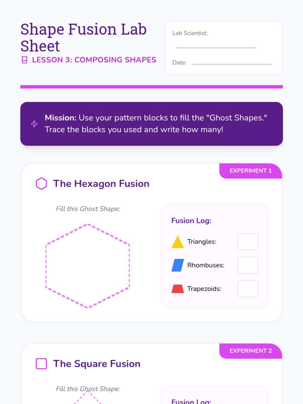 A hands-on geometry unit for 1st grade where students move from building single polygons to composing and decomposing complex shapes, using a 'Shape Architect' theme to explore spatial relationships and attributes.